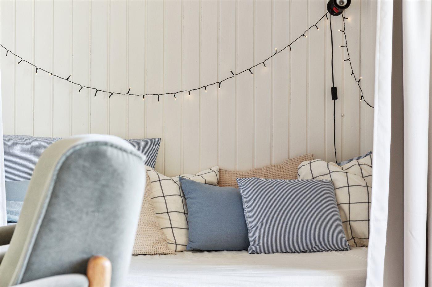 I sommerhuset er der 6 faste sovepladser fordelt på 3 værelser- det ene med udsigt til naturgrunden: 4 sovepladser i dobbeltsenge, 2 sovepladser i enkeltseng. 1-2 soveplads i alkove, der befinder sig i stuen, som er bedst egnet til børn (4-12 år).