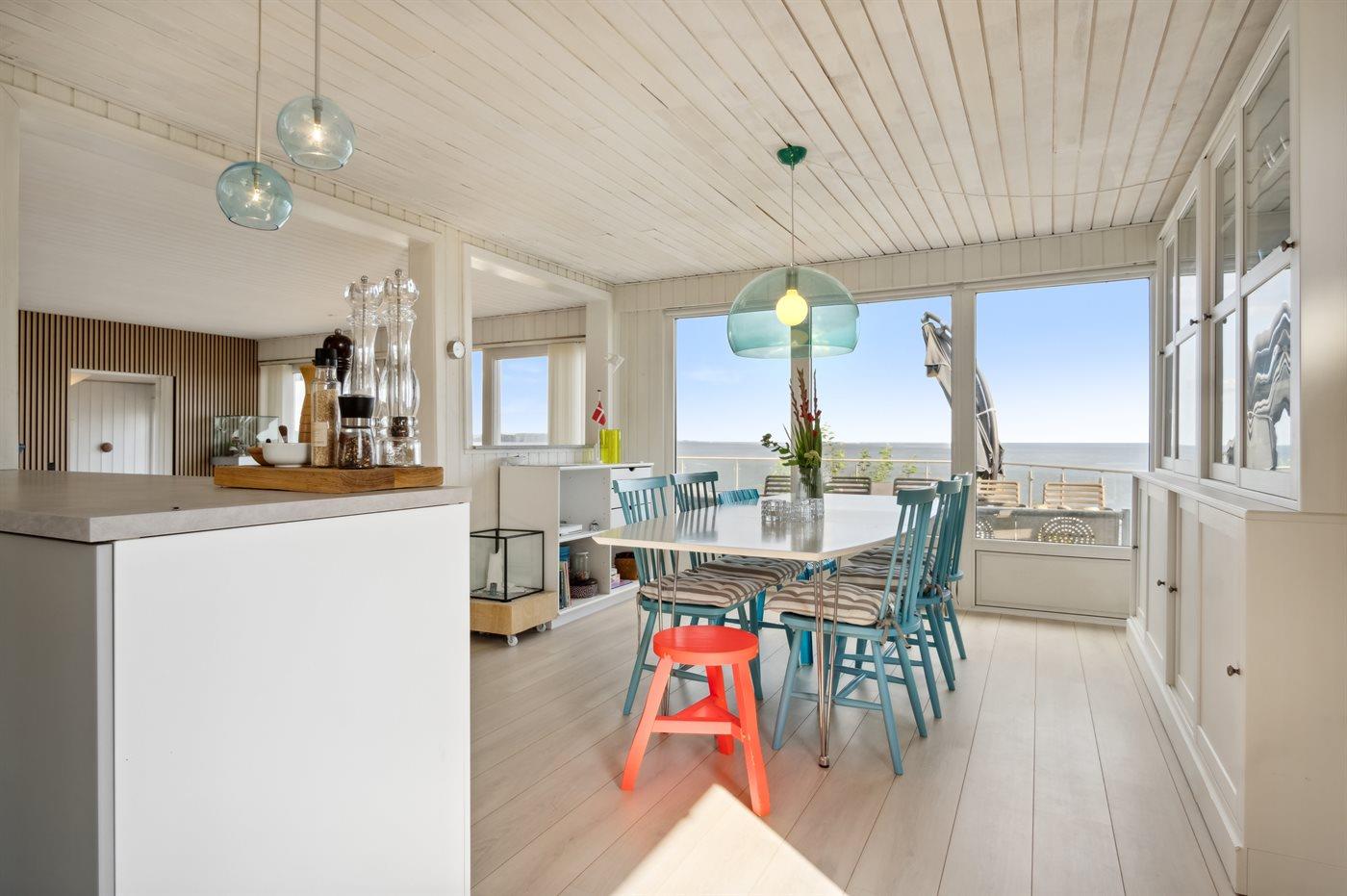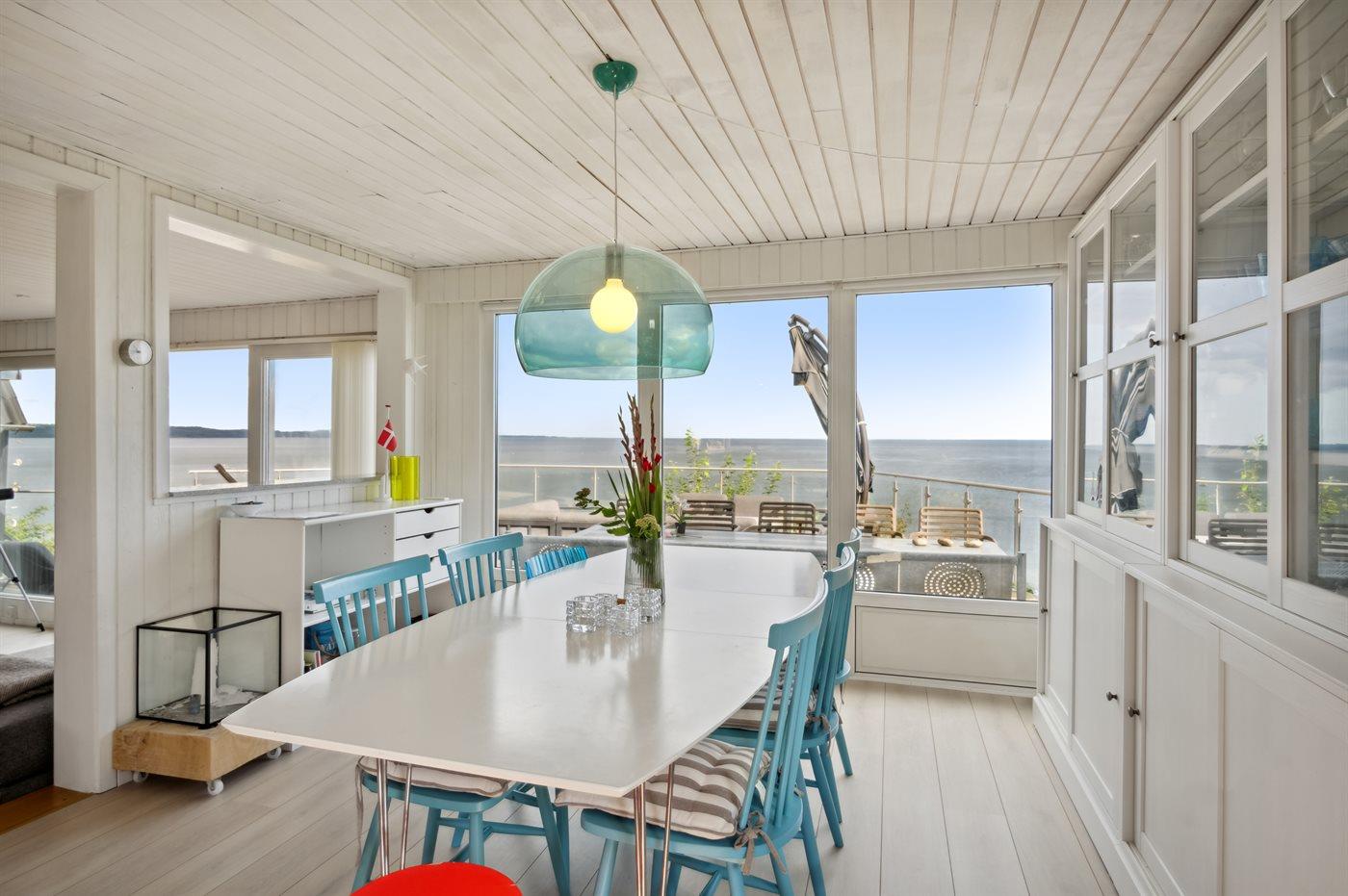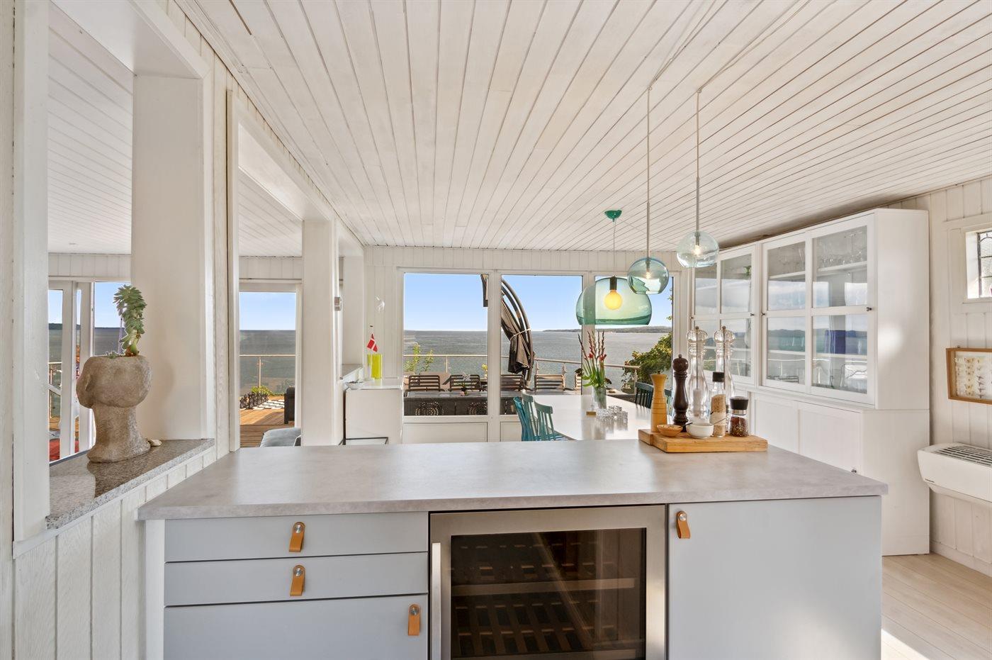 Sommerhuset er løbende vedligeholdt og fremstår i god stand med en lys og moderne indretning. Den unikke udsigt går igen fra de fleste rum - lige fra det fine, renoverede køkken til stuen med et stort glasparti rettet imod fjorden og direkte adgang til den fantastiske terrasse og til det dejlige soveværelse, hvor udsigten igen er unik.