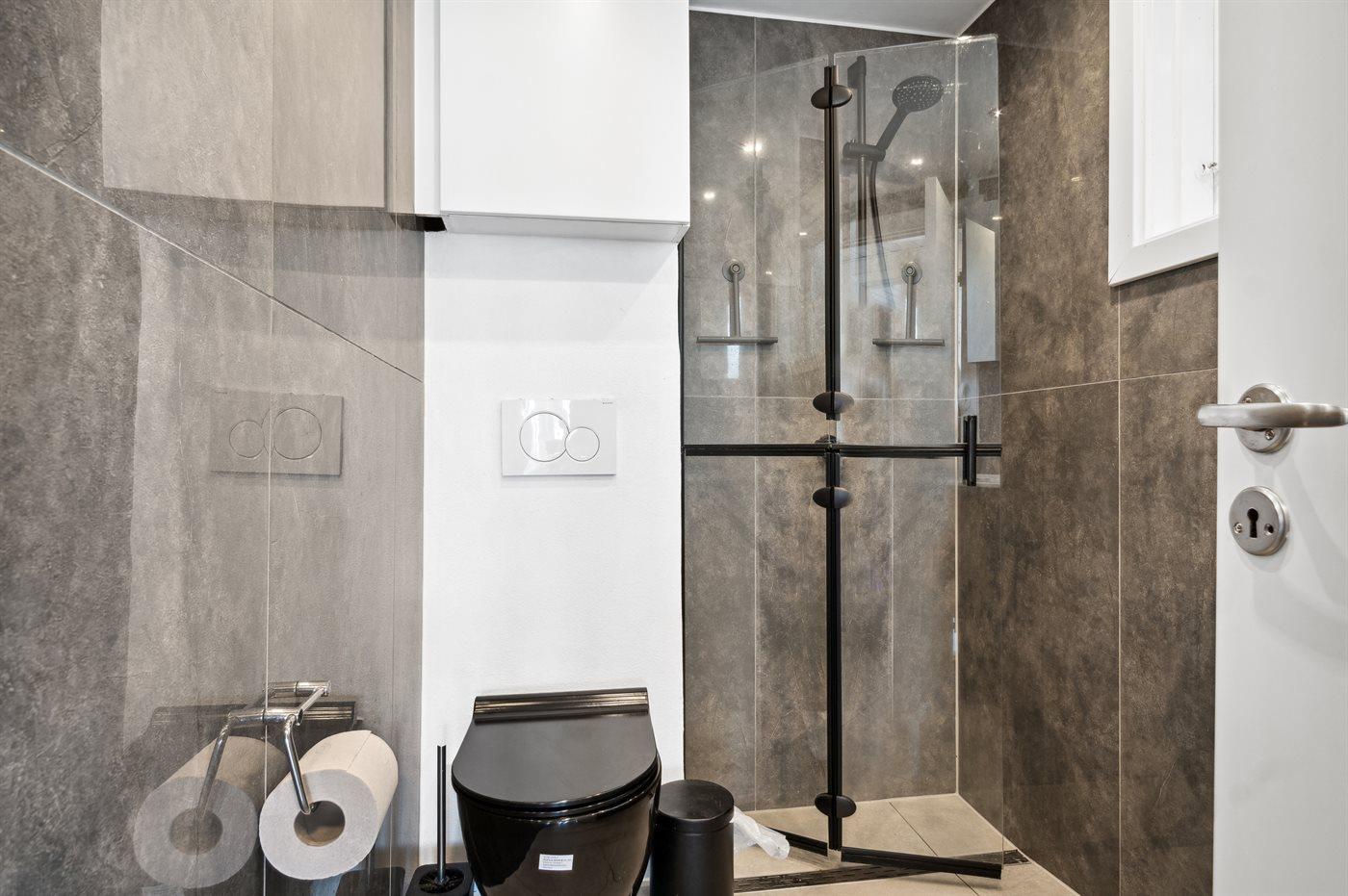 Der er 2 badeværelser med bruseniche og 2 toiletter. Der er gulvvarme på 1 badeværelse.