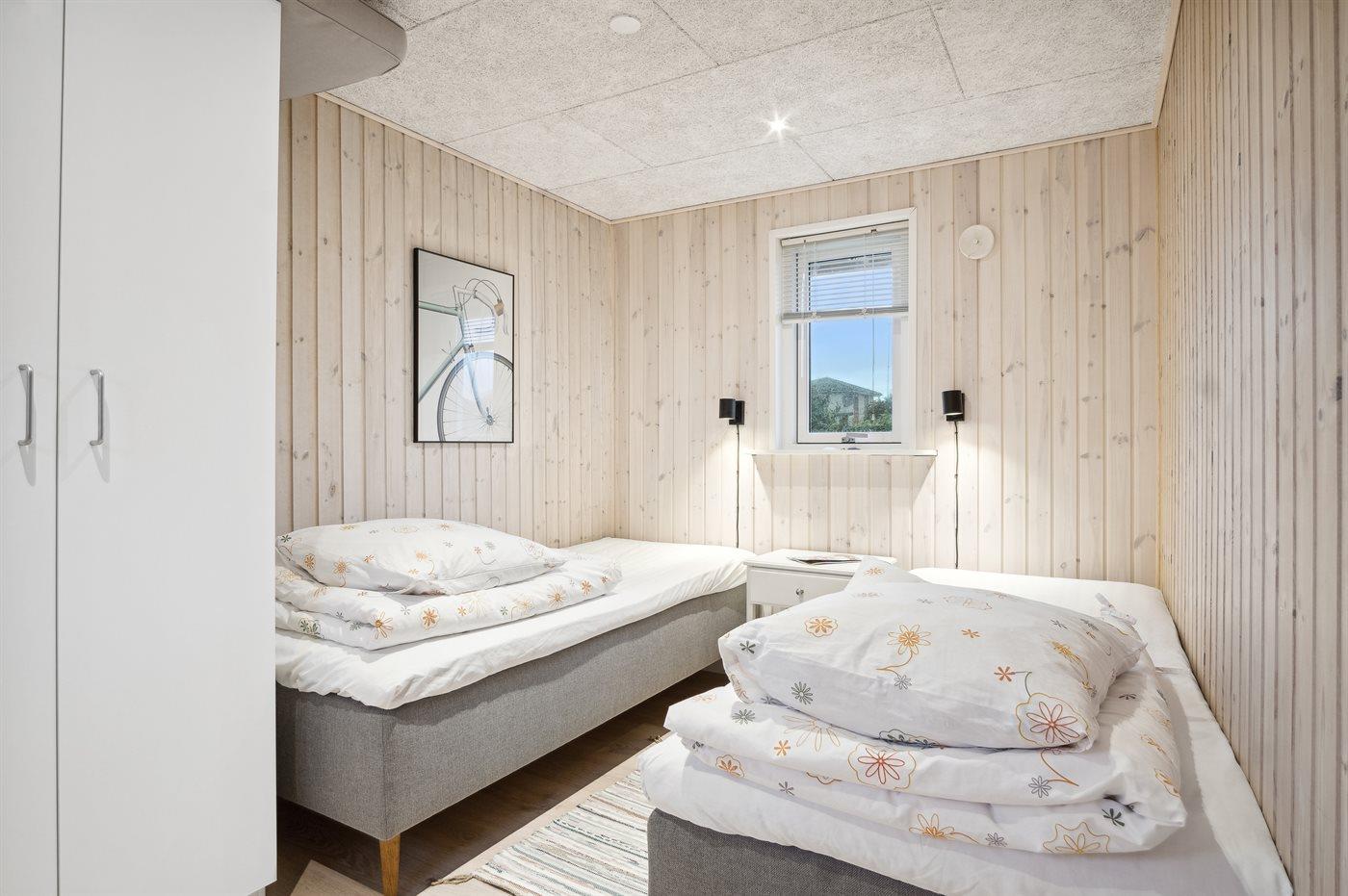 Der er i alt 2 soveværelser. Sovepladserne fordeler sig på: 4 sovepladser i enkeltsenge. Derudover er der 1 stk. barneseng.