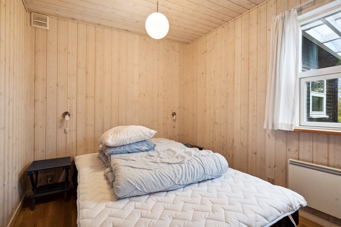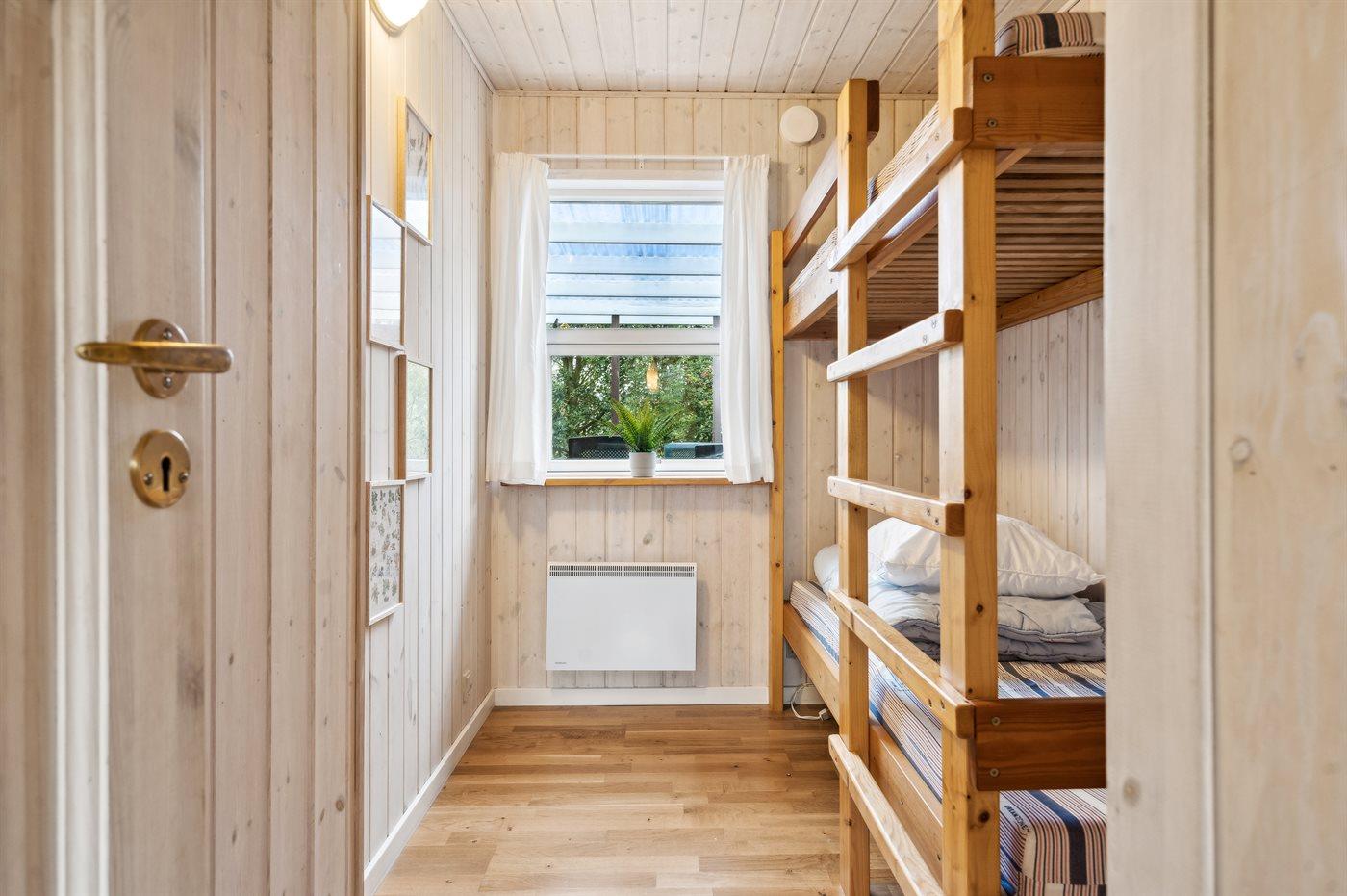 Der er i alt 2 soveværelser. Sovepladserne fordeler sig på: 2 sovepladser i dobbeltseng. 2 sovepladser i køjeseng. Derudover er der 1 stk. barneseng.