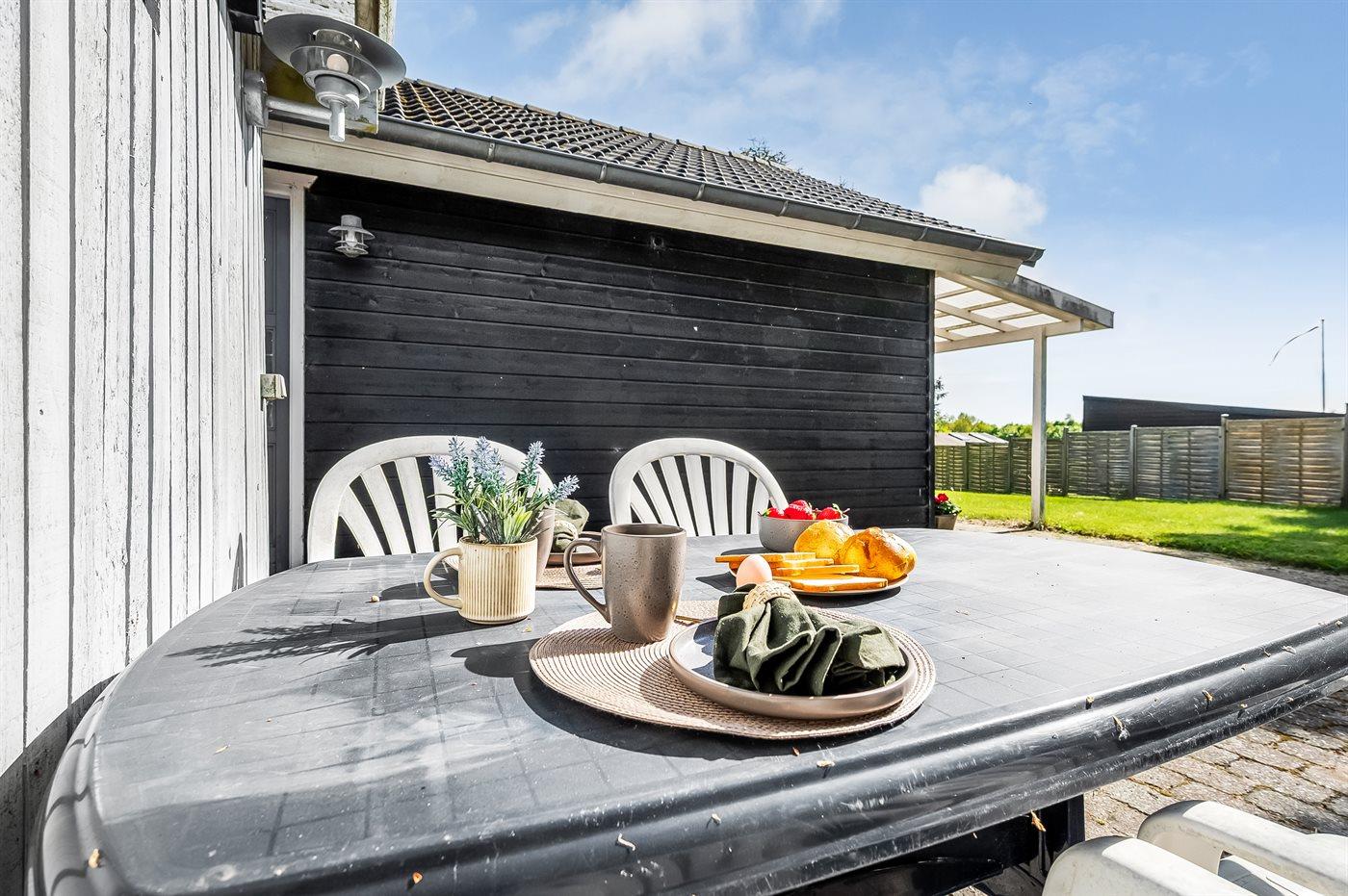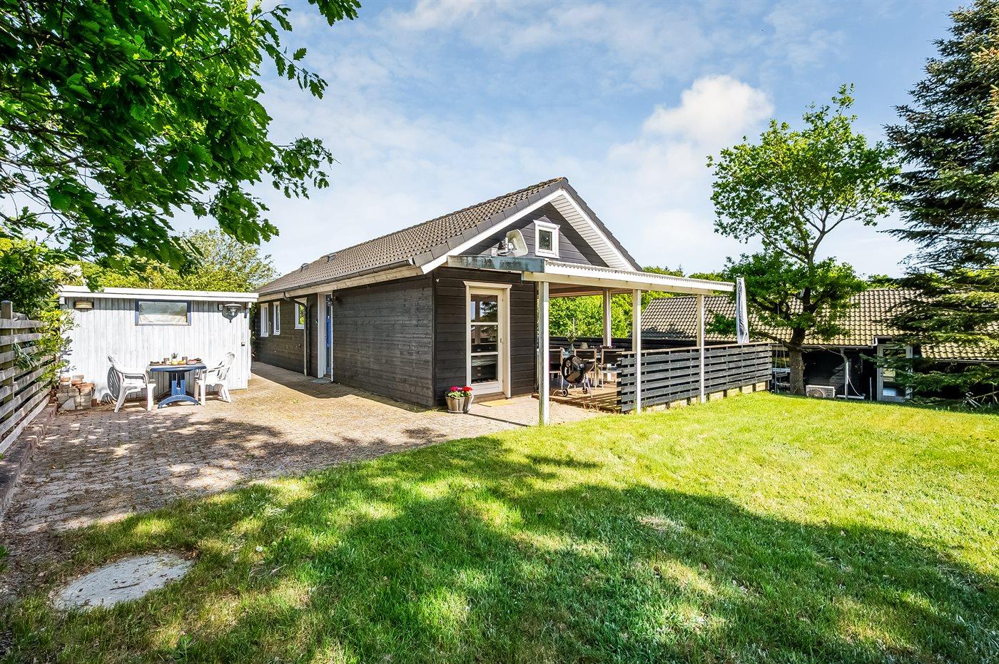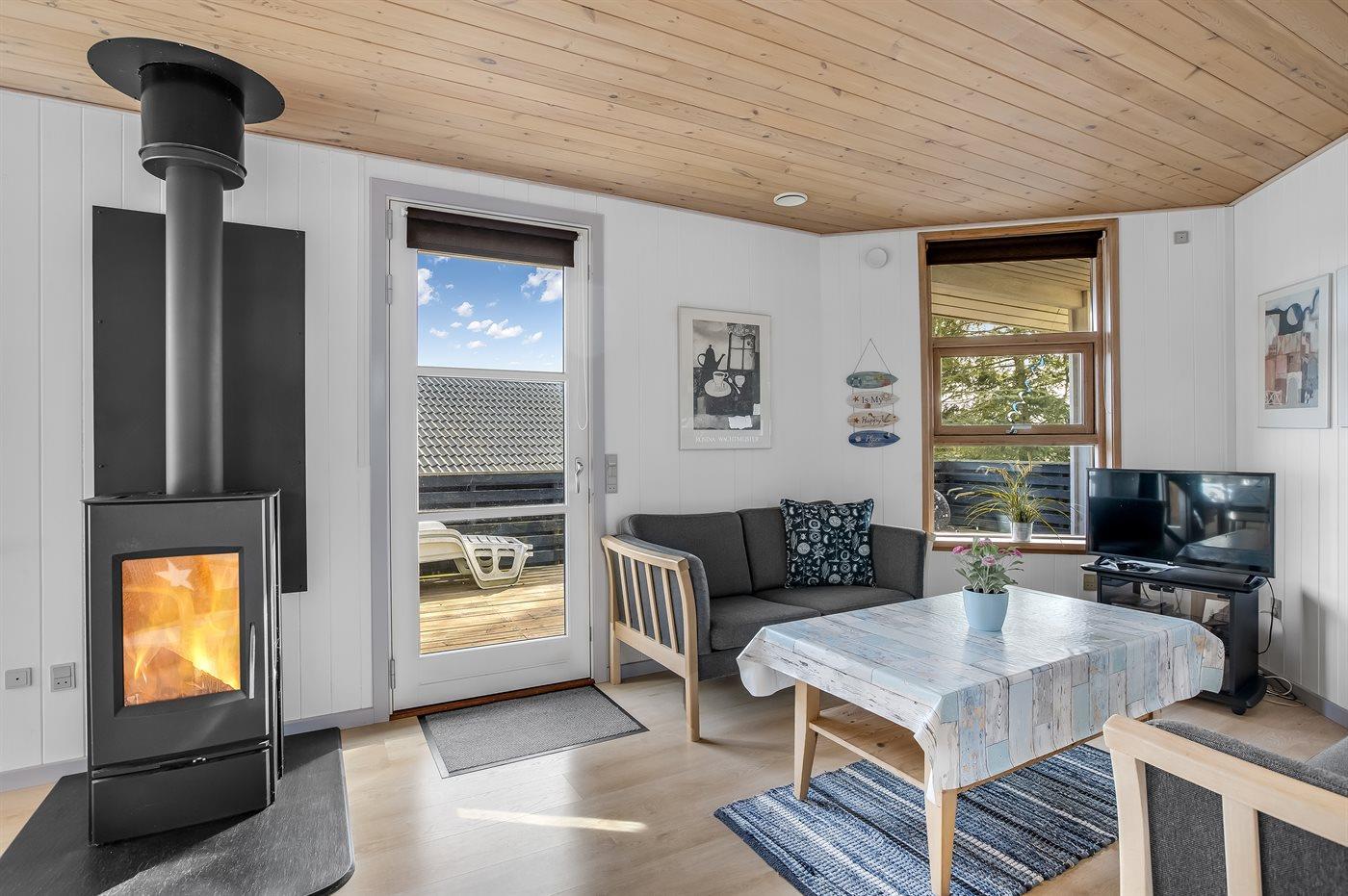 Sommerhuset har et godt terrasseareal, som også delvist er overdækket. Herfra kan stilheden nydes i fulde drag, og der er altid mulighed for at finde en fin lækrog, selvom det kan ofte kan blæse lidt, da huset ligger højt, men til gengæld med en fin udsigt over området. Ferieområdet indbyder til gåture i den dejlige natur, og en særlig oplevelse er et besøg på Hvidbjerg Klit, som ligger blot ca. 250 meter fra sommerhuset. Området byder også på et ishus og kaffested.