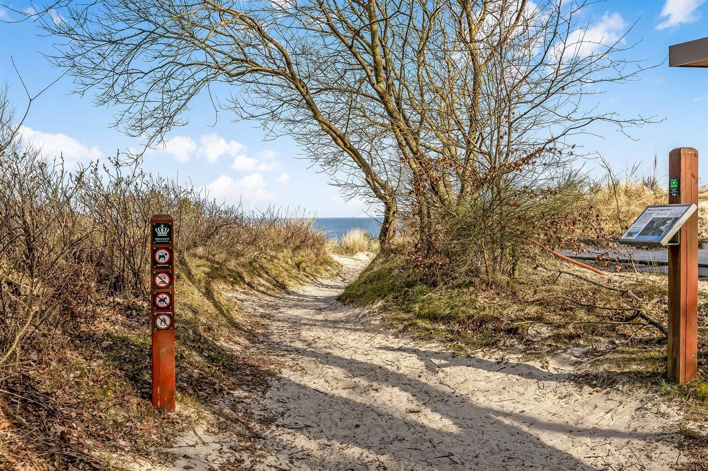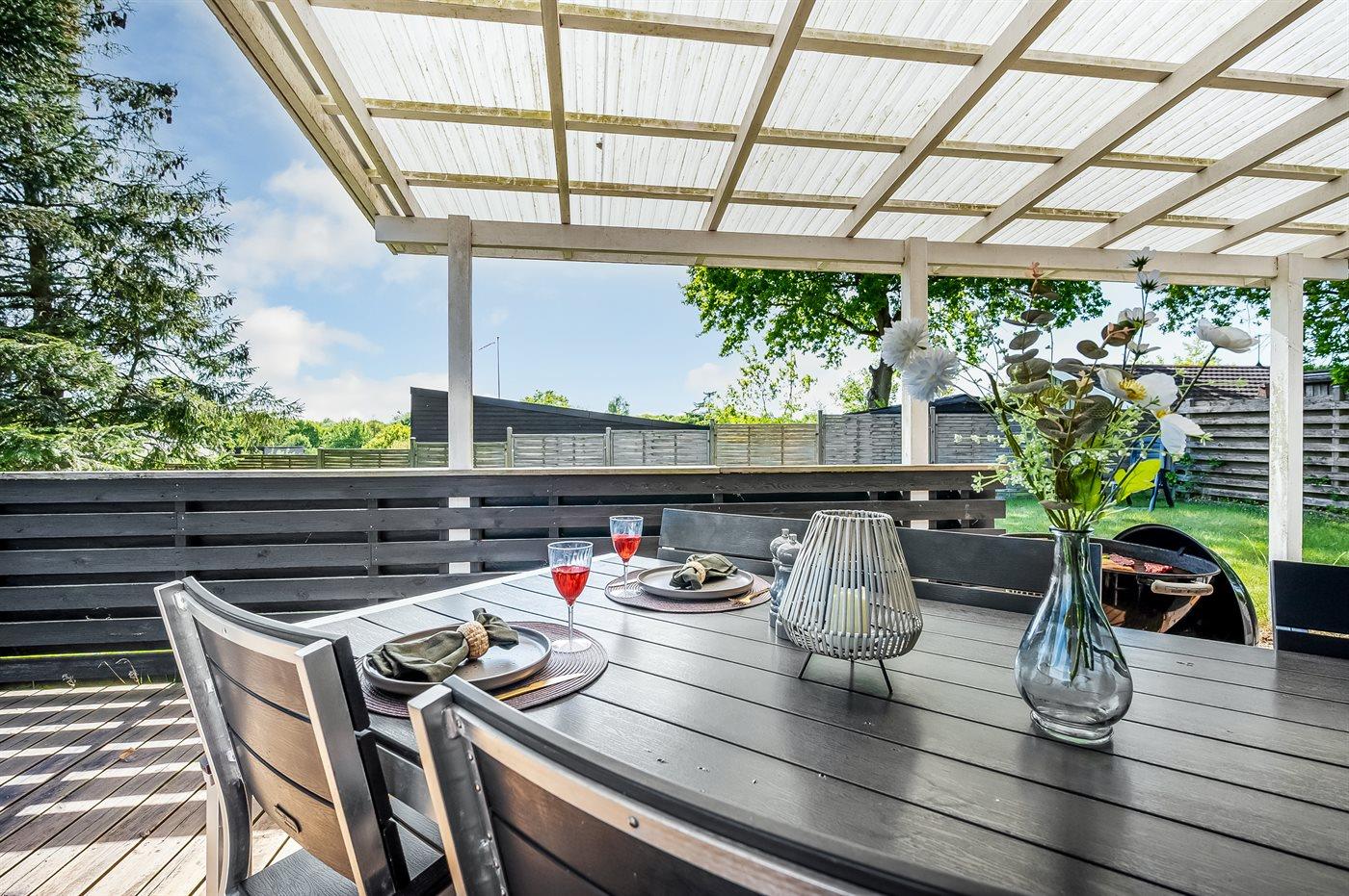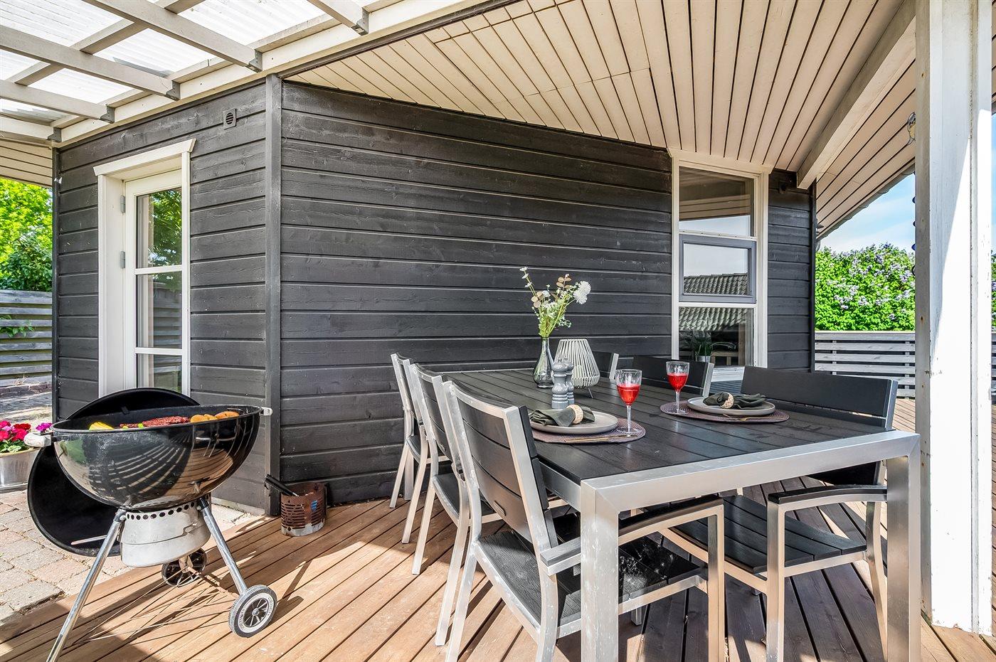 Sommerhuset har et godt terrasseareal, som også delvist er overdækket. Herfra kan stilheden nydes i fulde drag, og der er altid mulighed for at finde en fin lækrog, selvom det kan ofte kan blæse lidt, da huset ligger højt, men til gengæld med en fin udsigt over området. Ferieområdet indbyder til gåture i den dejlige natur, og en særlig oplevelse er et besøg på Hvidbjerg Klit, som ligger blot ca. 250 meter fra sommerhuset. Området byder også på et ishus og kaffested.