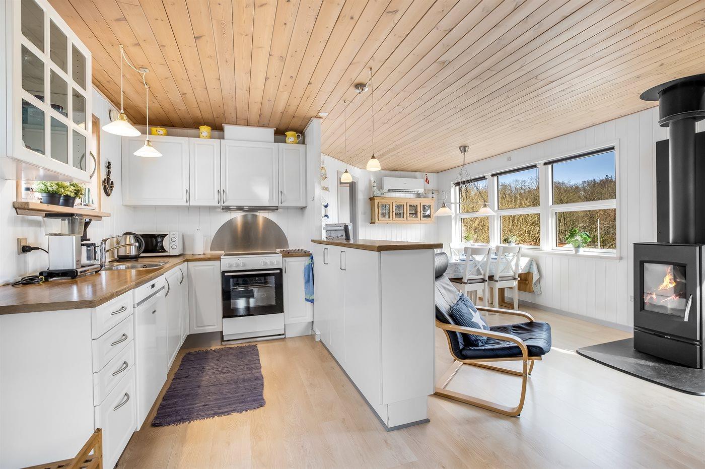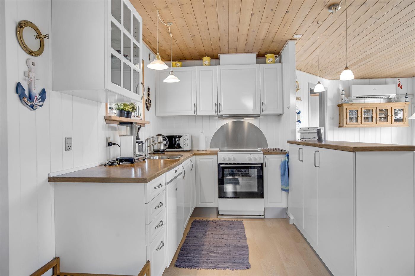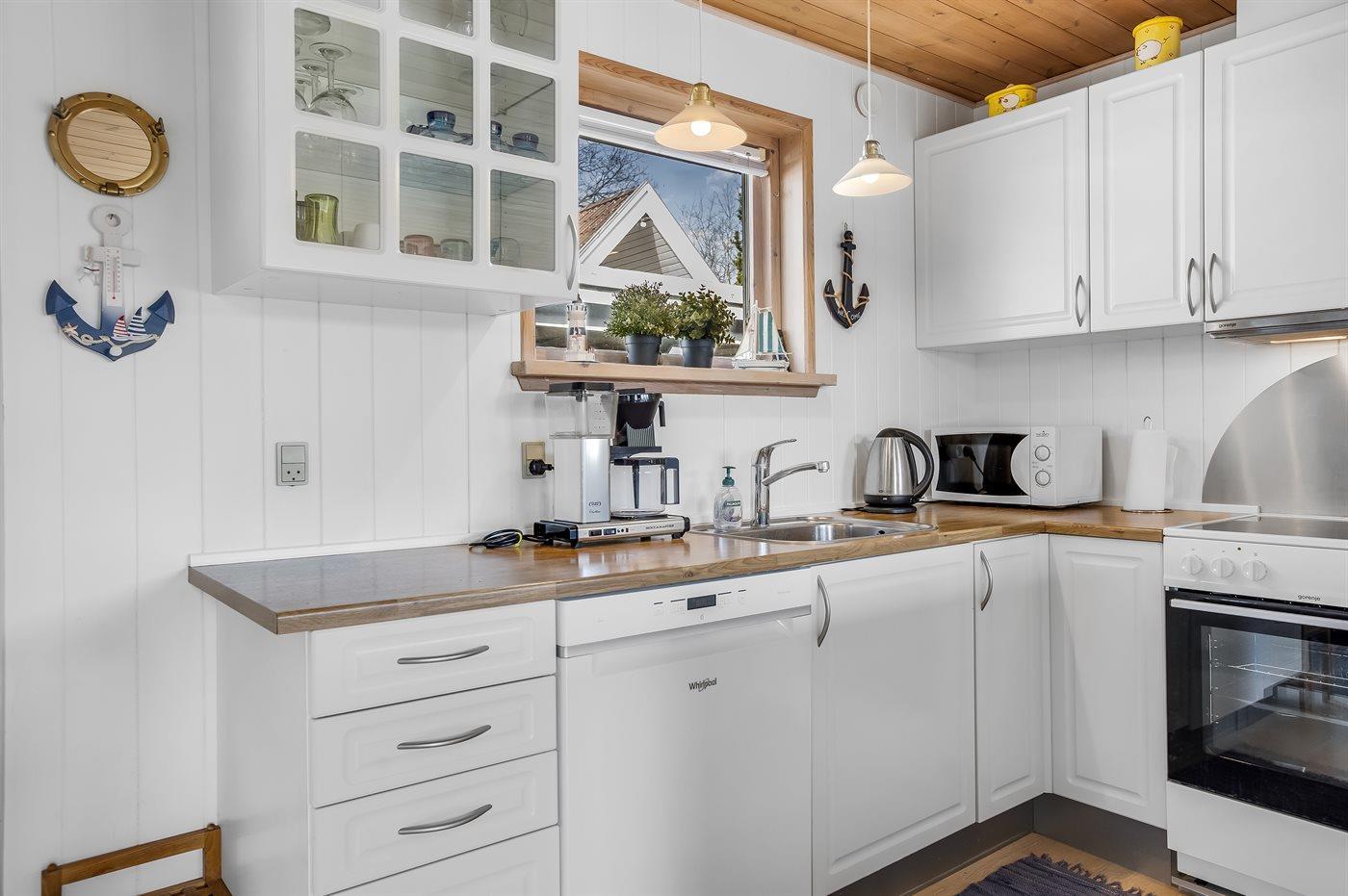 Køkkenet er udstyret med 1 køleskab. Der er 4 keramiske kogeplader, varmluftovn, mikrobølgeovn samt opvaskemaskine.