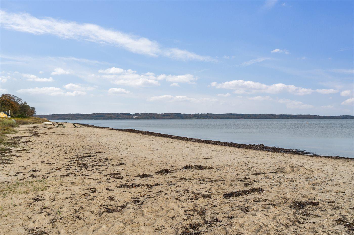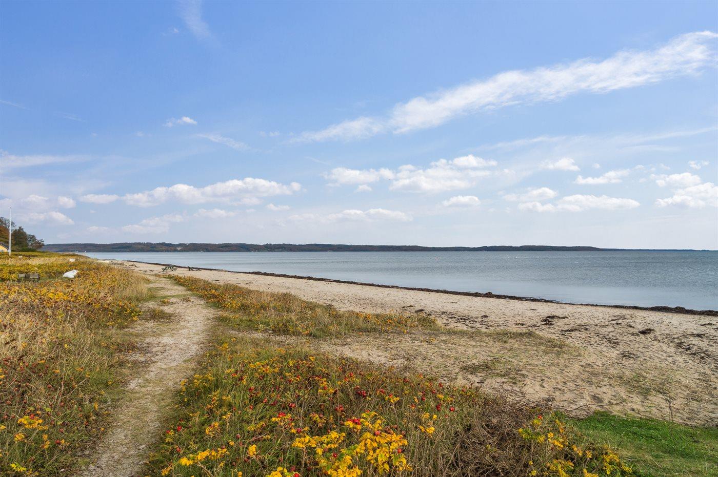 Dette hyggelige og mindre sommerhus er beliggende i det attraktive og naturskønne ferieområde ved Høll ud til Lillebælts smukke kyststrækning. Fra sommerhuset er der blot ca. 175 meter til vandet og den gode, børnevenlige badestrand også kaldet "Fladstranden". Her kan familien bruge adskillige timer på at hygge sig i vandkanten og nyde de skønne omgivelser. Her er virkelig tale om en attraktiv beliggenhed i dette skønne område.