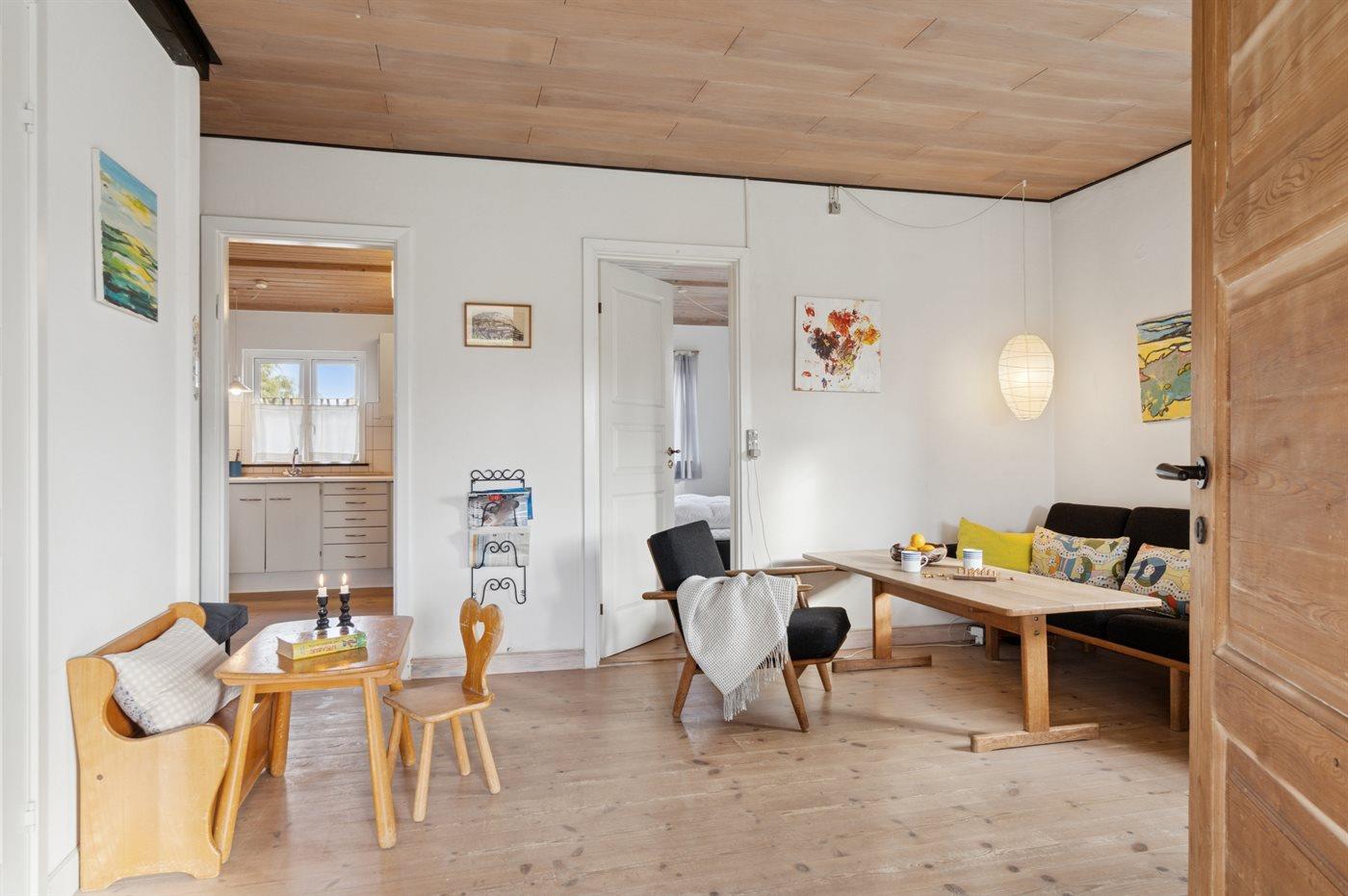 Hyggeligt sommerhus nær børnevenlig strand ved Høll med anneks og dejlig terrasse.
