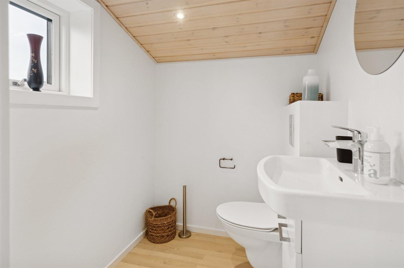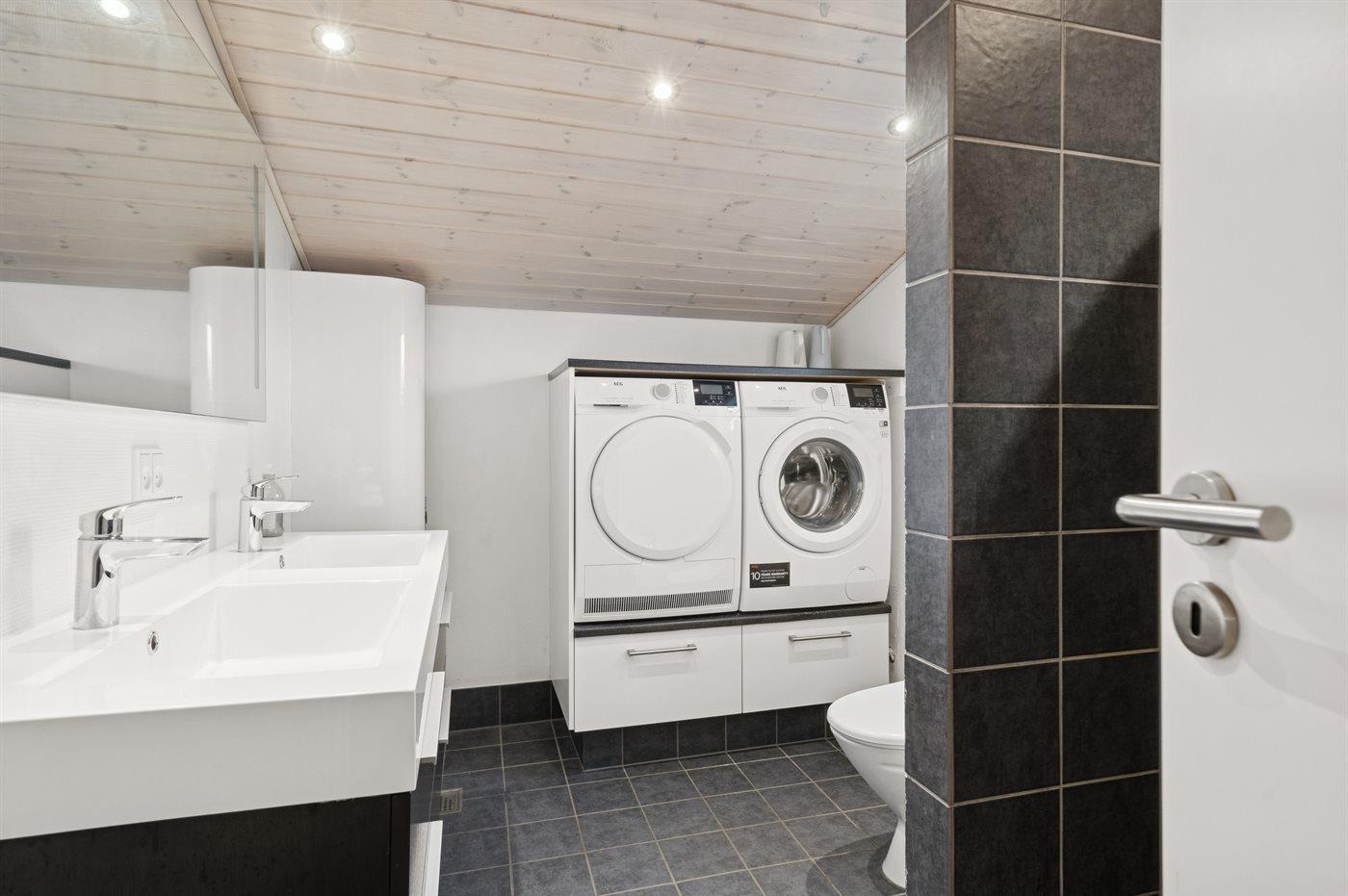 Der er 1 badeværelse med bruseniche og 2 toiletter, heraf 1 gæstetoilet. Der er gulvvarme på 1 badeværelse.