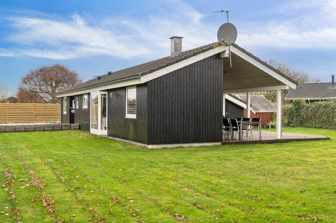 Ferieboligen er beliggende på en 775 m² stor havegrund. Der er 200 m til havet. Nærmeste forretning er beliggende i en afstand af 3500 m. Til ferieboligen hører åbent terrasseareal. Desuden er der overdækket terrasse. Grill til rådighed. Der er installeret stik til opladning af elbil. Med 11 kW ladeeffekt. Parkering ved ferieboligen.