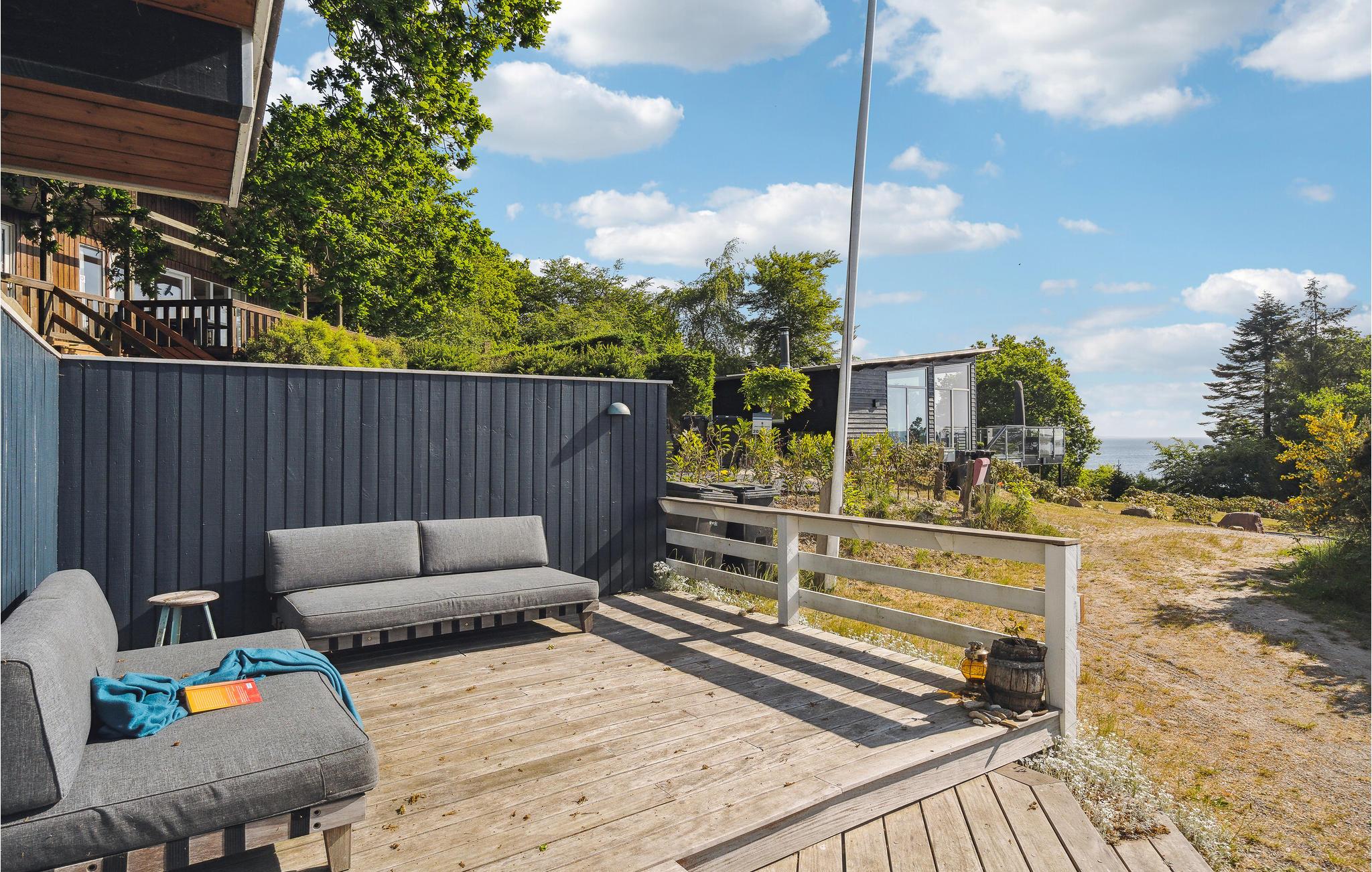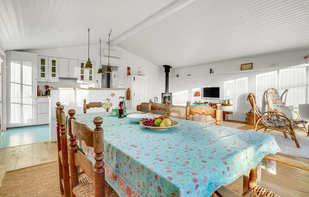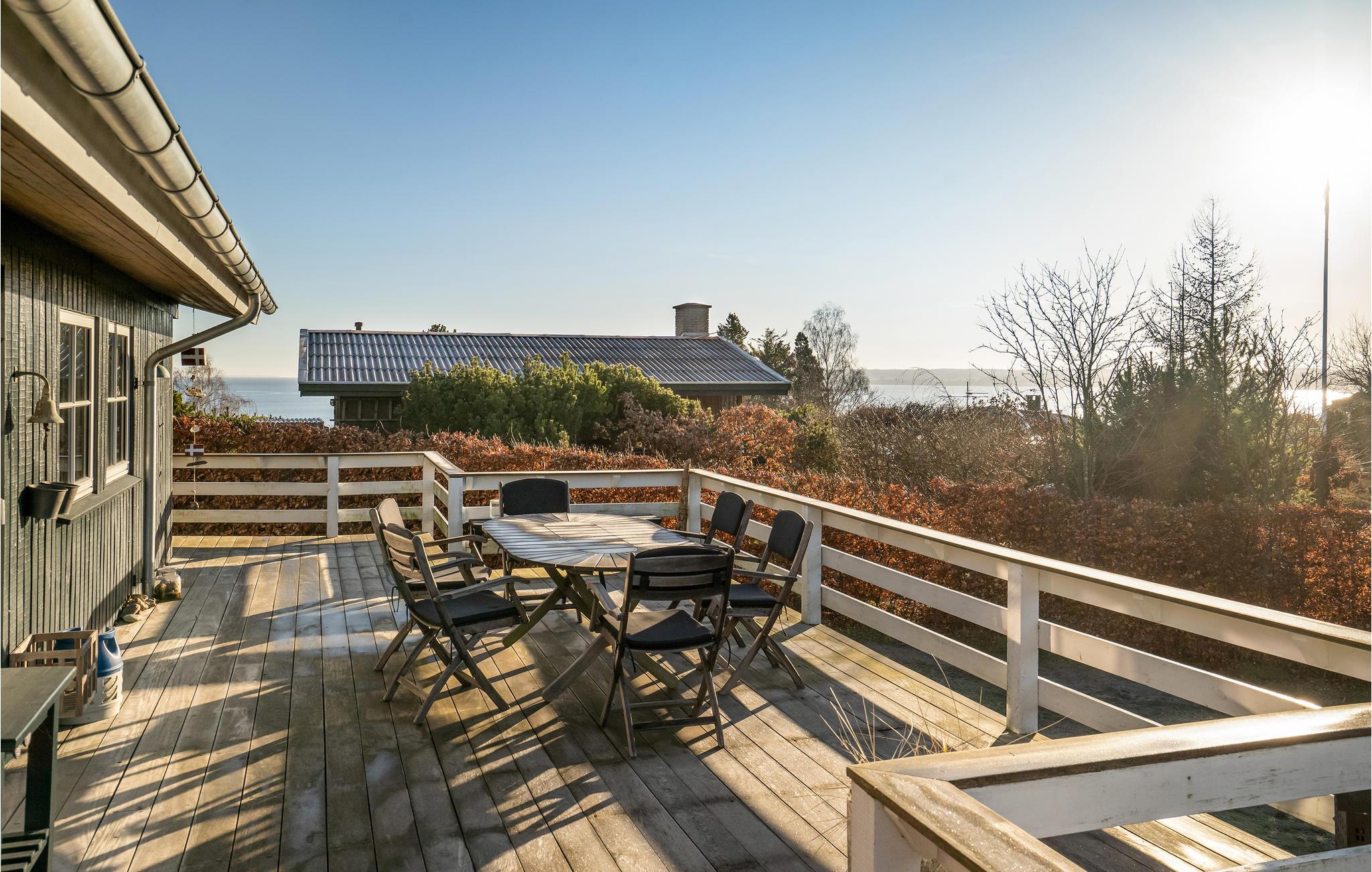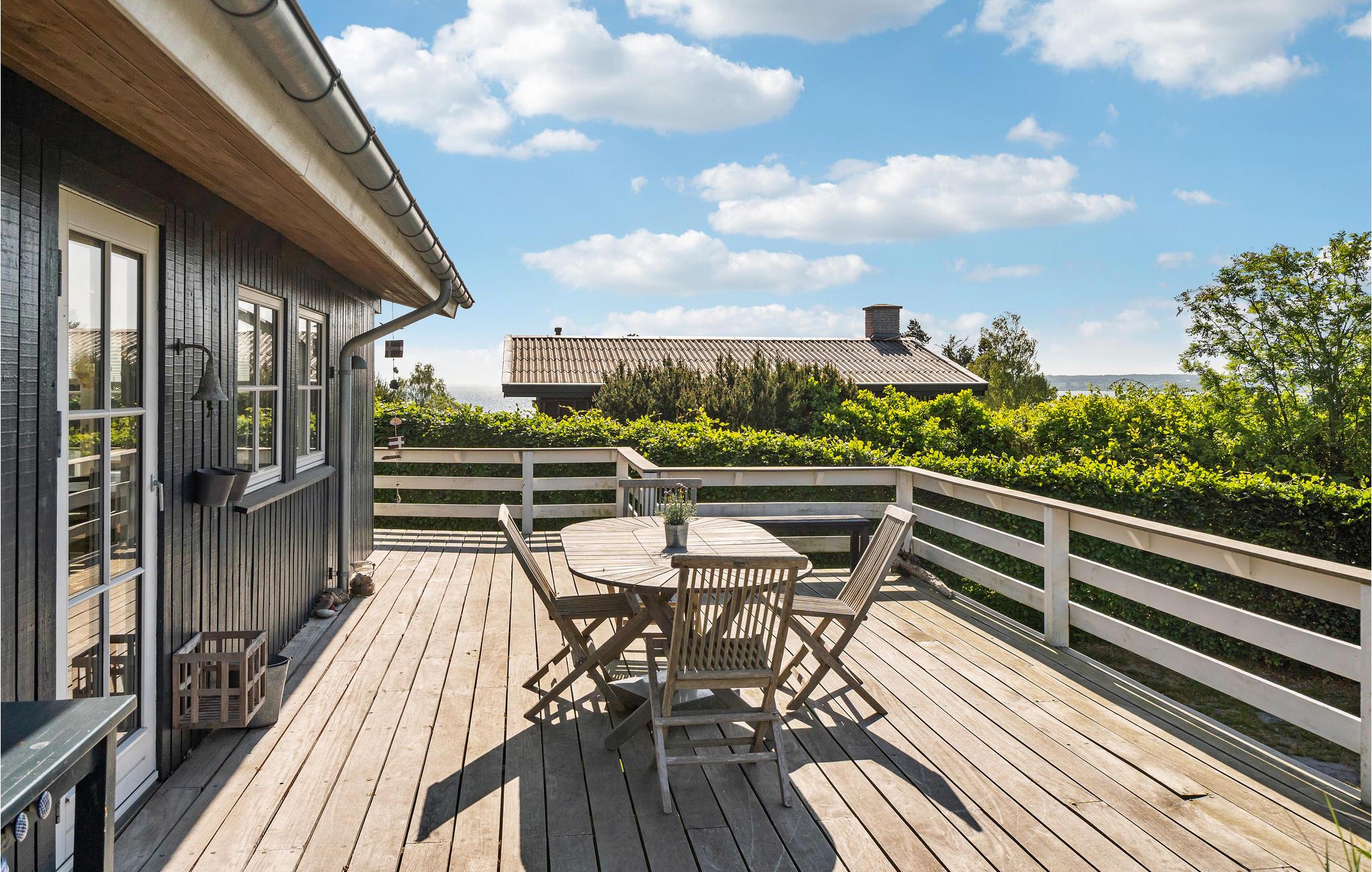 Glæd jer til en rolig og afslappende ferie i Hvidbjerg. Det lyse feriehus inviterer jer til at blive i feriehuset og læse en god bog i lænestolene, lægge fødderne op mens I ser en film og lade den knitrende ild i brændeovnen varme jer. I kan også tilbringe en dejlig tid udendørs på træterrassen. Nyd jeres morgenmad i den friske luft, mens I beundrer udsigten over fjorden.