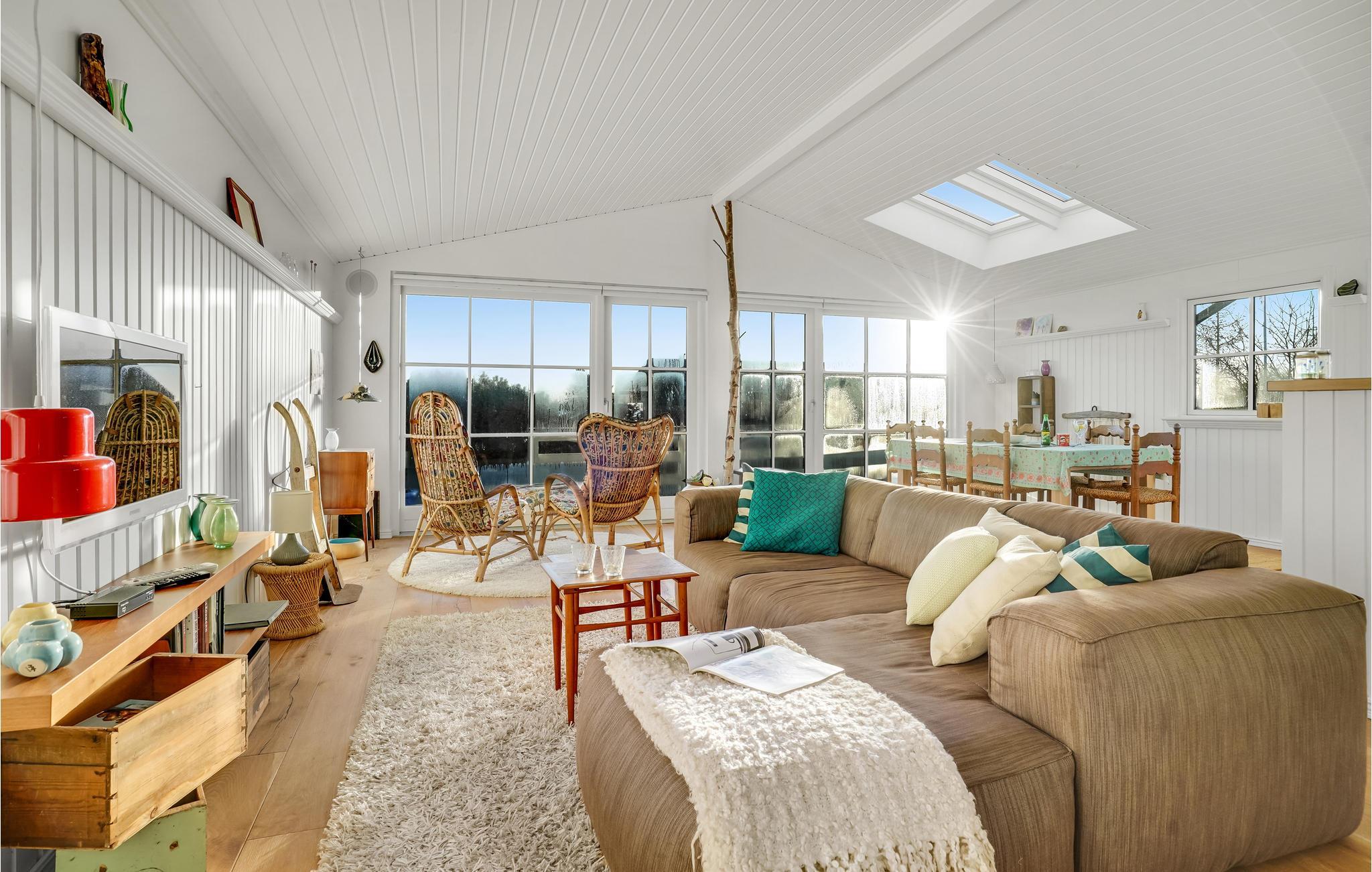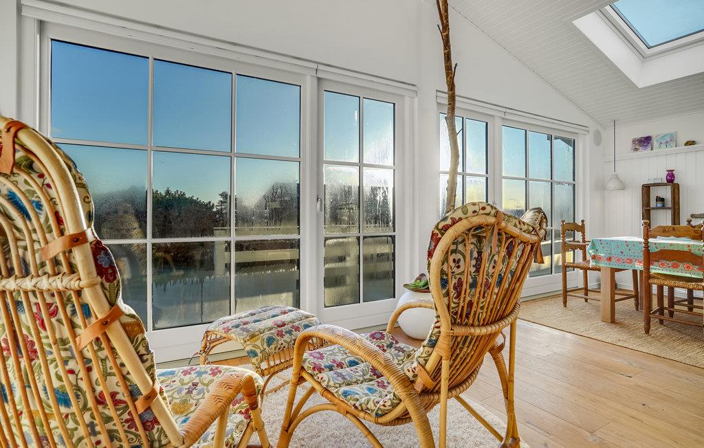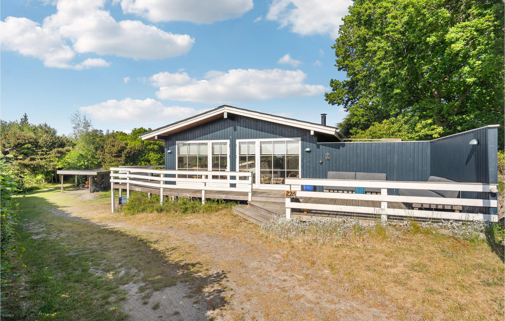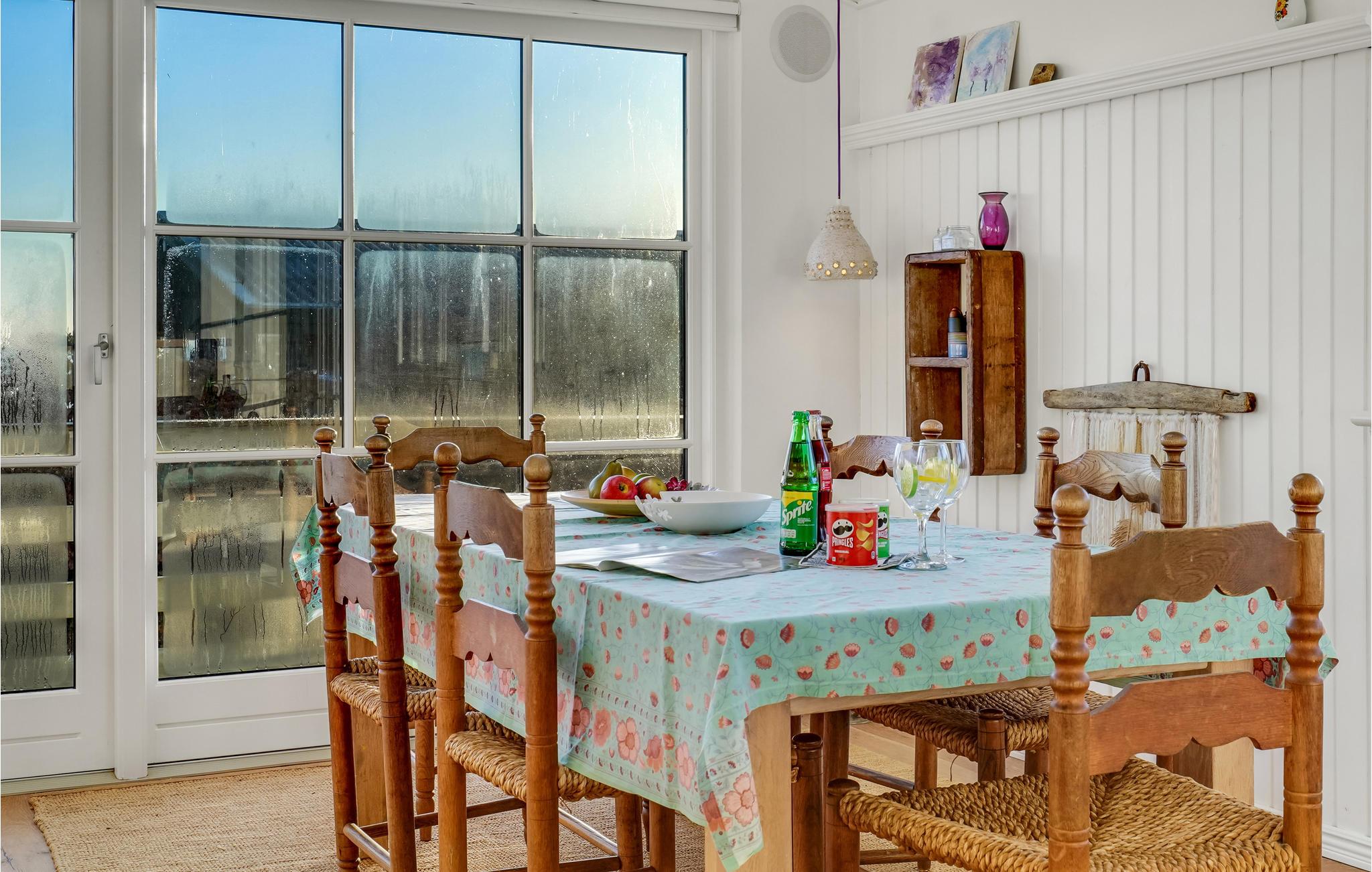 Glæd jer til en rolig og afslappende ferie i Hvidbjerg. Det lyse feriehus inviterer jer til at blive i feriehuset og læse en god bog i lænestolene, lægge fødderne op mens I ser en film og lade den knitrende ild i brændeovnen varme jer. I kan også tilbringe en dejlig tid udendørs på træterrassen. Nyd jeres morgenmad i den friske luft, mens I beundrer udsigten over fjorden.