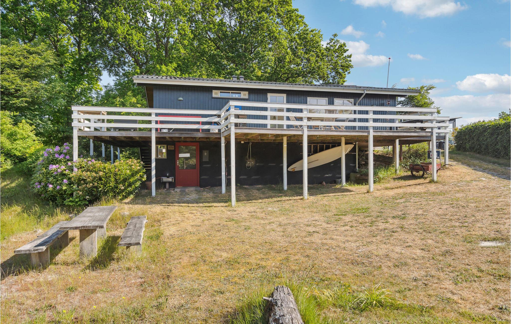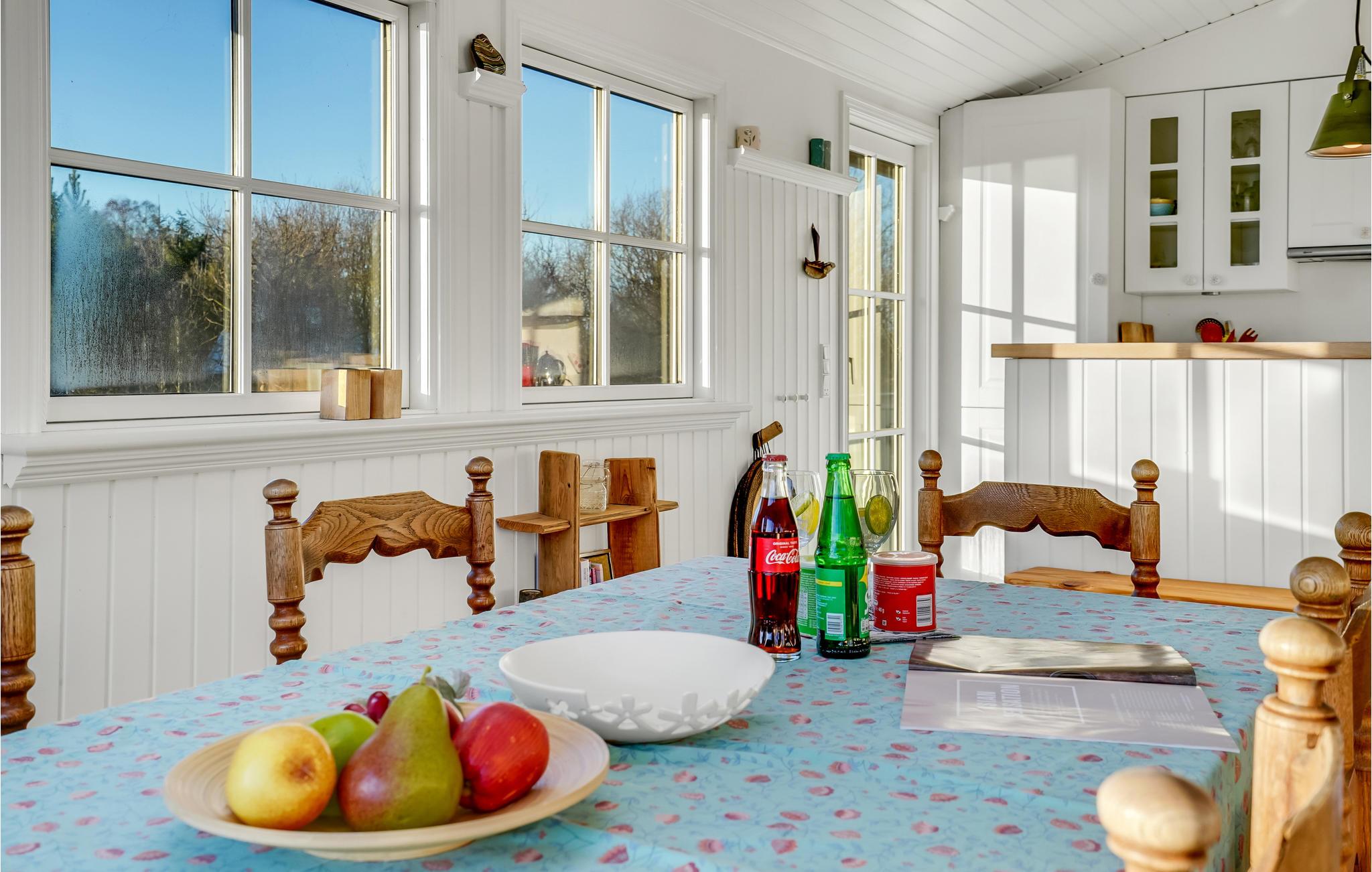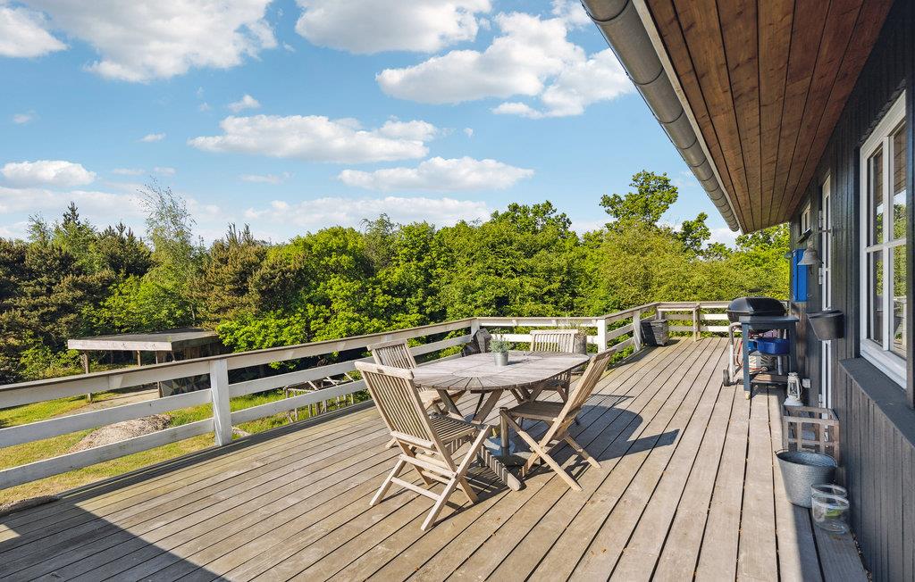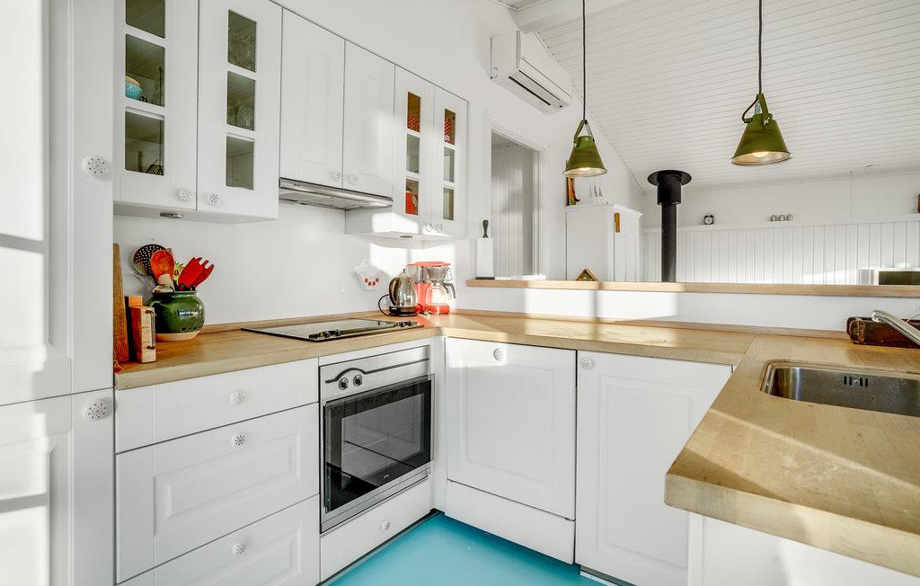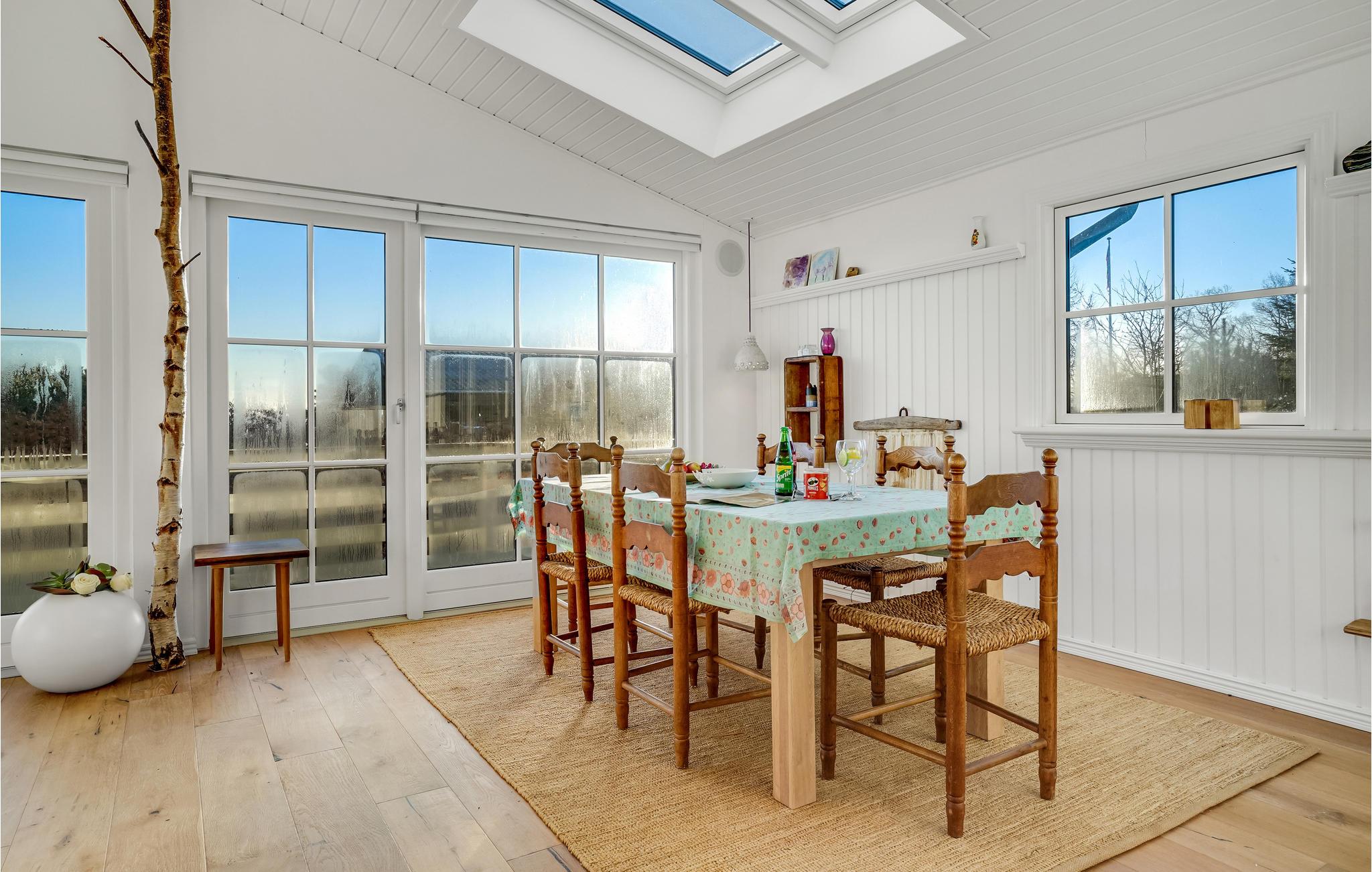 Glæd jer til en rolig og afslappende ferie i Hvidbjerg. Det lyse feriehus inviterer jer til at blive i feriehuset og læse en god bog i lænestolene, lægge fødderne op mens I ser en film og lade den knitrende ild i brændeovnen varme jer. I kan også tilbringe en dejlig tid udendørs på træterrassen. Nyd jeres morgenmad i den friske luft, mens I beundrer udsigten over fjorden.