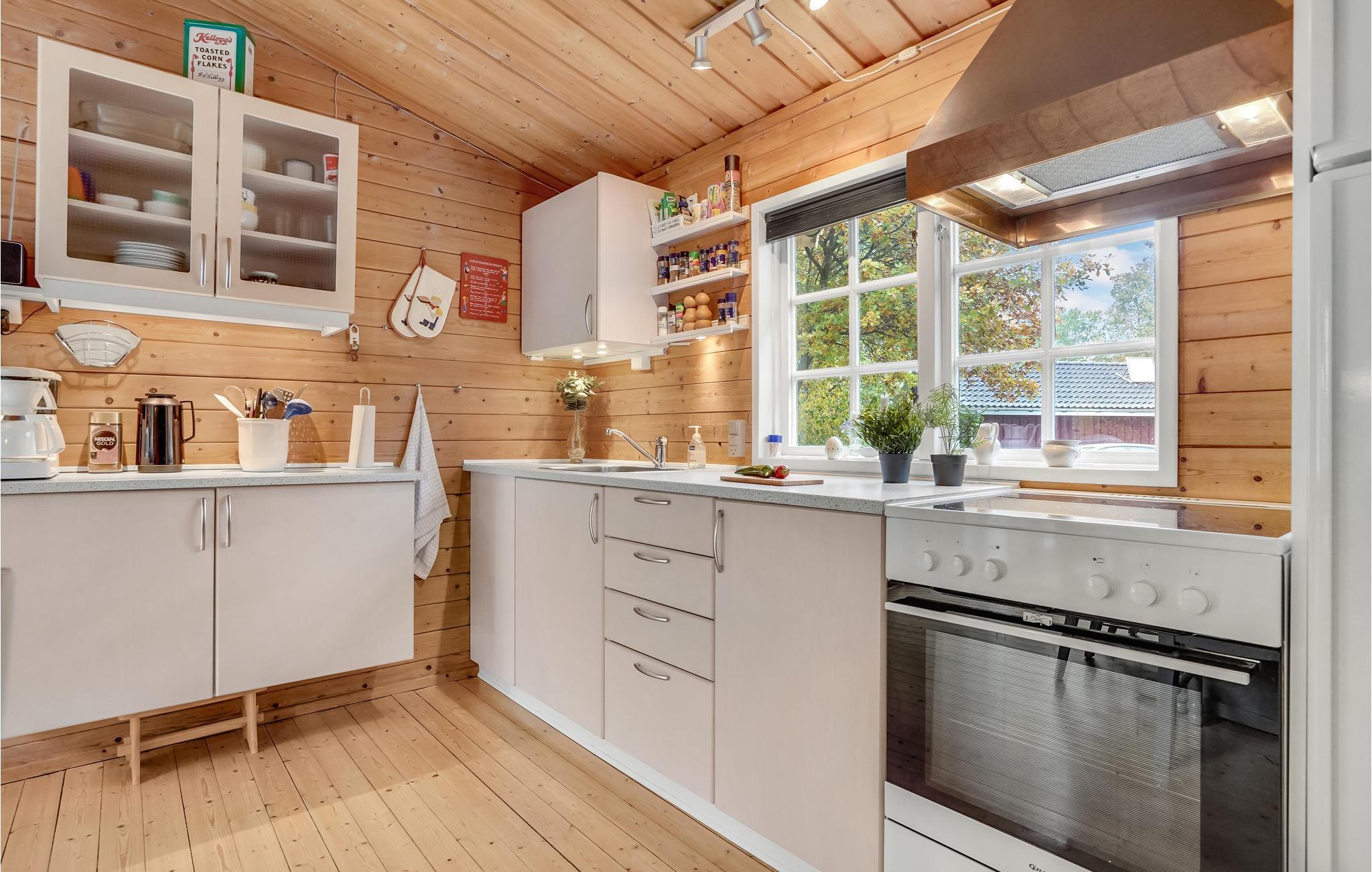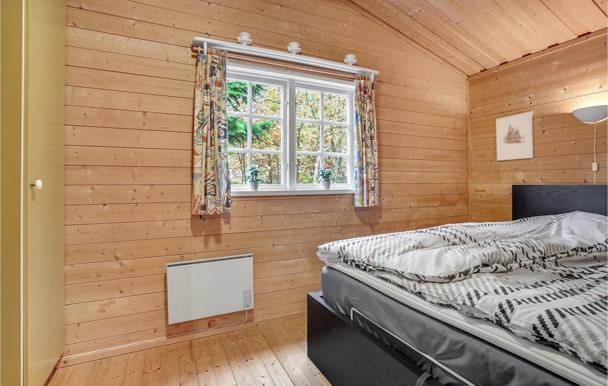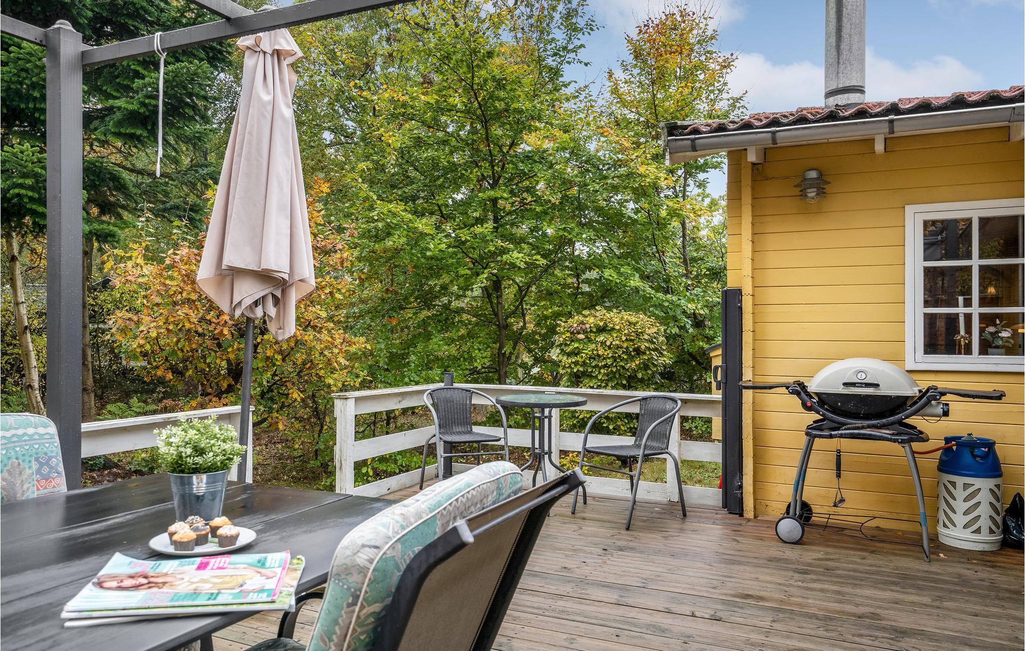 Kun få hundrede meter fra fjorden finder I dette indbydende træhus på en dejlig naturgrund. Indenfor venter lyse, praktisk indrettede værelser og en fredelig atmosfære på jer. Tilbring hyggelige timer med jeres kære i stuen og varm jer foran brændeovnen på kølige aftener. Når vejret er godt, inviterer terrassen til afslappende dage og stemningsfulde aftener.