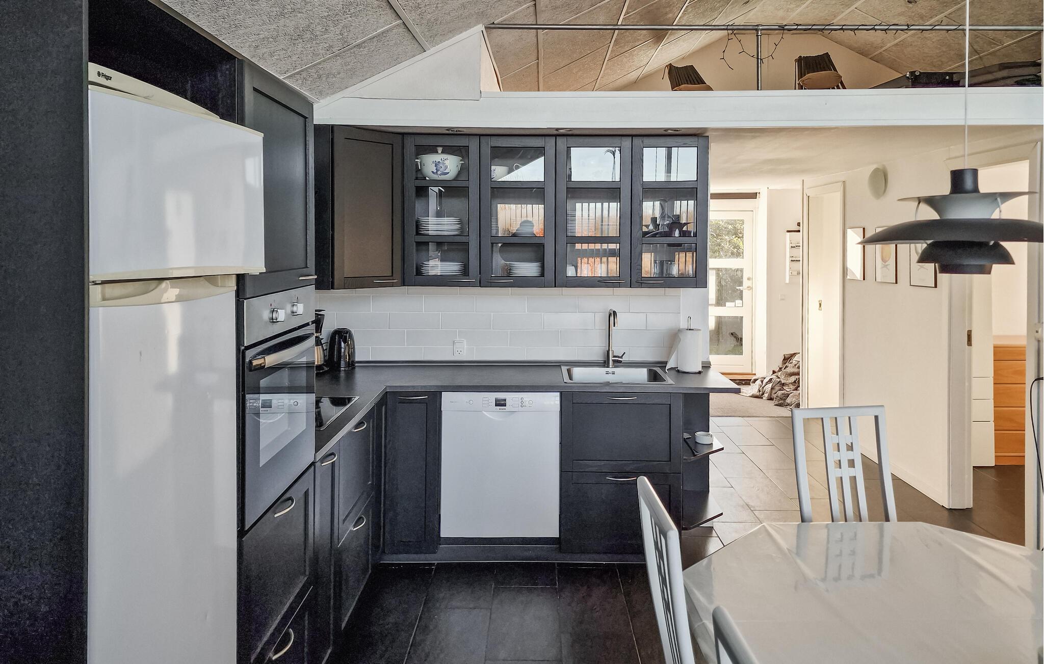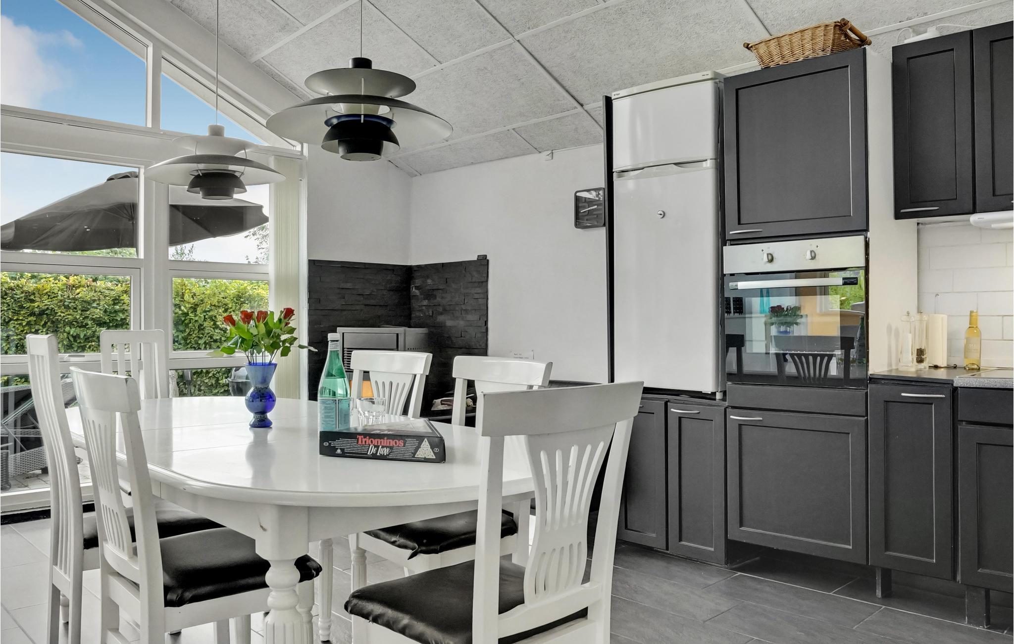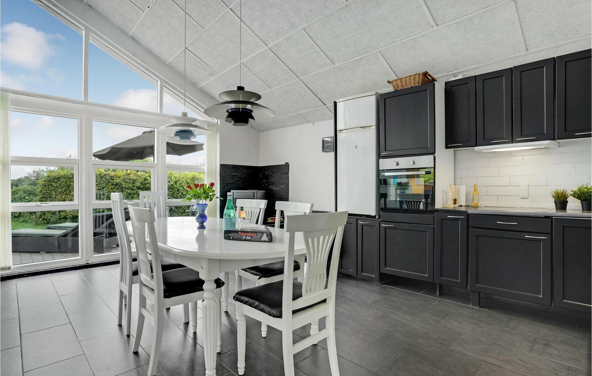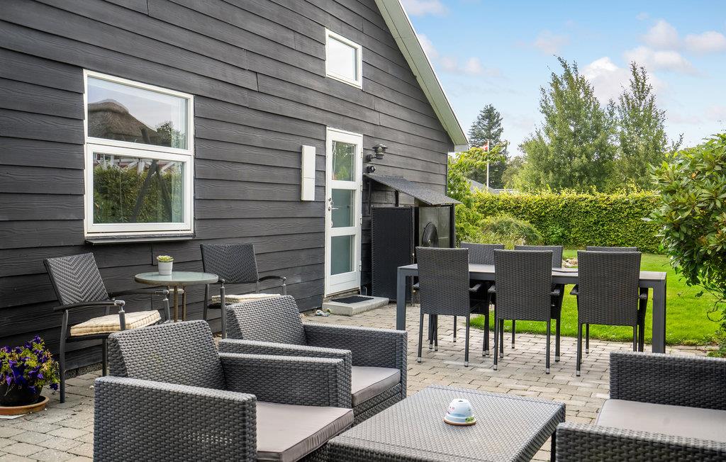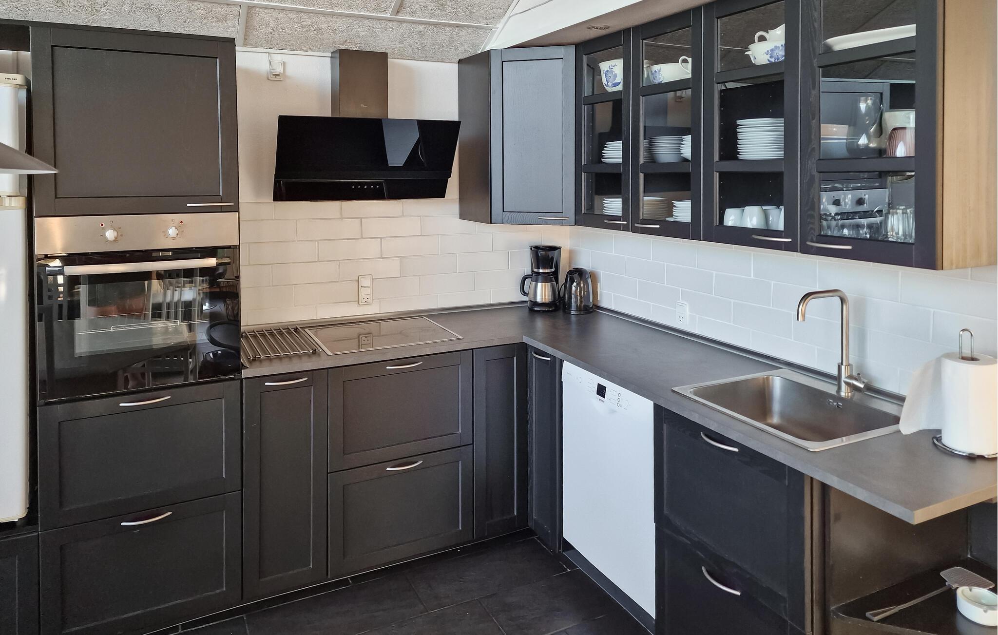 Dette skønne feriehus tager sig flot og stilrent ud i sort-hvide kontraster. Her kan I nyde en pause fra hverdagen og koncentrere jer om at slappe af. Familietiden vil sikkert især blive brugt i stuen, hvor I kan se film eller sammensætte dagens måltider, mens ilden buldrer i brændeovnen.