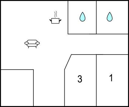 Badeværelse (nr. 1) - WC. Varmt og koldt vand. Bruser