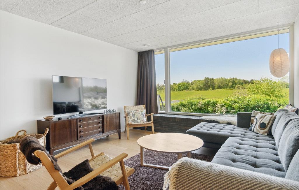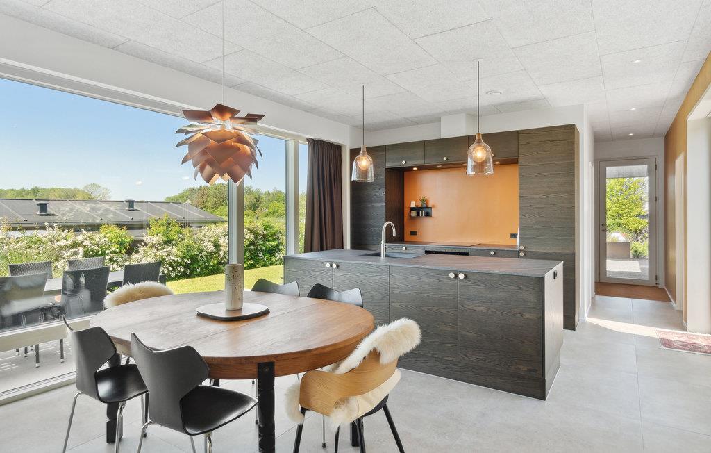 Eksklusivt feriehus ved Vejle Fjord med panoramaudsigt, moderne køkken og skøn have for en afslappende ferieoplevelse.