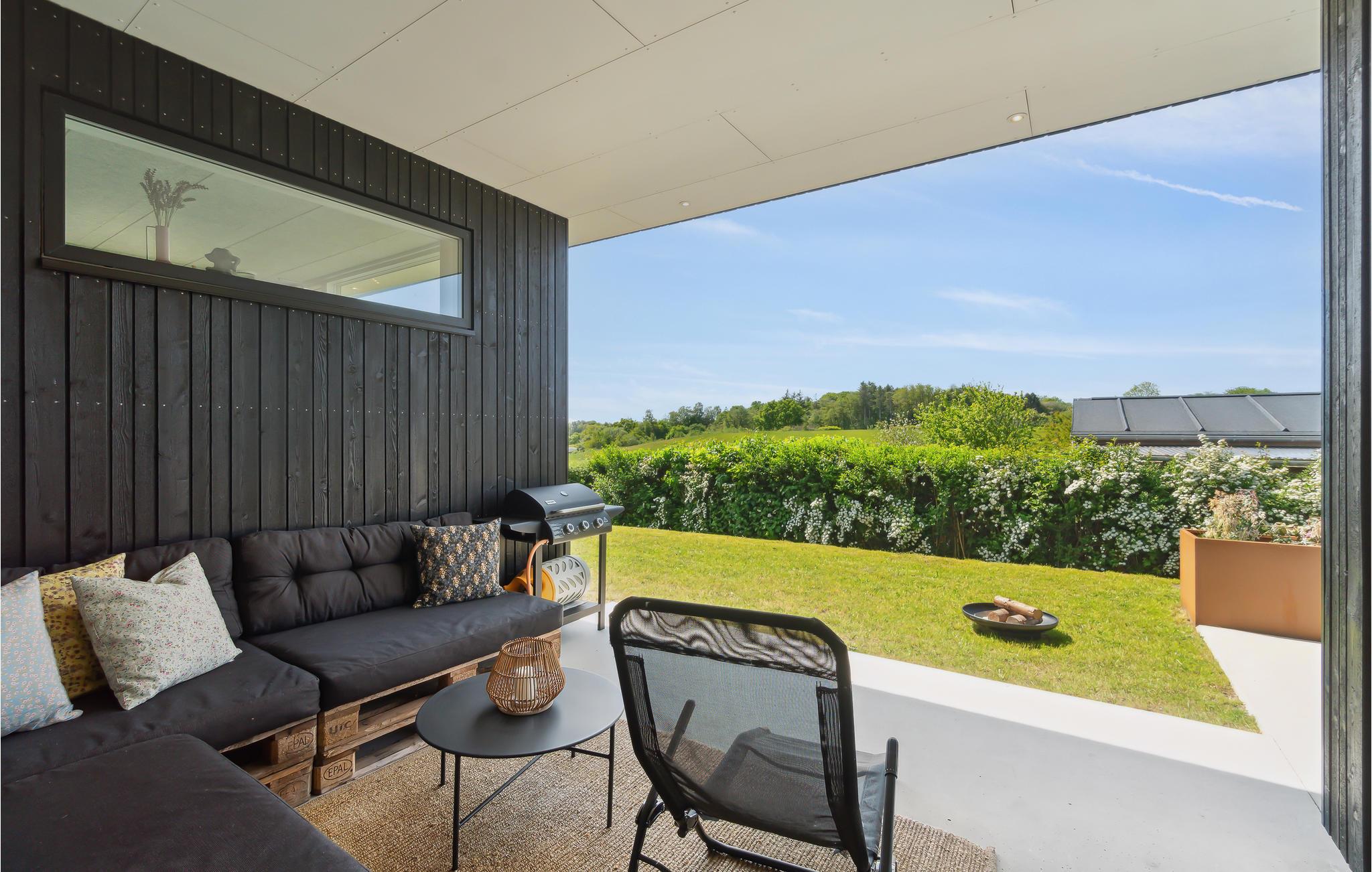 Der venter jer en helt særlig ferieoplevelse i denne drøm af et feriehus, som har store panoramavinduer, der giver jer udsigt til en grøn have og områdets frodige omgivelser. Inde i huset kan I se frem til komfort, design og en hyggelig atmosfære, der gør det nemmere for jer at glemme alt om den travle hverdag. Giv jer god tid til madlavningen i det moderne køkken, som har god kontakt til spisestuen og terrassen i sommermånederne. Ingen detaljer er tilfældige i dette indbydende hus, hvor I omgiver jer med høj komfort både ude og inde.