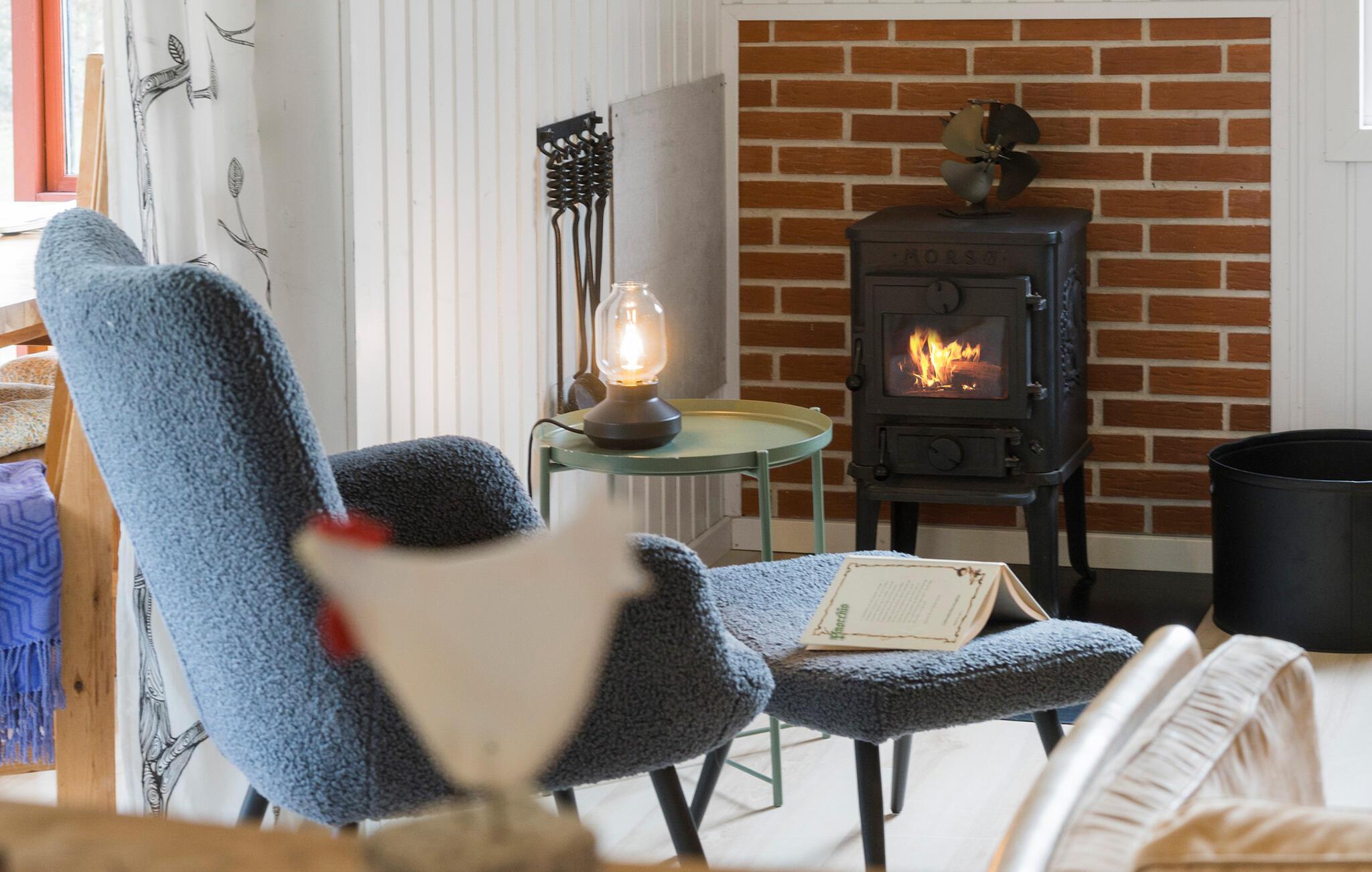 På de køligere dage kan I fyre op i brændeovnen og nyde dens varme og stille knitren, mens I spiller brætspil eller har købt snacks til en hyggelig filmaften.