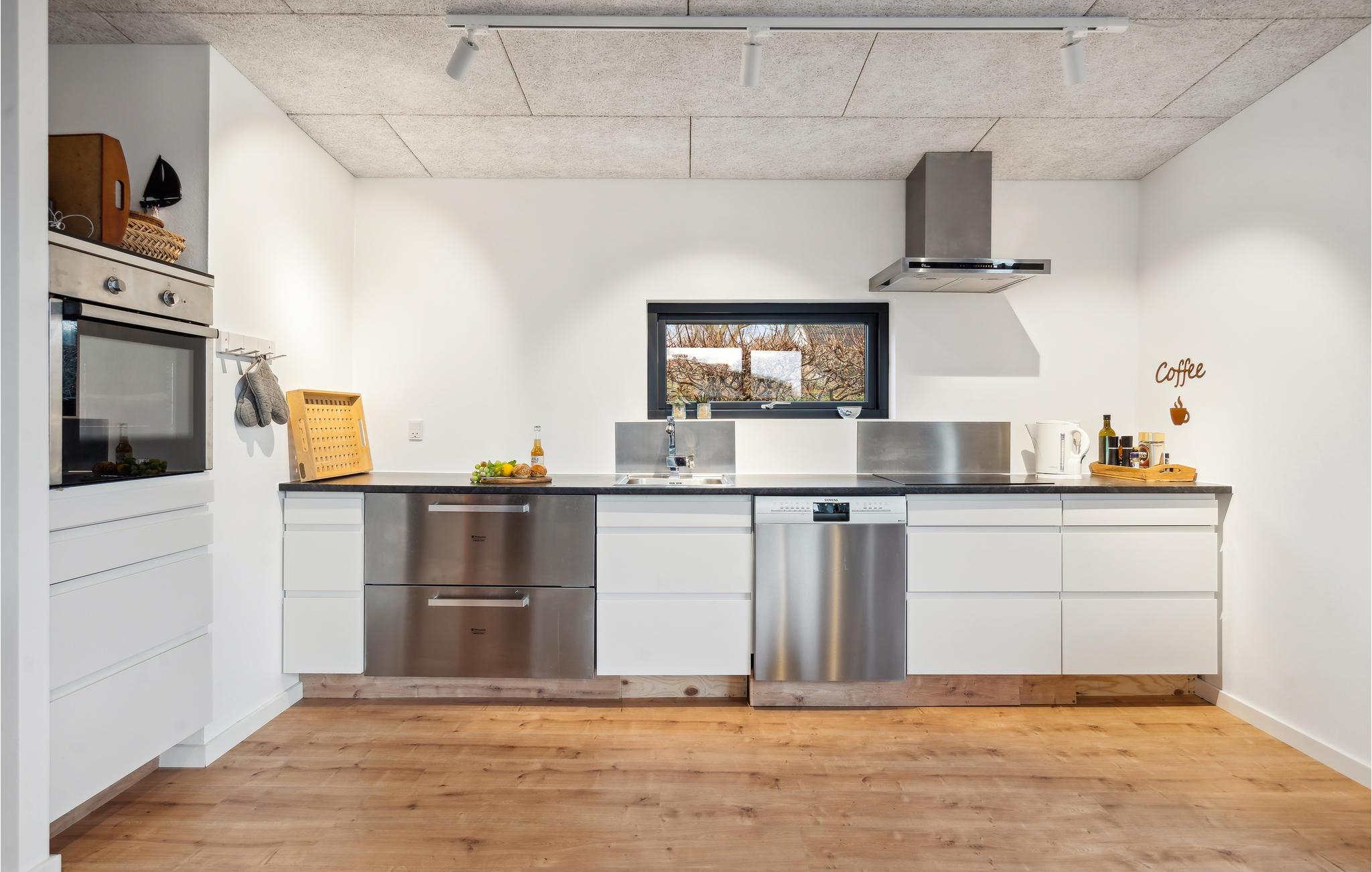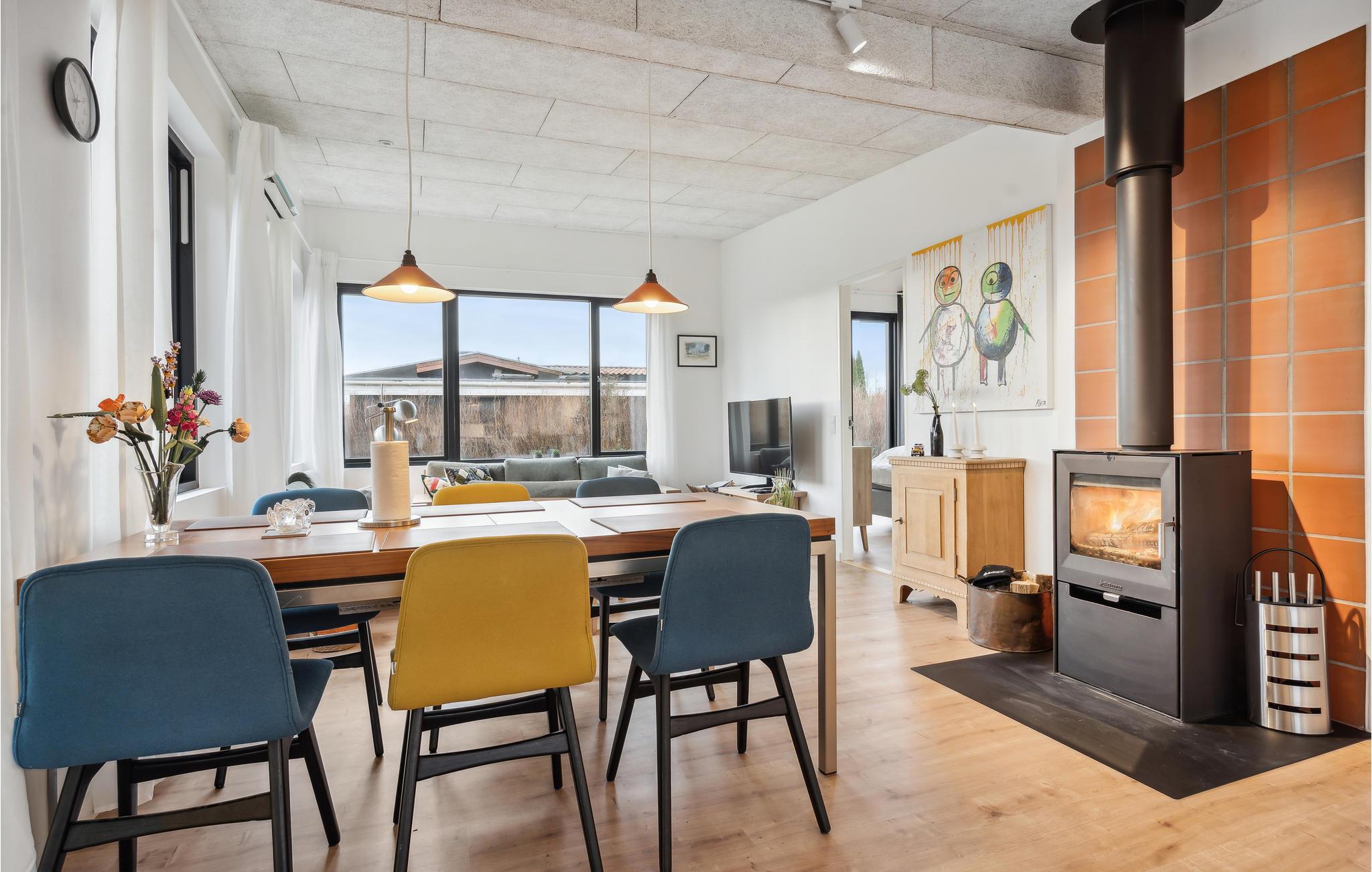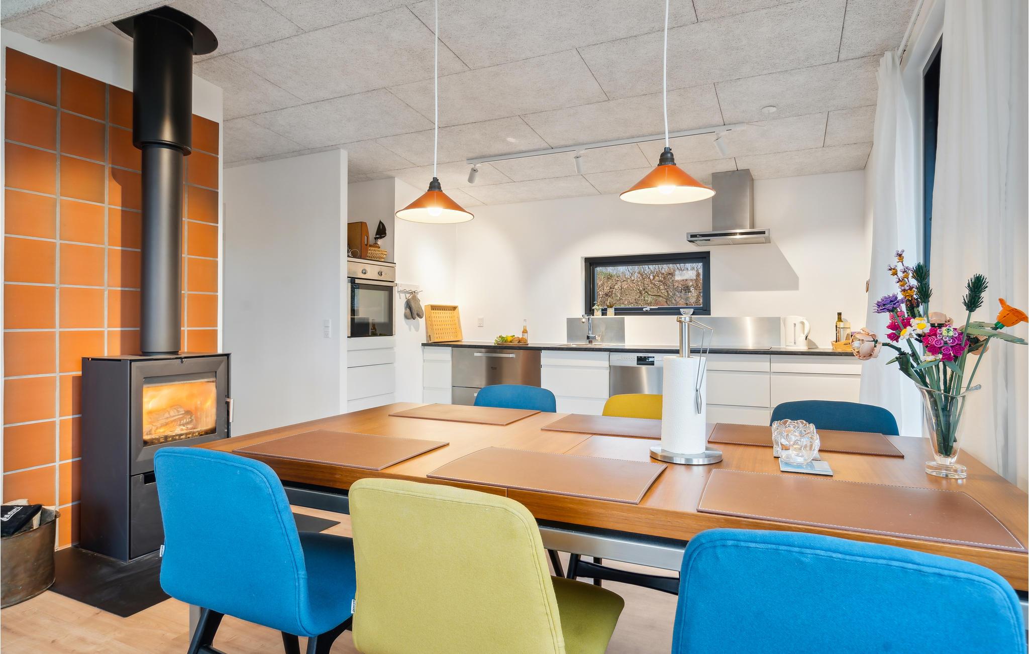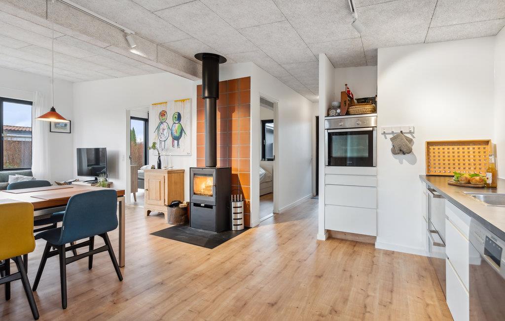 Velkommen til dette dejlige feriehus ved Vejle Fjord, hvor I kan glæde jer til det smagfulde interiør og den kærlige indretning. I vil bemærke den rare atmosfære og flotte udsmykning med det samme, I træder ind ad døren. I vil hurtigt føle jer hjemme her, og I kan særligt nyde stemningen i den dejlige stue, hvor brændeovnen er det varme hjerte , der pumper lune temperaturer ud i det åbne rum på køligere dage.