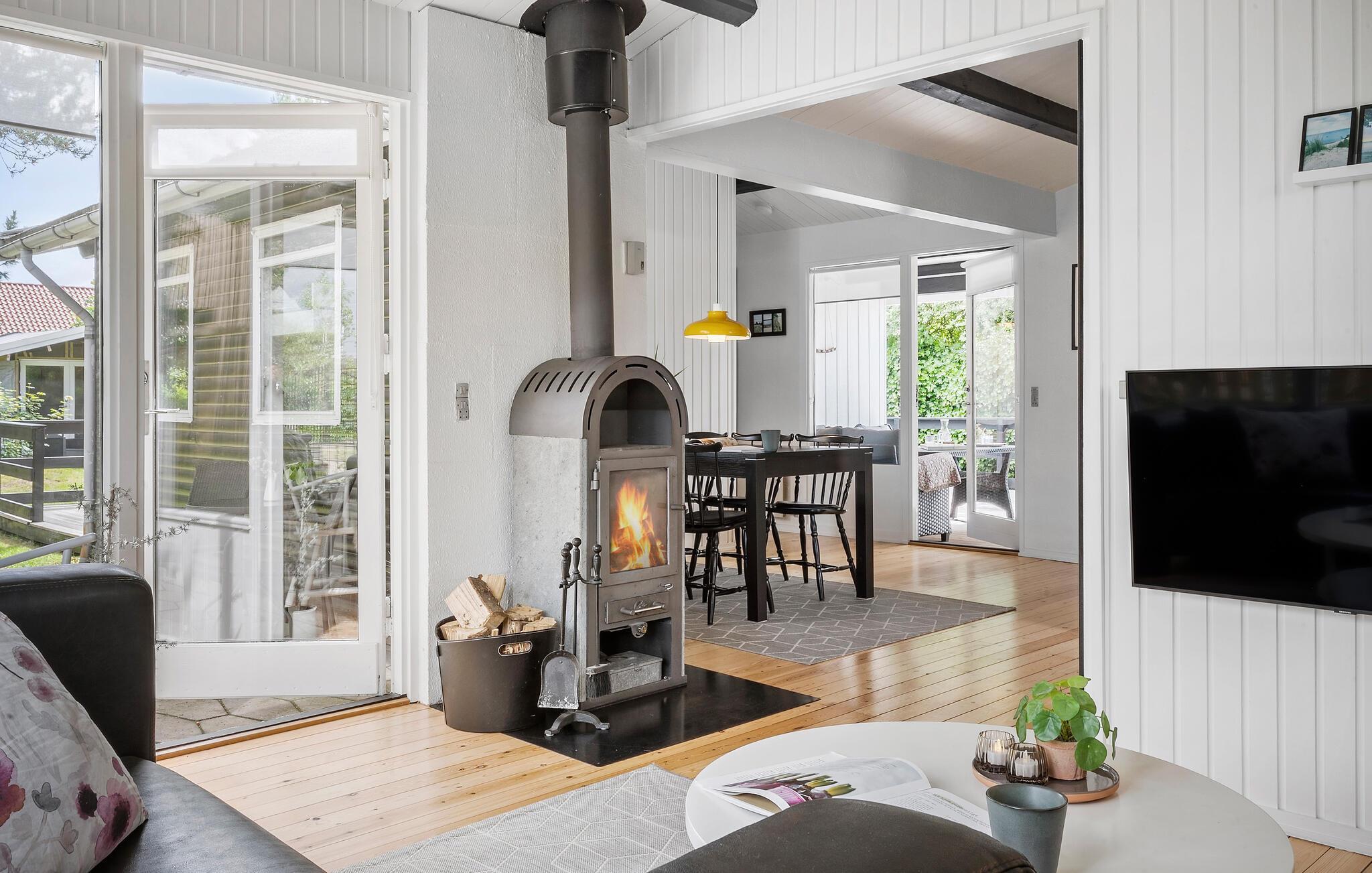 På den rummelige terrasse kan I spise udenfor under parasollen eller blot nyde den friske luft og roen. Huset er smukt beliggende ved Vejle Fjord, hvor I kan tage på lange gåture og nyde forfriskende dage med badning i fjorden. Den nærmeste sandstrand ligger kun et stenkast fra jeres hus. Kør også til Vejle, hvor I kan tage på restaurant eller café og opleve spændende seværdigheder og attraktioner.