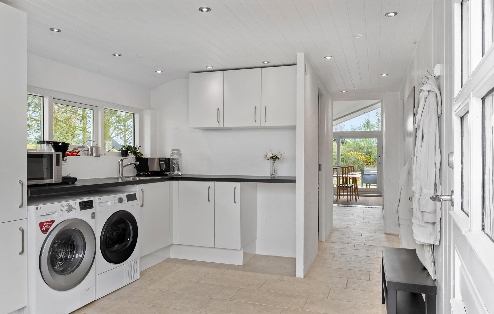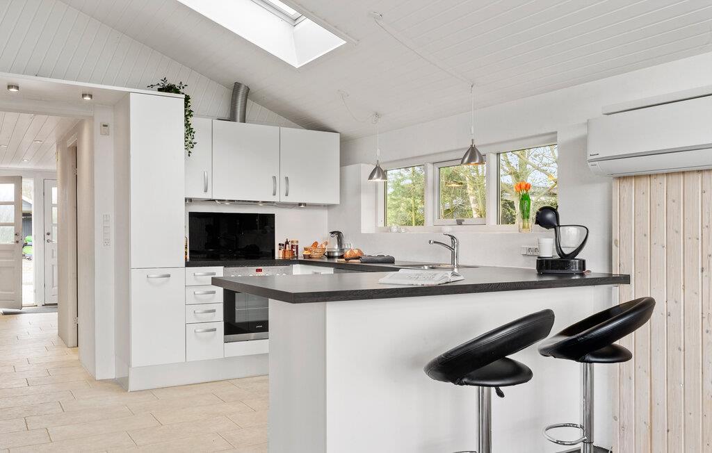 Jeres feriehus giver jer en vellykket kombination af moderne møbler og en hjemlig atmosfære, ideelt til afslappende ferier. Det åbne opholdsområde fremstår venligt og lysindfaldet takket være de store vinduespartier. Gør det behageligt i sofaen og nyd udsigten over haven. I det moderne, veludstyrede køkken kan I tilberede måltiderne sammen og planlægge jeres feriedag efter jeres ønsker.