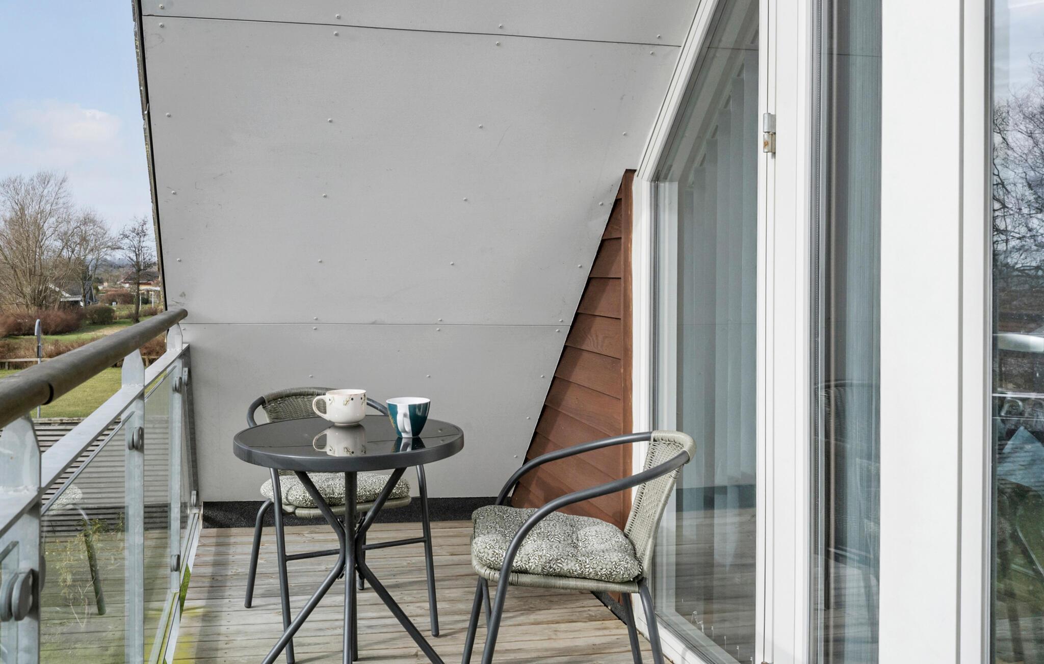 Den store terrasse med stilfulde møbler tilbyder det ideelle sted til afslappende timer i den friske luft. Nyd den betagende udsigt fra jeres balkon eller gør jer godt tilpas i den store have. Nærheden til naturen giver jer mulighed for at se fugle og mærke den friske havbrise.