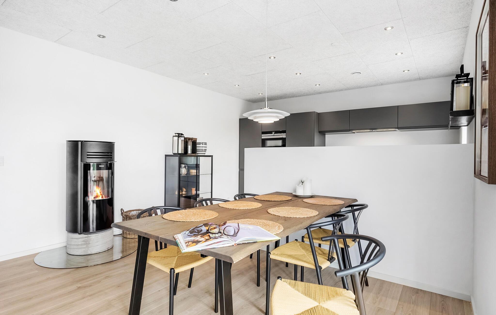 Dette charmerende beliggende hus inviterer jer til en afslappende ferie omgivet af natur. Lyse værelser, hyggelige møbler med et naturligt trælook og en pejs skaber en hyggelig og behagelig atmosfære. Forkæl jer selv med et godt glas vin i den indbydende sofa, eller afhold en sjov filmaften.
