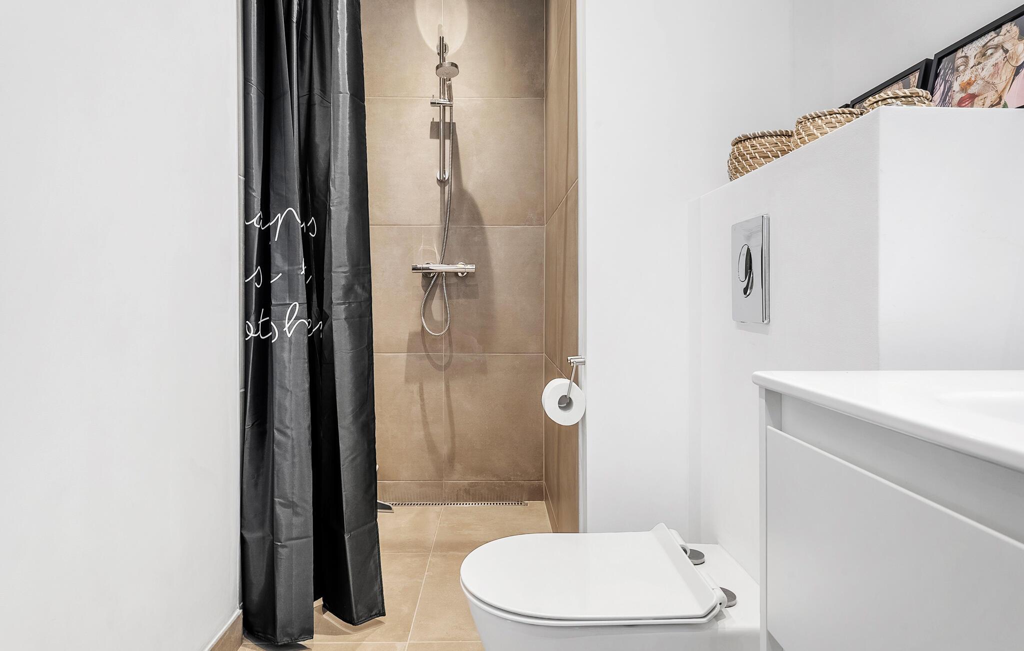Badeværelse (nr. 1) - WC. Varmt og koldt vand. Bruser