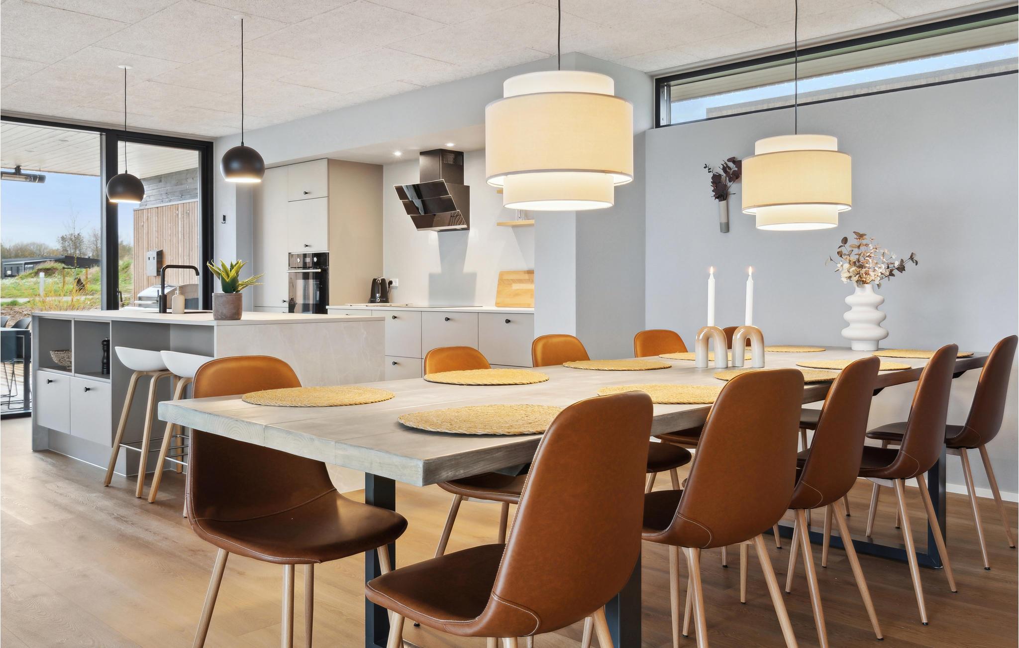 Rejs med familien til Hvidbjerg og hold en dejlig ferie i dette rummelige og særdeles indbydende hus. Det moderne design og de lyse rum danner de perfekte rammer for en dejlig tid med spil, leg og afslapning. Vinduerne, der går fra gulv til loft, lader ikke kun blikket vandre udenfor, men fylder også alle rum med behageligt dagslys. Spil billard sammen eller læn jer tilbage i sofaen til en god film.