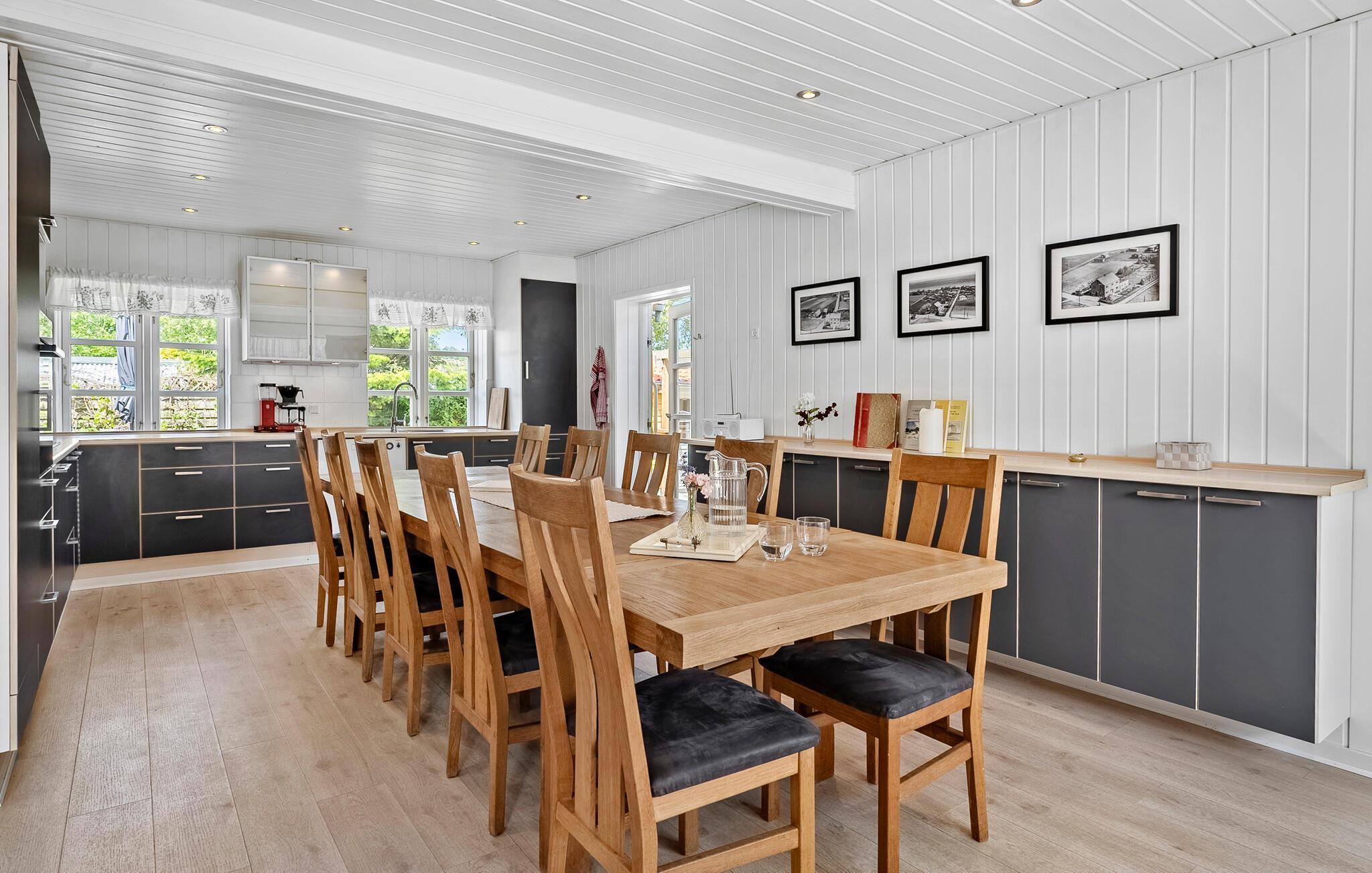 Jeres rummelige hus er ideelt for dem, der søger en kombination af komfort, nærhed til havet og privatliv. Nyd den rolige beliggenhed, den veldesignede planløsning og de forskellige opholdsmuligheder, både indendørs og udendørs. Tilbring tiden i et lyst og indbydende interiør med masser af plads til socialt samvær. Lav mad i det moderne, veludstyrede køkken og spis sammen ved det lange spisebord, der kan rumme hele familien.