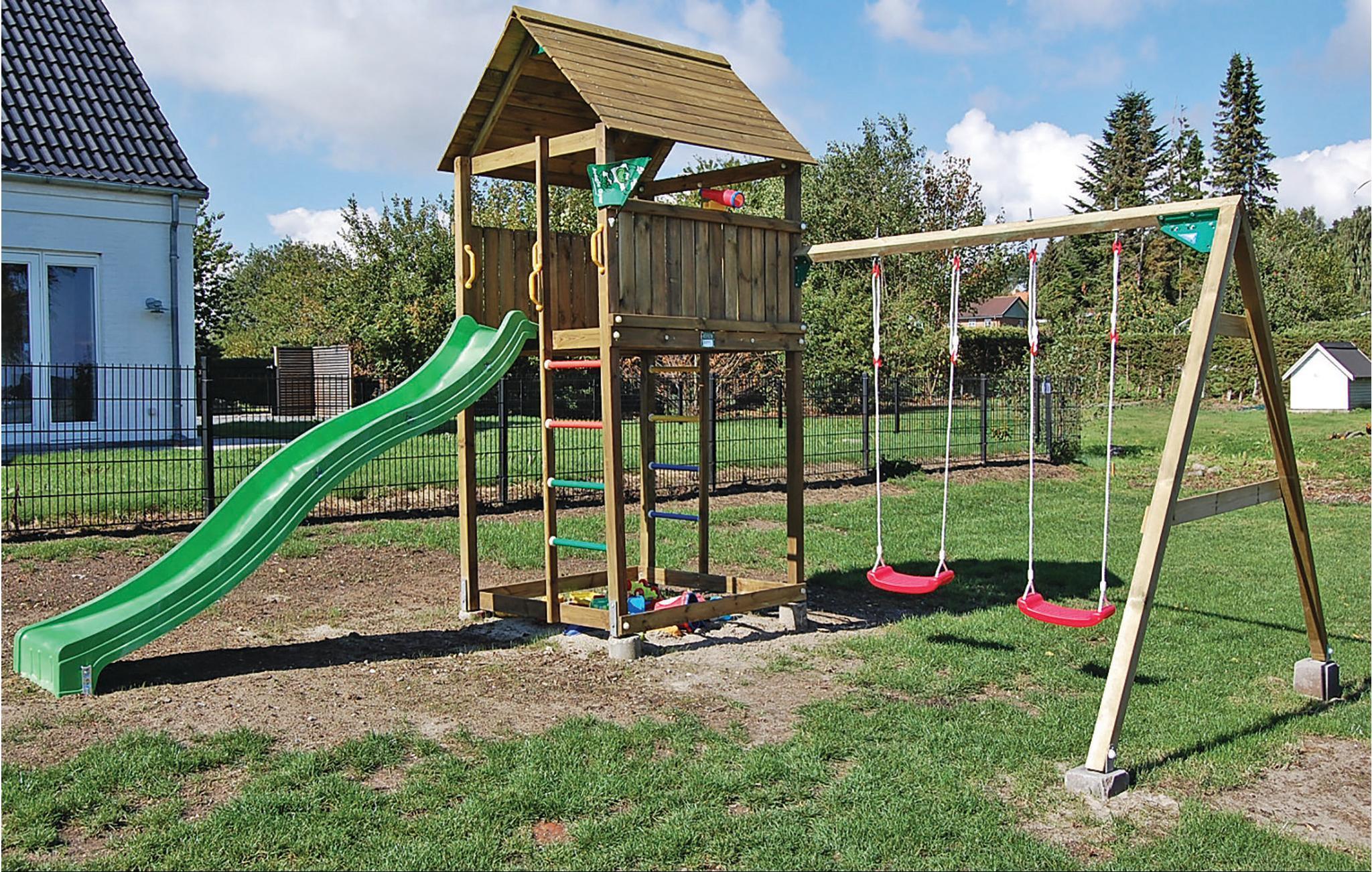 Flot sommerhus nær Hvidbjerg strand med sauna, pool og legeplads i naturskønne omgivelser.