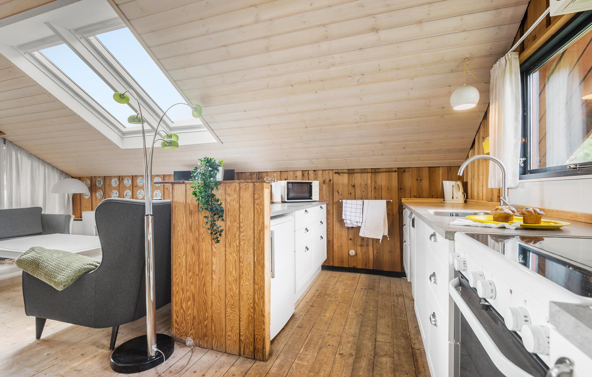 Indenfor i huset venter jer en stemning af træ i den åbne stue samt en knitrende brændeovn, som også på køligere aftener sørger for behagelig varme. Tilbring afslappede timer i den hyggelige siddekrog, eller nyd fælles måltider ved spisebordet, mens I nyder udsigten over naturen. Det veludstyrede køkken inviterer til at tilberede lækre retter til hele familien.