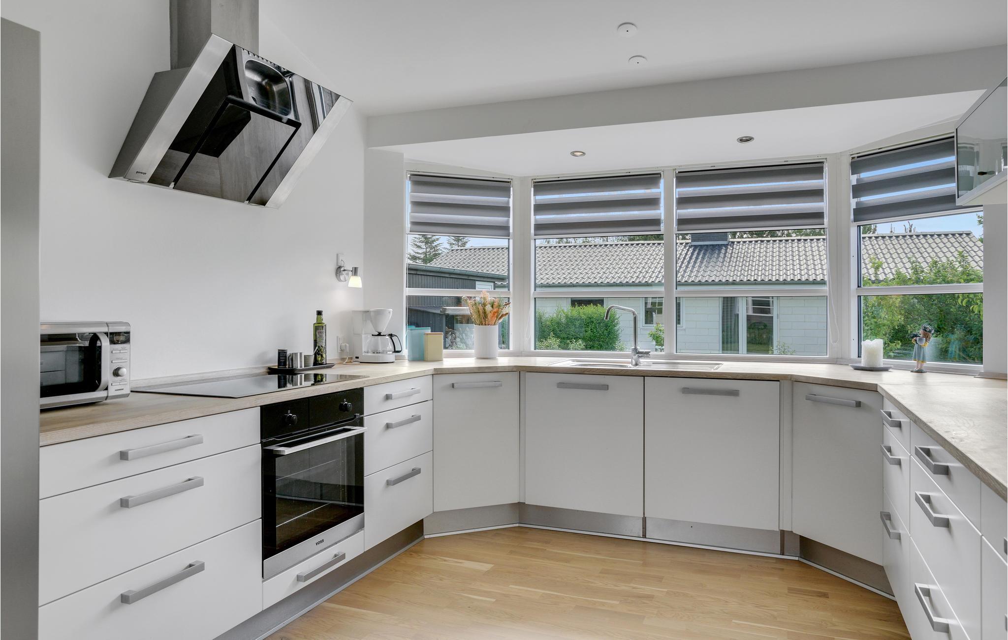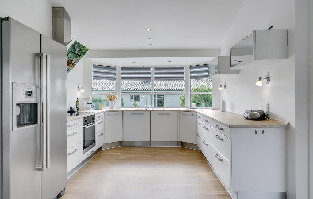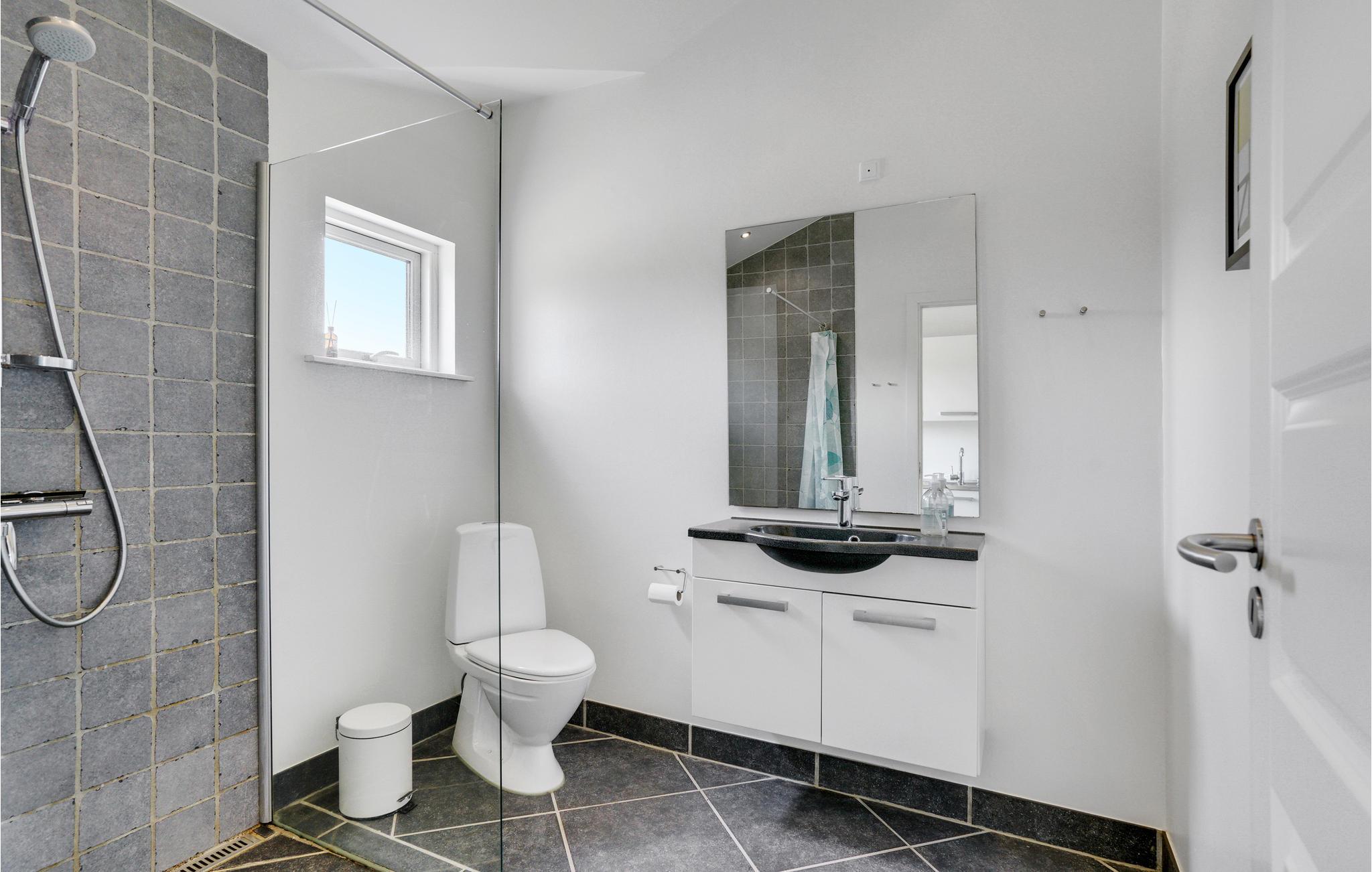 Dette sommerhus ligger ved den skønne Hvidbjerg Strand. Straks når I træder ind i huset mærkes kvaliteten og designet. Der er smukke trægulve gennem hele huset og de store panoramavinduer giver et fantastisk lysindfald i stuen og køkken, der ligger i åben forbindelse. Der er stillet store krav til funktionaliteten hele vejen igennem. Fra den lækre stue med moderne møbler i skandinavisk stil er der direkte udgang til en meget stor overdækket terrasse. Der er 4 store soveværelser med rigtig gode senge, så nattesøvnen er sikret. Der er selvfølgelig 2 badeværelser, hvoraf det ene indeholder et spabad.