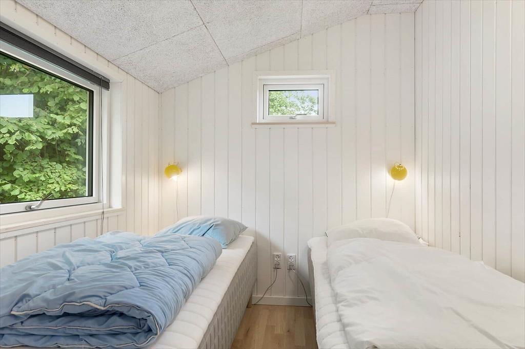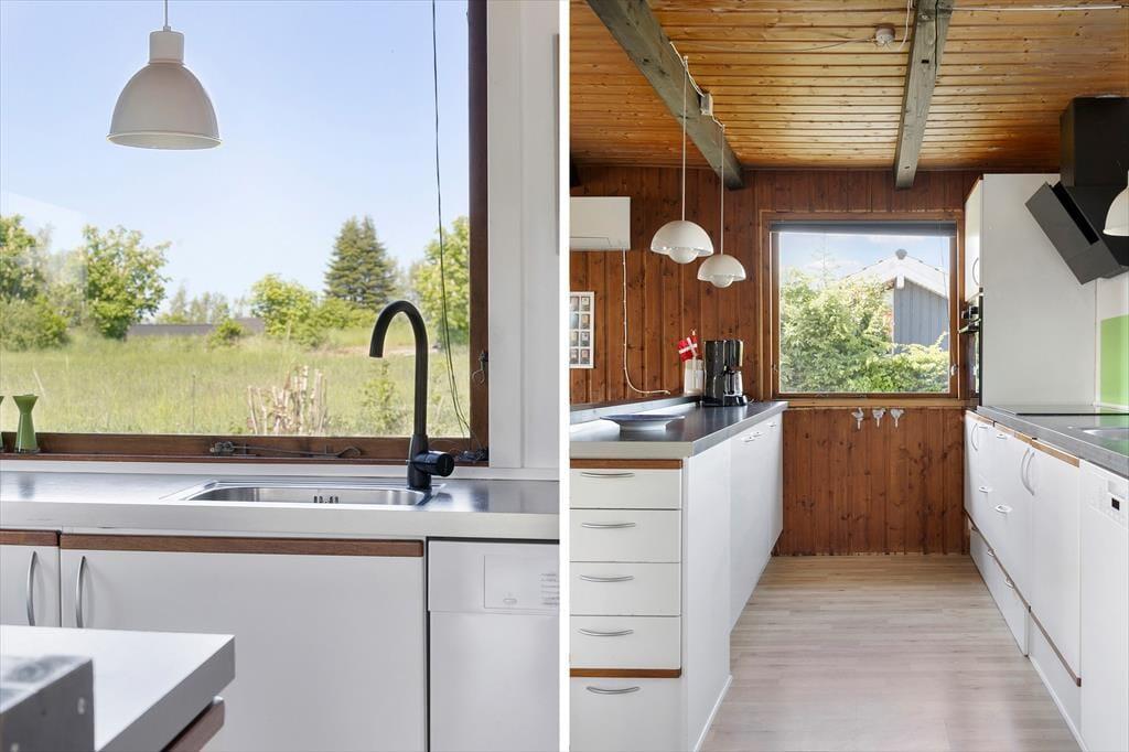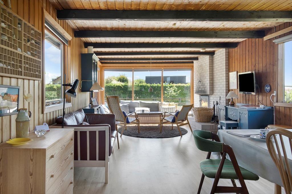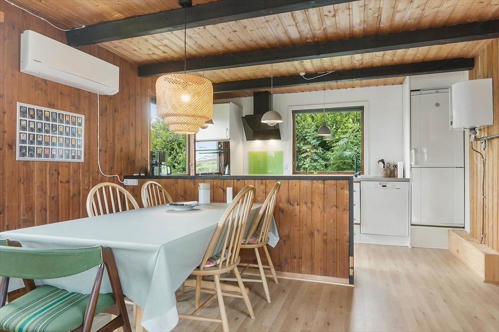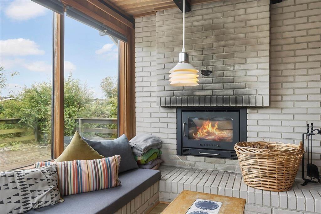 Når du træder indenfor i sommerhuset, bliver du mødt af en varm atmosfære, der straks giver følelsen af at være hjemme. Indretningen er hyggelig og enkel, og i stuen samler brændeovnen familien på kølige aftener, hvor I kan høre ilden knitre, mens I spiller spil, ser en god film eller bare nyder roen sammen. Køkken og opholdsrum hænger naturligt sammen og skaber en god ramme om feriens måltider. Vinduerne lukker lyset ind og giver et fint kig til haven, så naturen hele tiden er tæt på. Alt er indrettet, så I hurtigt kan falde til og finde feriestemningen frem.
