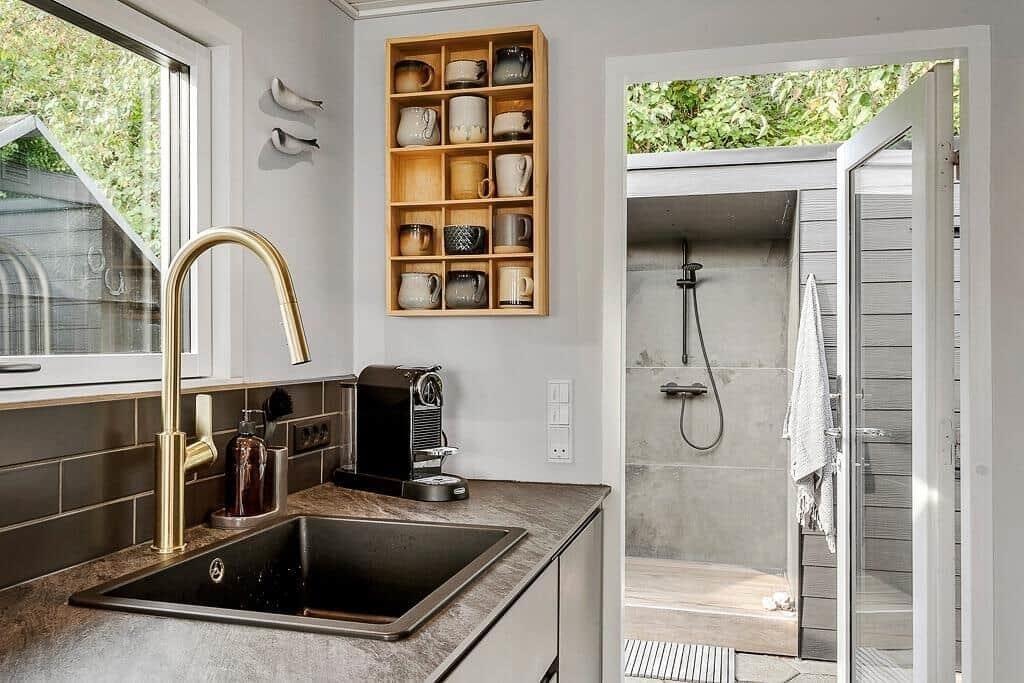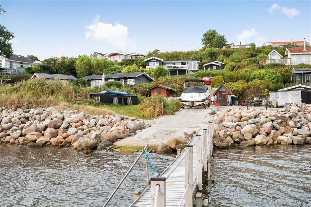 Denne feriebolig er beregnet til 4 personer og fra alle husets rum er der en enestående panoramaudsigt over vandet. Huset er højt beliggende og man har adgang dertil via trapper. En rummelig feriebolig der indeholder soverum med en dobbeltseng, samt køjeseng og et nyt moderne køkken. Dejlig stue med flot udsigt over vandet. Fint badeværelse med bruser, toilet og håndvask. Hop i badetøjet og gå 50 m ned til badebroen, og bliv herefter skyllet i en eksklusiv udebruser med varmt vand.