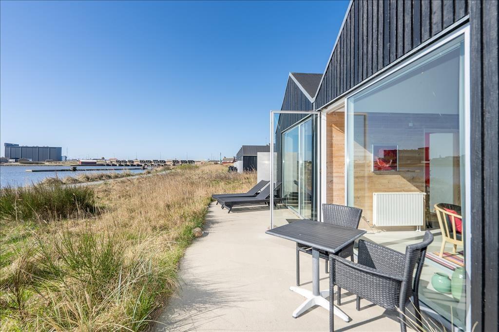 Dette moderne, stemningsfulde fritidshus i Hvide Sande giver jer de allerbedste forudsætninger for gode feriedage i maritime omgivelser, uanset om I vil dyrke vandsport, fiske eller bare slappe af med en skøn udsigt. Her er sengepladser til fire personer, og da huset ligger i første række til vandet, har I fra stuen og den sydvendte terrasse et pragtfuldt, panoramisk vue til vandet.