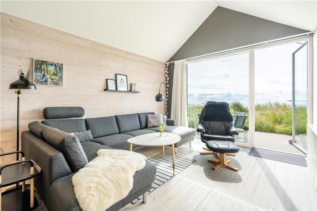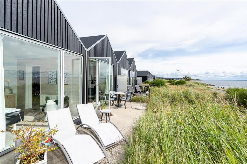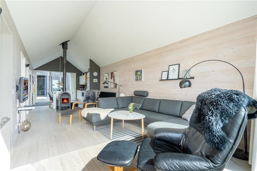 Feriehuset er et af Slusehusene, som er inspireret af de gamle fiskeres traditionelle redskabsskure, og her kan I bruge feriedagene i en komfortabel og stemningsfuld ramme. Brændeovnen luner, når dagen går på hæld, og store vinduespartier giver en skøn udsigt til fjorden og trækker det naturlige lys ind. Køkkenet og stuen glider i ét, og køkkenet byder på alt ønskeligt udstyr, mens retterne let serveres ved spisebordet. Med trådløst internet og tv i stuen er aftenens hygge i sofaarrangementet også sikret. Feriehuset byder på to soveværelser med fire sengepladser i alt, og det ene har store vinduespartier ud mod en hyggelig gårdhave, mens det andet byder på fjordudsigt. Ferieboligen fuldendes af to badeværelser, hvoraf det ene har bruseniche og sauna, mens det andet rummer et spabad.
