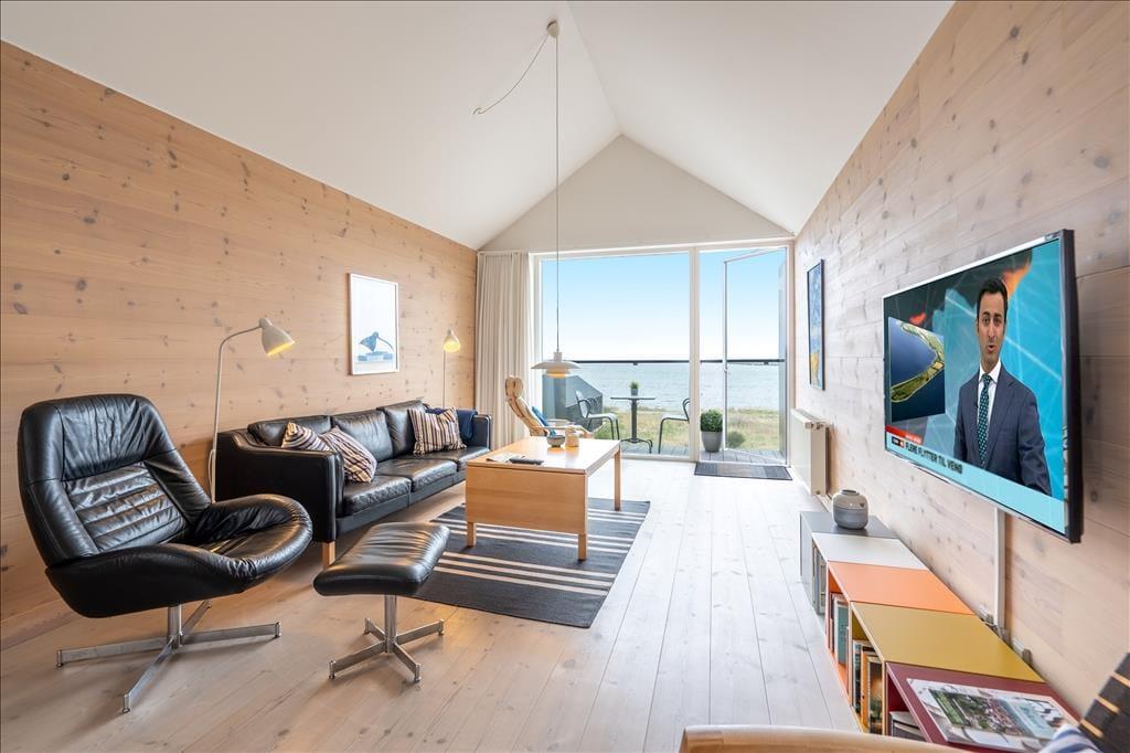 Dette skønne sommerhus har en fantastisk adresse midt i Hvide Sande – meget tæt på slusen og med udsigt til Ringkøbing Fjord fra stuen, det ene soveværelse og udearealerne.