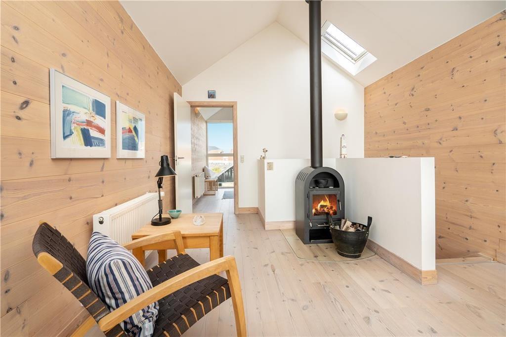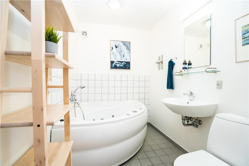 Den skønne fjordudsigt og centrale beliggenhed er bestemt ikke de eneste kvaliteter, for husets moderne arkitektur og hyggelige indretning er også med til at gøre ferien mindeværdig. Mere præcist er der tale om et rækkehus i to plan fra 2004. Inden døre får I hele 116 m2 at brede jer på, og planløsningen byder blandt andet på to badeværelser, to soveværelser, et køkken og en stue – så kort sagt har I god plads og fine ferieforhold til fire personer. Begge badeværelser har wellness-faktor, for ene er med sauna og det andet med spabad. Udsigten til vandet imponerer fra stueetagens soveværelse og førstesalens stue, og i sidstnævnte kan I også hygge jer med filmaftener i sofaafdelingen nær brændeovnen. Køkkenet byder på en dejlig spiseplads og har direkte adgang til et ugeneret gårdmiljø, og herfra kan I fortsætte ind i et bryggers med vaskemaskine, tørretumbler, fryser og fiskerenseplads.