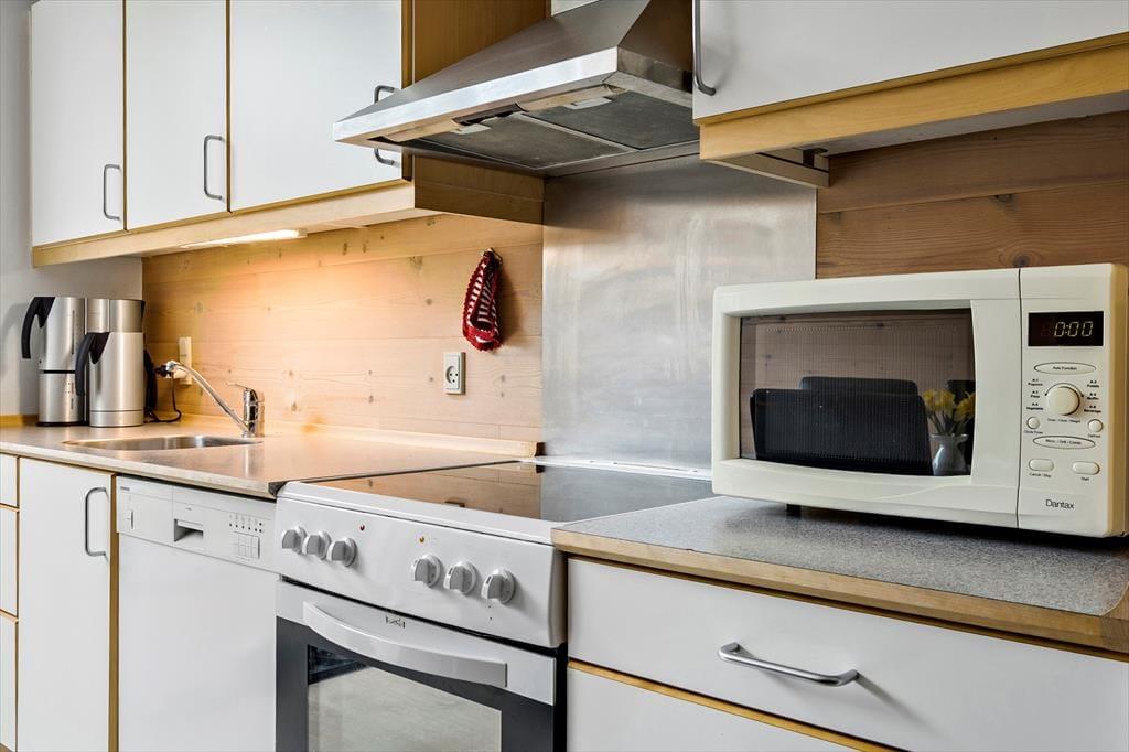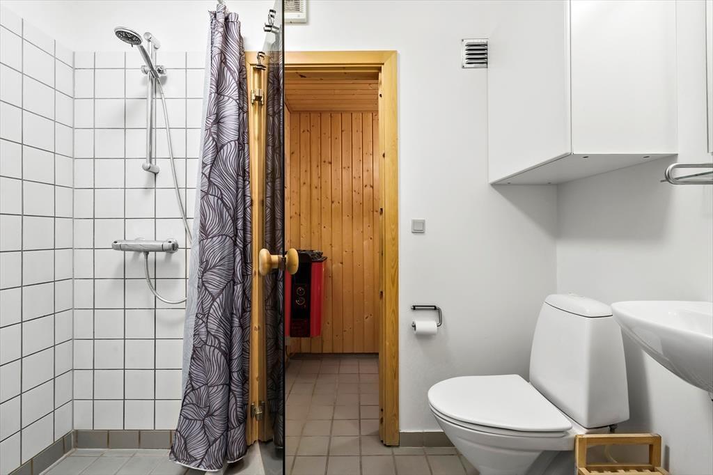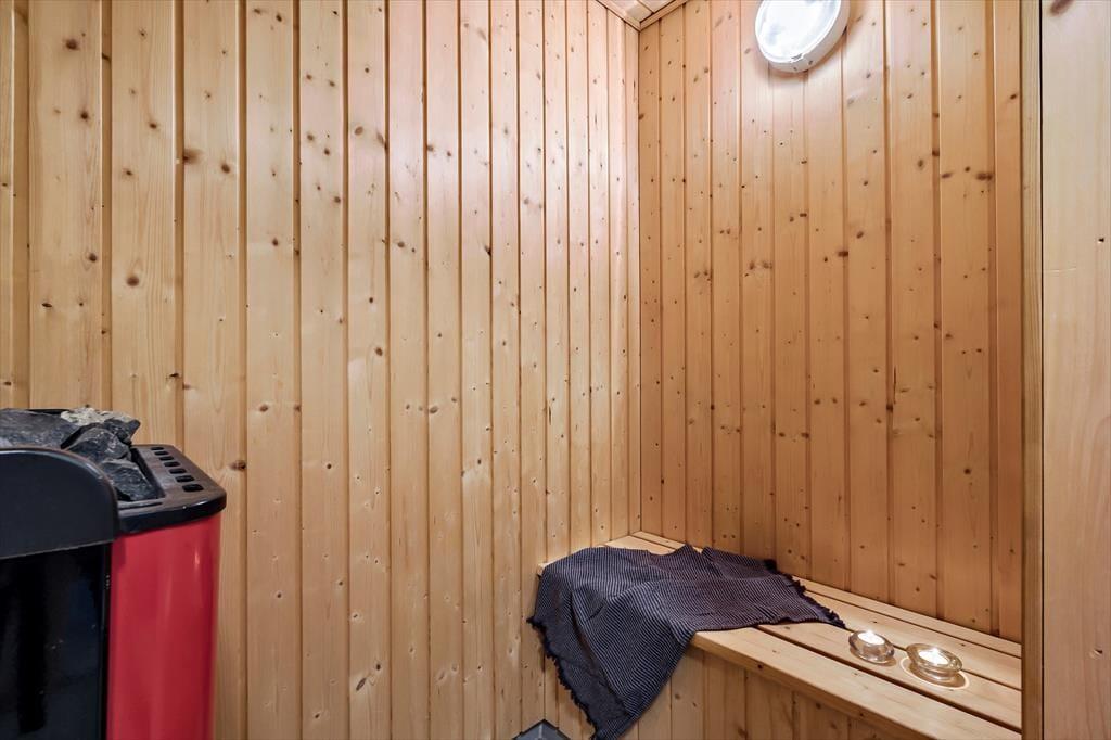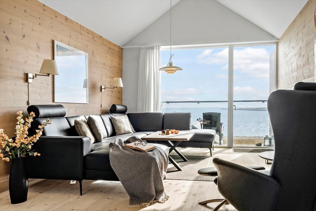 Det 116 m2 store feriehus er et rigtigt kvalitetsbyggeri med en velfungerende indretning og en skøn atmosfære. Planløsningen passer godt til fire personer, for der er to soveværelser at gøre godt med – og det, der ligger i stueplan, har vinduer fra gulv til loft vendt mod fjorden. I stueetagen finder I for øvrigt et velindrettet spisekøkken og to gode badeværelser, hvoraf det ene er med sauna og det andet med spabad. Tager I trappen op til førstesalen, kommer I til en dejlig stue med brændeovn, komfortable siddemøbler og fladskærms-tv. Det er dog det store gavlvindue med fjordudsigt og lysindfald fra syd, der er det mest bemærkelsesværdige, for tænk jer bare at kunne slappe af her i så smukke omgivelser. Ved husets indgang og gårdhave ligger for øvrigt et praktisk bryggers, der er indrettet med vaskemaskine, tørretumbler, fryser og fiskerenseplads.
