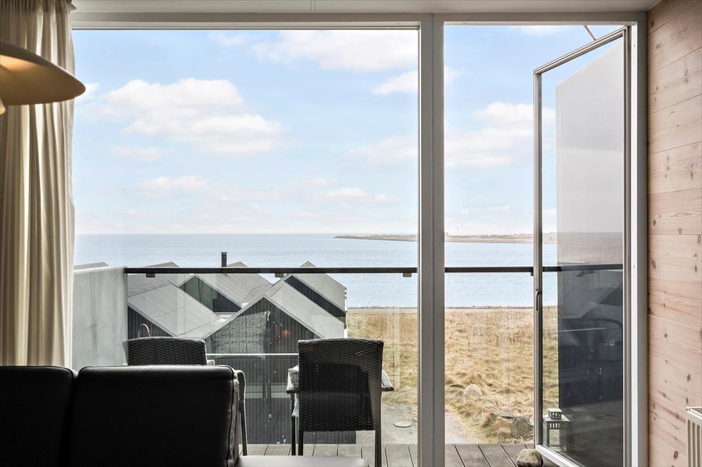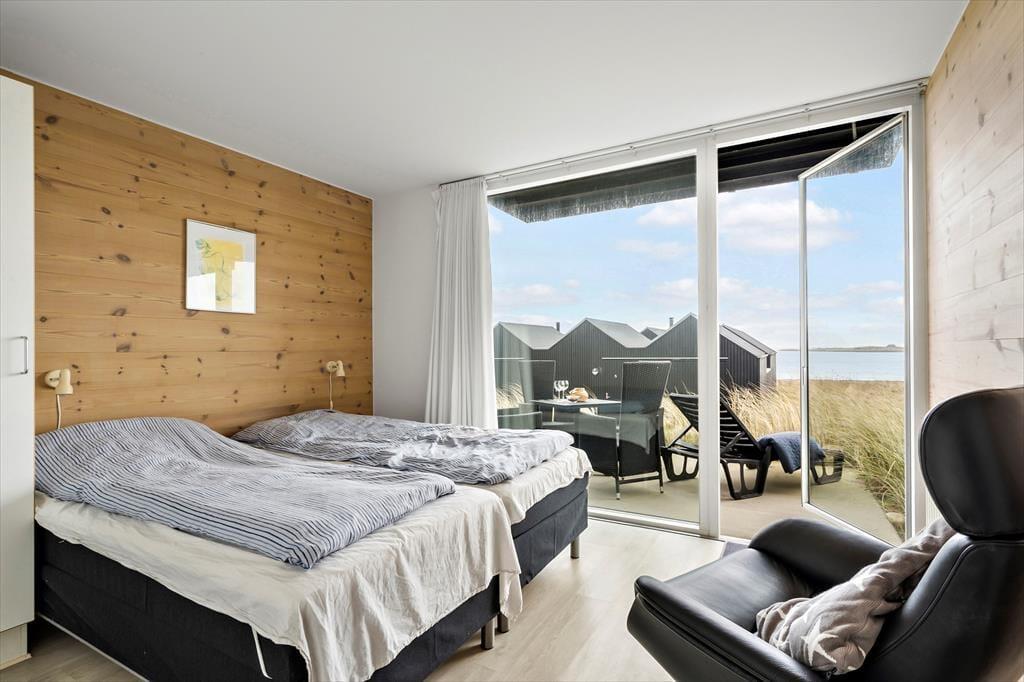 Fra stueetagens soveværelse har I direkte adgang til en sydvendt og dermed solrig terrasse med delvist udsigt til vandet. Fjordudsigten bliver dog særligt imponerende fra førstesalens altan, for herfra har I et godt overblik over det glitrende vand, kysten og afvandingsslusen. Vil I sidde mere ugeneret, kan det anbefales at sætte sig om i den helt lukkede gårdhave på den nordlige side af huset.