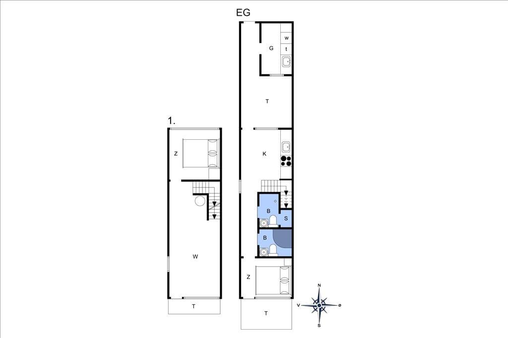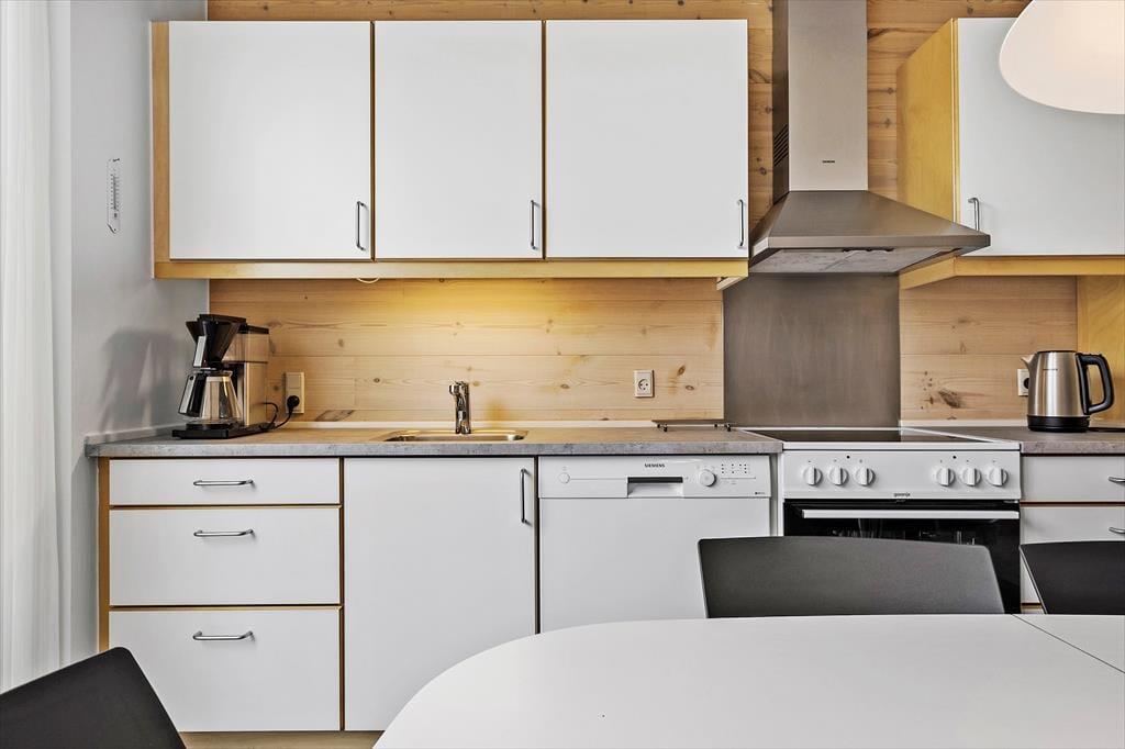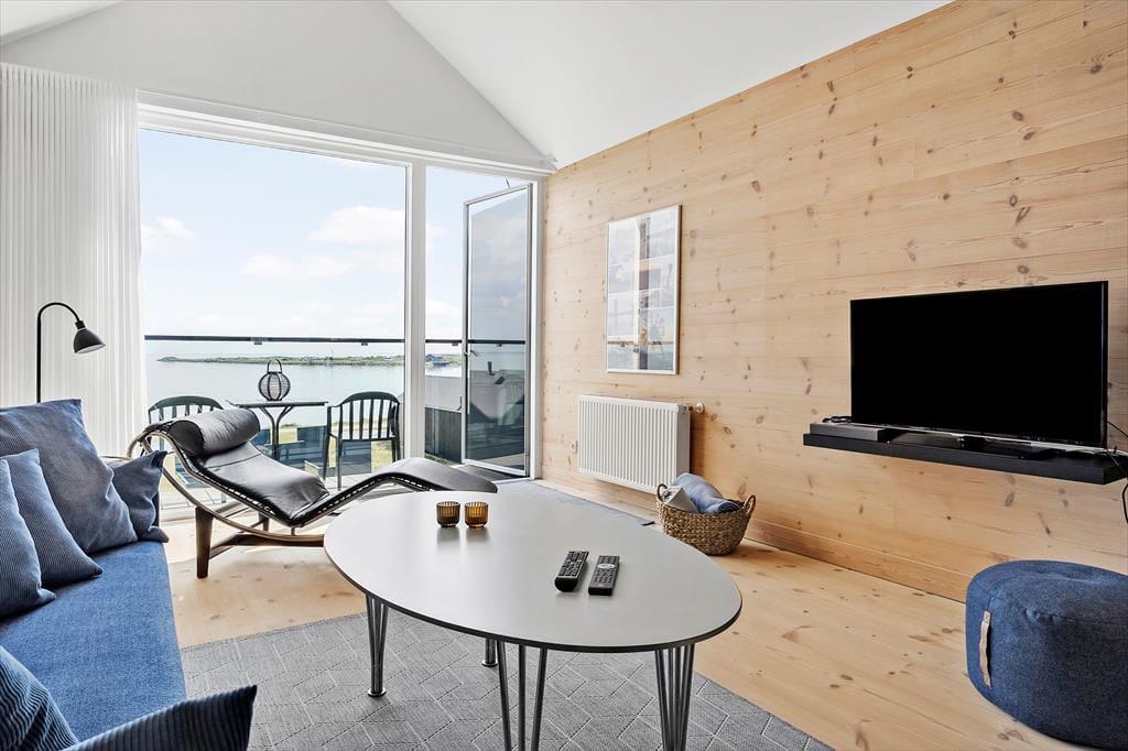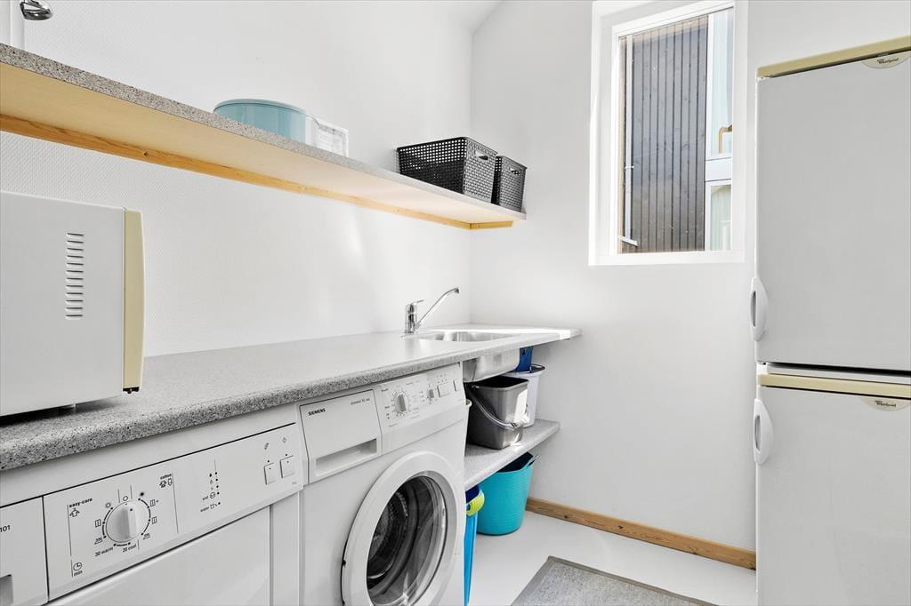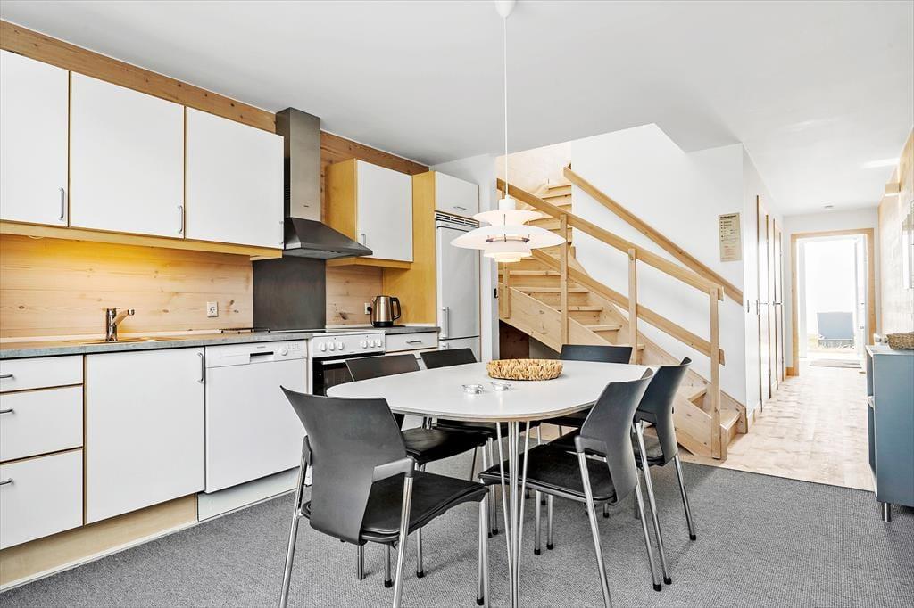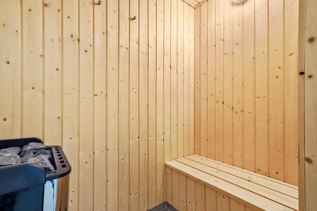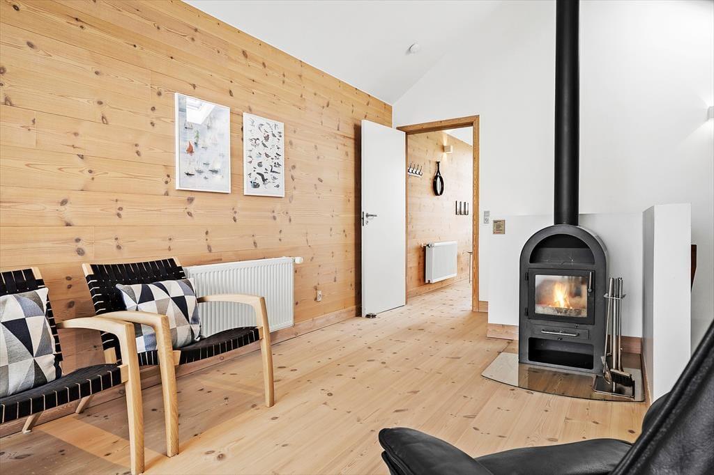 Hvis I er lystfiskere, har I kig på den helt rette feriebolig. Det skyldes ikke kun den attraktive beliggenhed ved havnen og byens gode fiskespots, men også på grund af husets faciliteter. Ved indgangen ligger nemlig et bryggers, der har fiskerensebord og fryser – og i øvrigt også vaskemaskine og tørretumbler, så I kan friske feriegarderoben op undervejs. Og uanset om I har været ude med snøren eller har oplevet Hvide Sande på anden vis, er det skønt at have en lækker feriebolig som denne at vende hjem til efter dagens oplevelser. Rækkehuset måler 116 m2 fordelt på to plan, og planløsningen med to soveværelser, to badeværelser, et spisekøkken og en stue egner sig godt til fire personer. I stuen er der fladskærm med kabel-tv såvel som brændeovn, og hvis I virkelig skal slappe af, der god plads og endog en sauna og et dejligt 200 liters badekar fordelt på stueetagens to badeværelser. Fjordudsigten kan I nyde fra førstesalens stue og fra soveværelset i stueplan, så lige når I slår øjnene op, kan I vurdere, om det er vejr til at fiske eller nyde livet på terrassen.