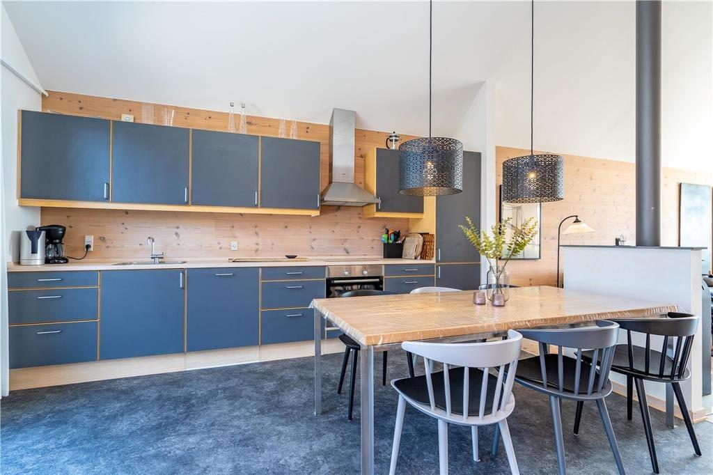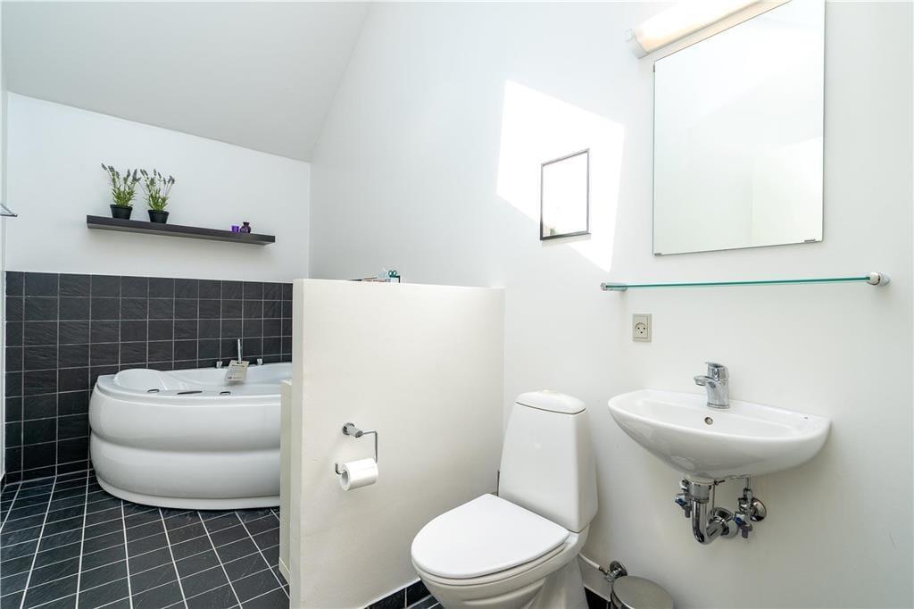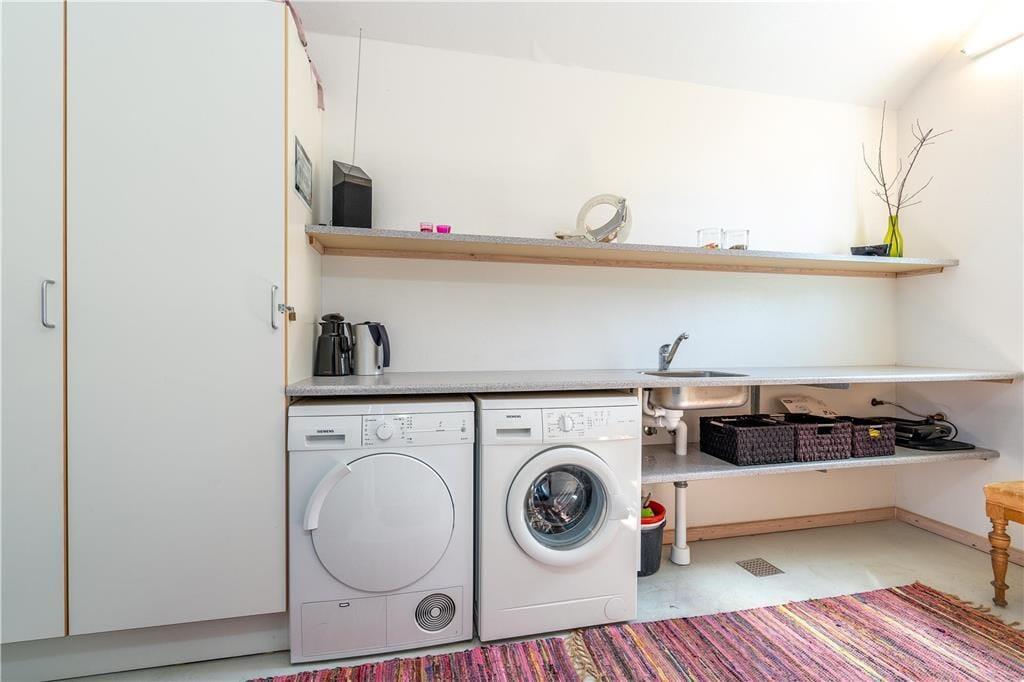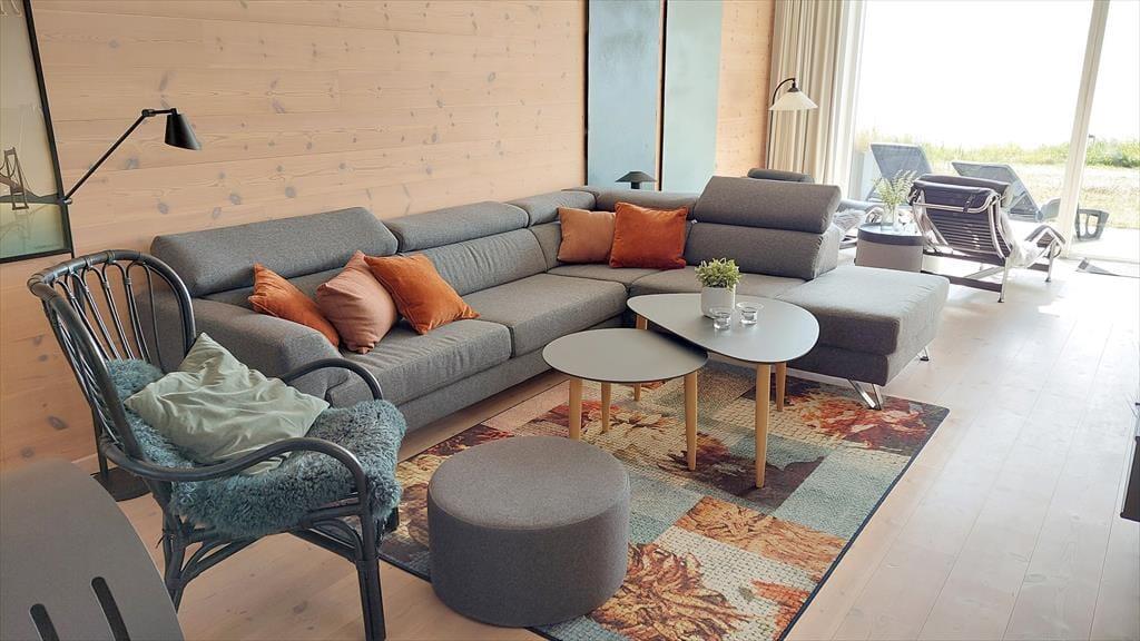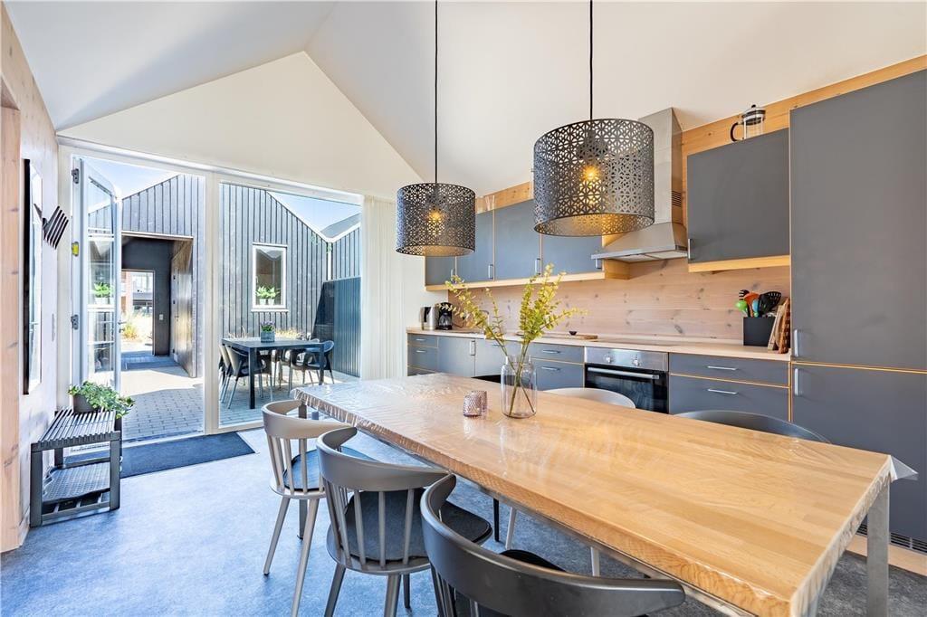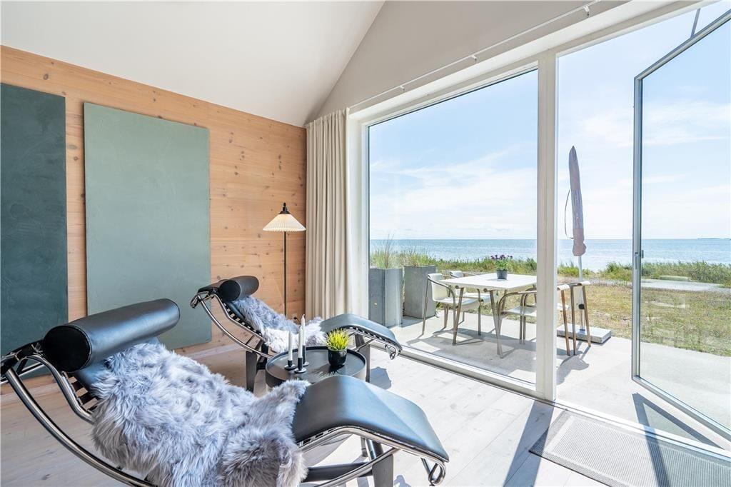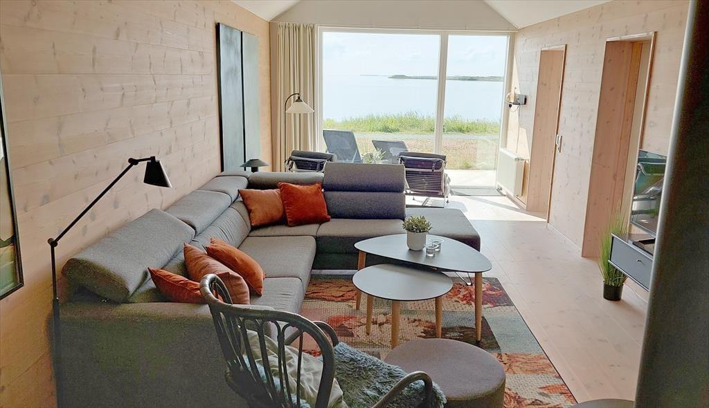Ved siden af grovkøkkenet ligger en garage, og her er det muligt at oplade elbilen, hvis I selv medbringer et kabel. Når bilen står trygt parkeret, kan I selv slappe af under åben himmel, og det kan enten foregå i den aflukkede solgård eller på den sydvendte terrasse. Netop terrassen ligger så tæt på fjorden, at I kan følge med i bådenes sejlads og spotte sæler, der lokkes til af de mange fisk nær slusen.