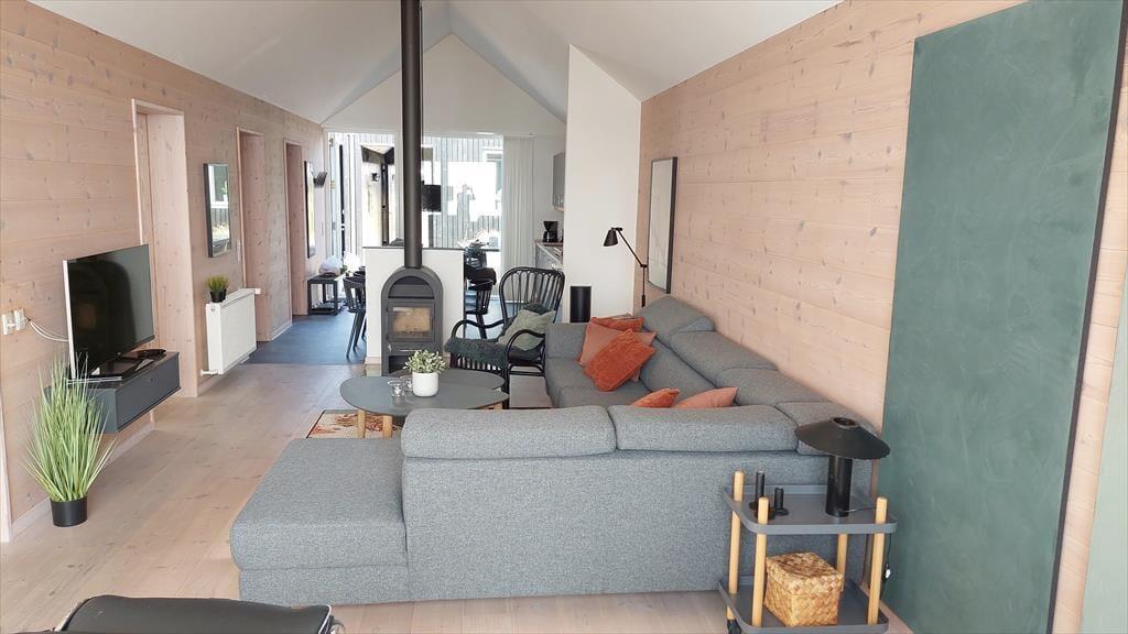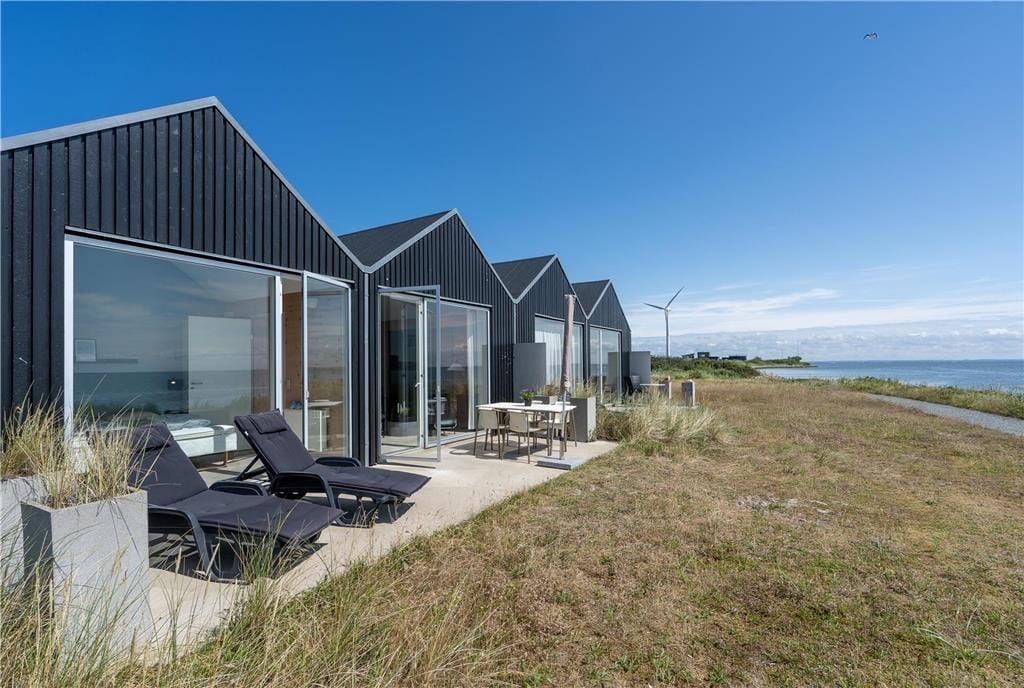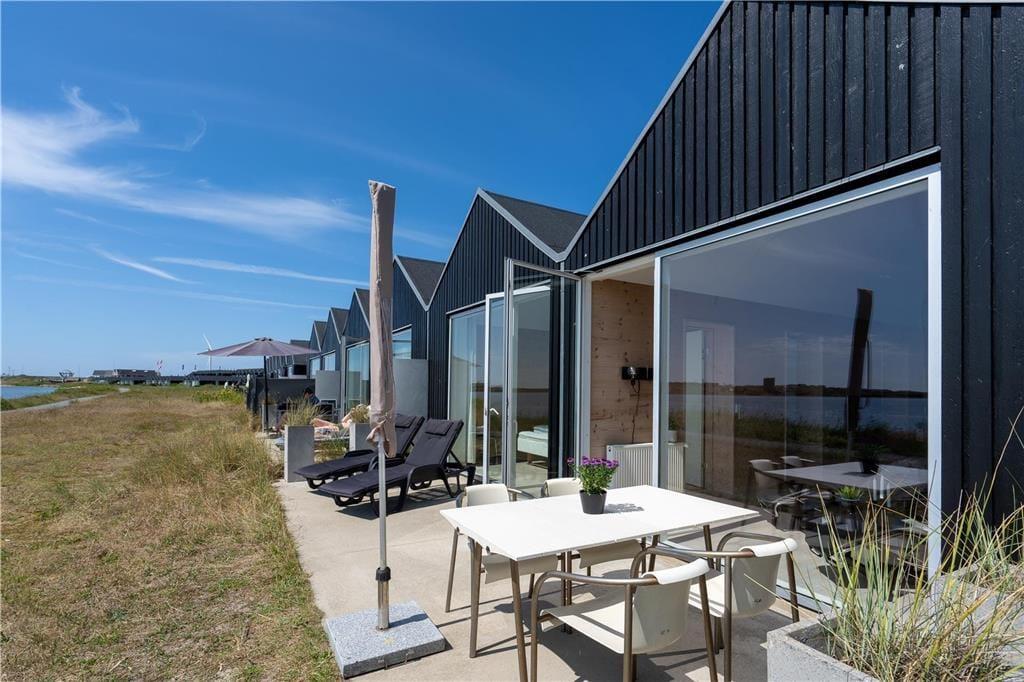 Rækkehuset, der er del af det populære feriekompleks Slusehusene, er et rigtigt kvalitetsbyggeri på 113 m2. Store sydvendte vinduer inviterer fjordlandskabet indenfor i stuen såvel som på det største af husets tre soveværelser, så fra sengen og lænestolene kan I nyde det flotte kig ud over vandet. Lysindfaldet er selvfølgelig også godt, og med loft til kip og en gennemført stilfuld indretning er der en skøn atmosfære i alle rum. Midt i opholdsrummet står en brændeovn, og i den ene ende venter køkkenet, der har spisebord og god plads til at kokkerere. Planløsningen byder også på to badeværelser, hvoraf det ene er med sauna og brusebad og det andet med spabad, og husets grovkøkken er indrettet med dybfryser, fiskerenseplads, vaskemaskine og tørretumbler.