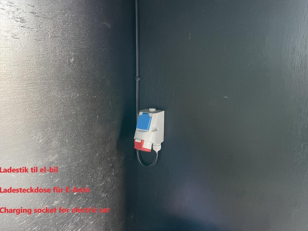 Opladning af elbil tilladt / CEE-stik med 16 ampere forefindes, medbring kabel