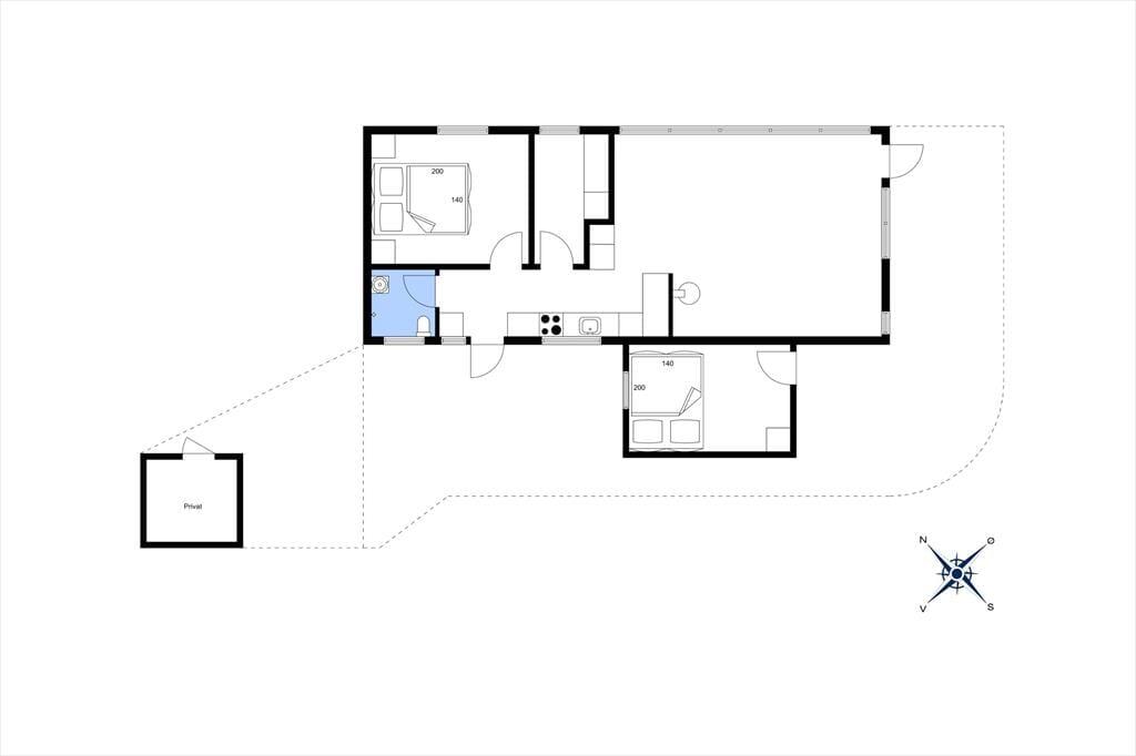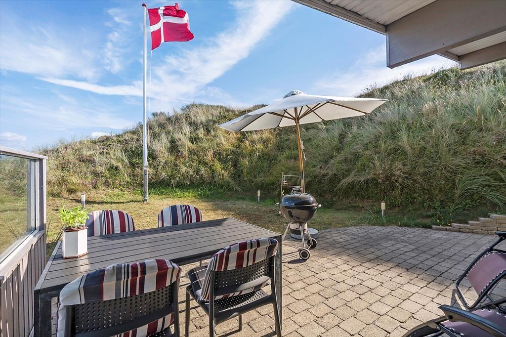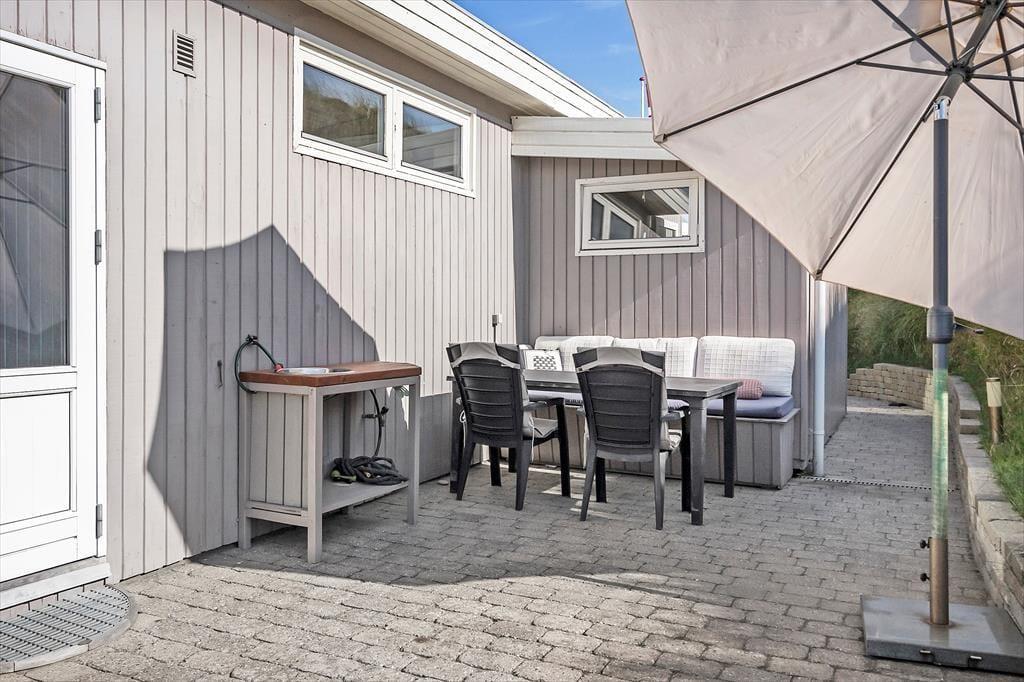 Den store klitgrund er kuperet, men har et mere plant græsareal og flere gode terrasser omkring sommerhuset. Med andre ord er der plads til både leg og afslapning – samtidig med at I har fornemmelsen af at bo midt ude i Holmslands Klits uspolerede natur. På den sydøstvendte terrasse kan I kigge ud på fjorden, hvor surfere ofte boltrer sig, mens terrassen mod vest ligger dejligt ugeneret mellem huset og klitterne.
