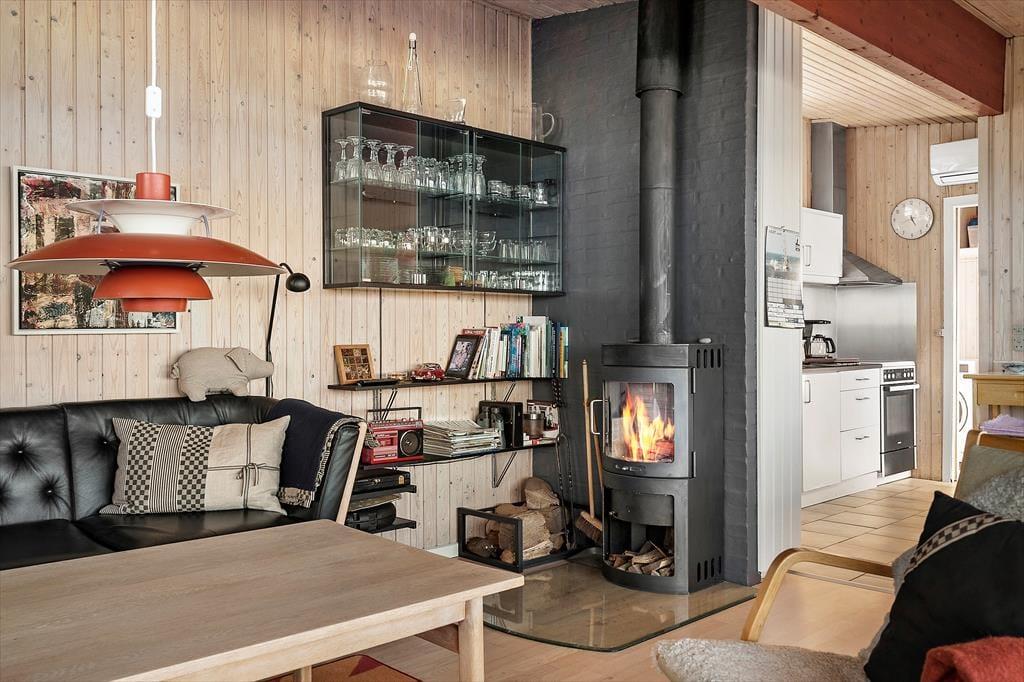 Det er ikke kun fra stuen, at I kan nyde synet af fjordens blå bølger: Når I ruller gardinet op i soveværelset, kan I se morgensolens første stråler på vandet– og skulle I have brug for at arbejde, har I også fjordudsigt fra kontoret. I stuen er vinduespartiet dog ekstra stort, hvilket forbedrer både udsynet og lysindfaldet, og så er det hyggelige rum indrettet med brændeovn, komfortabelt møblement, tv med Chromecast og andre gode detaljer. Et veludstyret køkken ligger i åben forbindelse med stuen, og planløsningen byder også på et badeværelse med bruser og gulvvarme. I sommerhusets anneks finder I endnu et soveværelse, og derfor er der i alt sengepladser til fire personer inden døre.