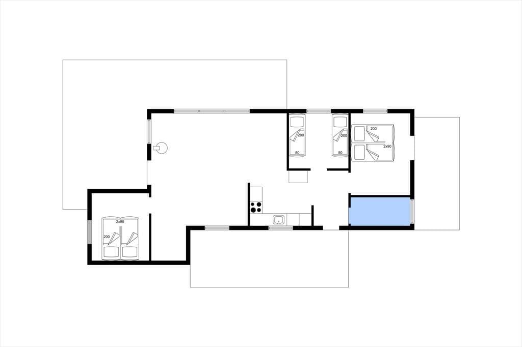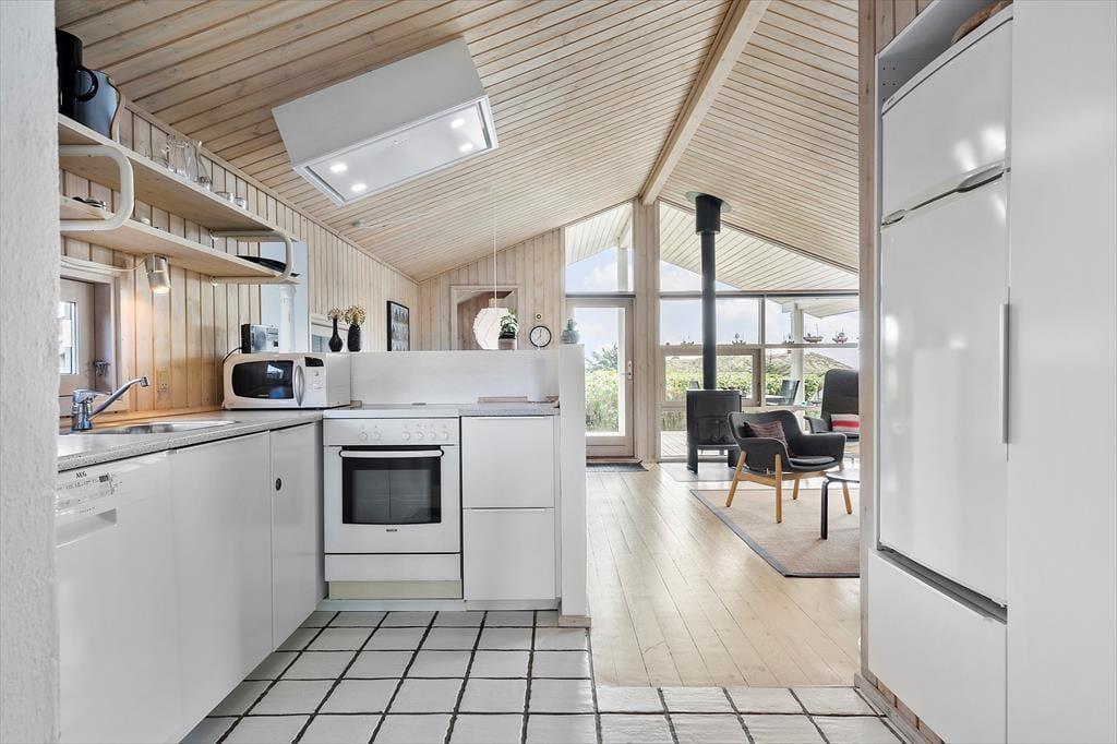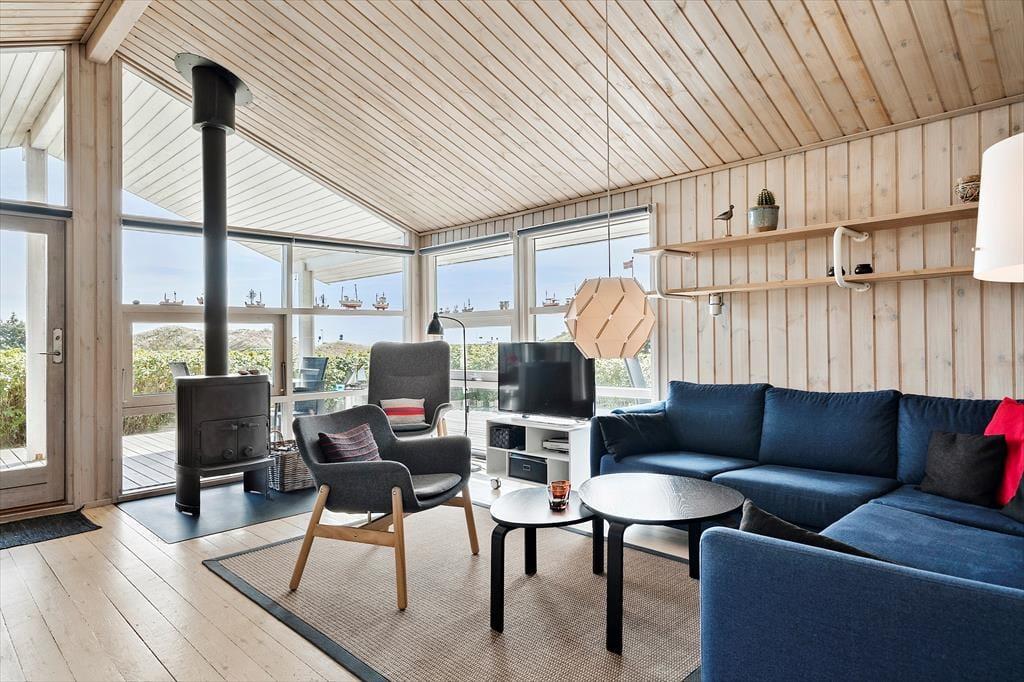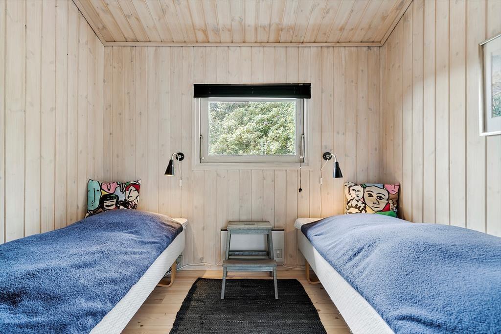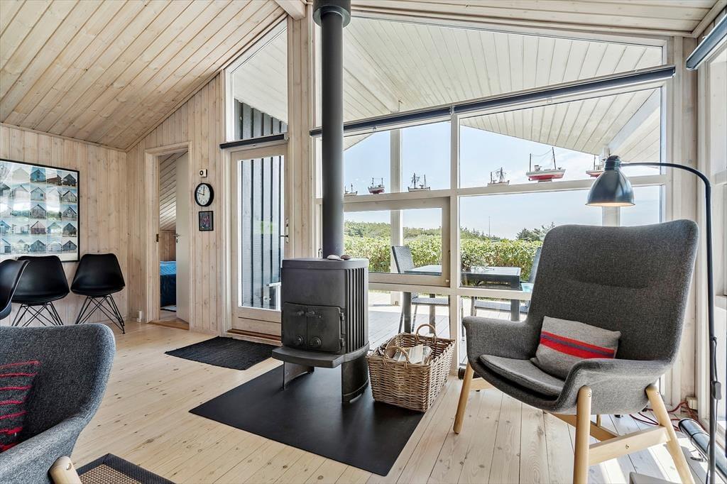 Feriehuset byder på klassisk sommerhusstemning, og med tre gode værelser er her sengepladser til seks personer. Foruden et badeværelse med bruseniche og vaskemaskine består resten af ferieboligen af et åbent opholdsområde, hvor varmepumpen og brændeovnen sørger for en behagelig temperatur. Køkkenet er godt udrustet til små og store måltider, og med opvaskemaskinen går rengøringen let. I stuen giver loft til kip og vinduespartier fra gulv til loft et skønt lysindfald og udsigt til naturen, og her er både en spisesektion samt et sofaafsnit. Her er god plads til, at hele familien kan dyste i brætspil, og med wi-fi og tv er aftenunderholdningen også sikret.