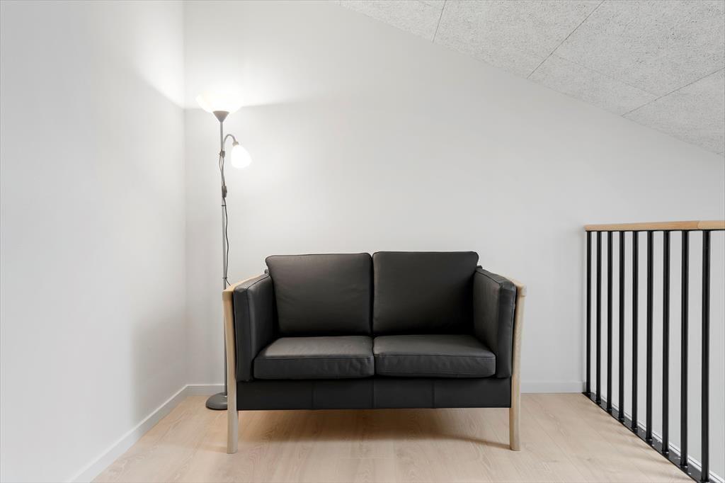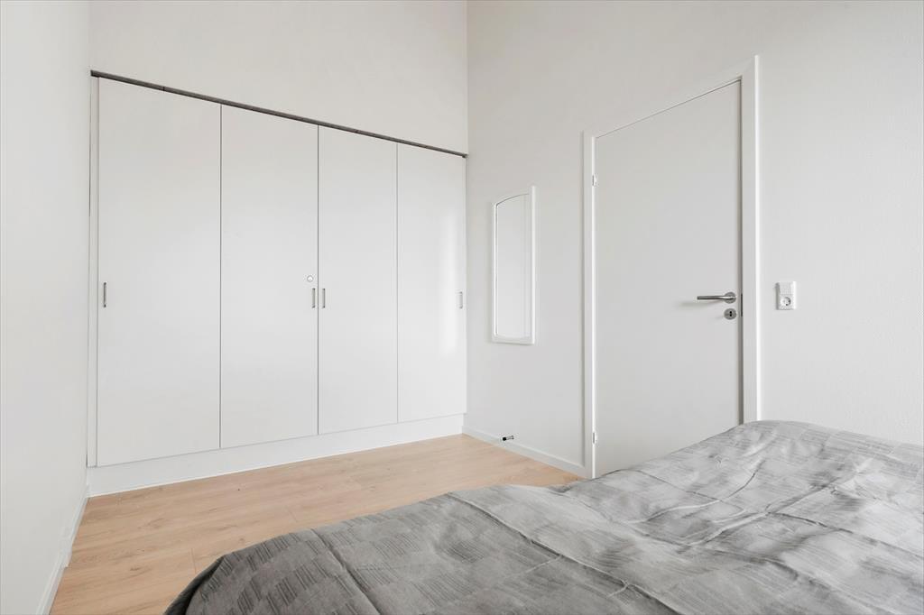 Når vejret er mildt og sommerligt, kan I lade glasdøren mellem stuen og terrassen stå åbent. På den måde smelter de to opholdsmiljøer nærmest sammen, og det gør det nemt at smutte ind for at fylde kaffekoppen op eller hente flere isterninger til jeres kølige drikke. Terrassen er lukket med et afskærmende hegn, og I har havemøbler, liggestole og en grill til rådighed, så I kan få alt det bedste ud af solskinsdagene.
