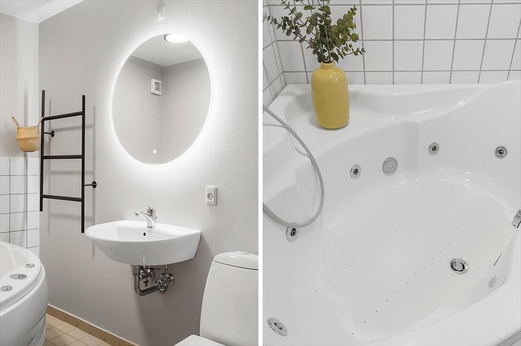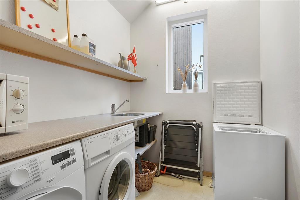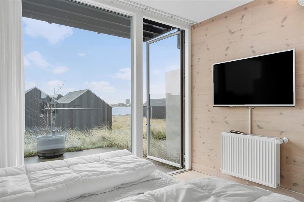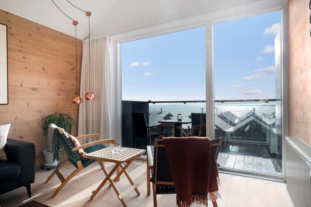 Udenfor byder feriehuset på flere dejlige opholdsområder. Her er det nemt for dig at nyde din ferie udendørs. Fra soveværelset i stueetagen har du adgang til en sydvendt terrasse, hvor du kan starte dagen med en kop kaffe i morgensolen. En lukket gårdhave mellem køkkenet og bryggerset giver private omgivelser – perfekt til frokoster under åben himmel eller blot til afslapning i havemøblerne. Her kan I nyde sommerdagene og de milde aftener, mens børnene leger trygt. Lidt fjordudsigt ledsager dig overalt udenfor, men oppe fra balkonen har du en virkelig førsteklasses udsigt over den maritime aktivitet ved slusen.