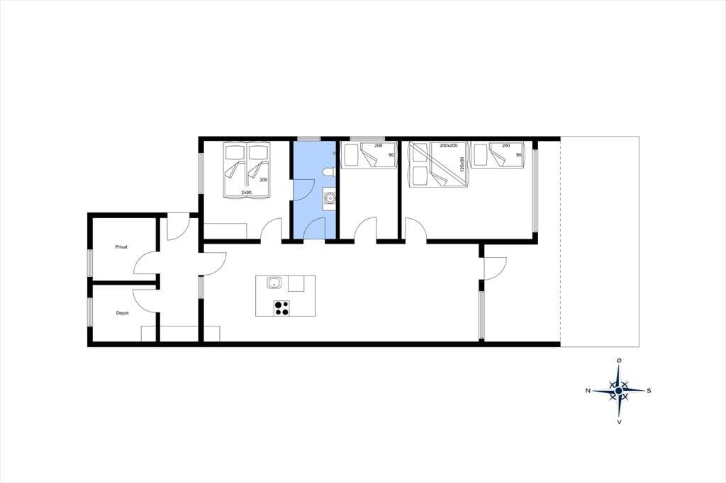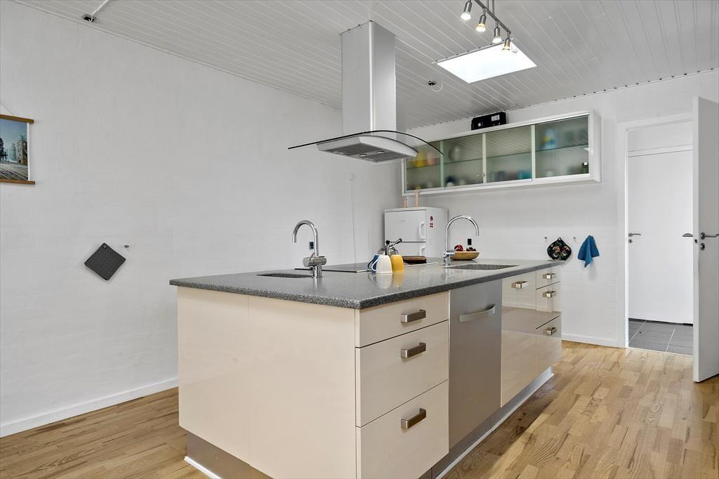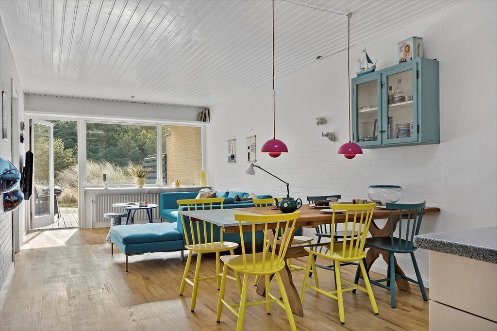 Så snart du træder ind i sommerhuset, mødes du af en varm og indbydende stemning. Køkken og stue er forenet i et åbent opholdsrum, hvor lyset strømmer ind gennem vinduerne og skaber en lys og luftig atmosfære. Køkkenet er velindrettet, så du nemt kan forberede dagens måltider, mens resten af familien samles omkring spisebordet eller slapper af i sofahjørnet. Her er der plads til lange samtaler, brætspil og hyggelige stunder, mens aftenen falder på. Med tre soveværelser er der også gode muligheder for en god nats søvn efter en dag fyldt med oplevelser.